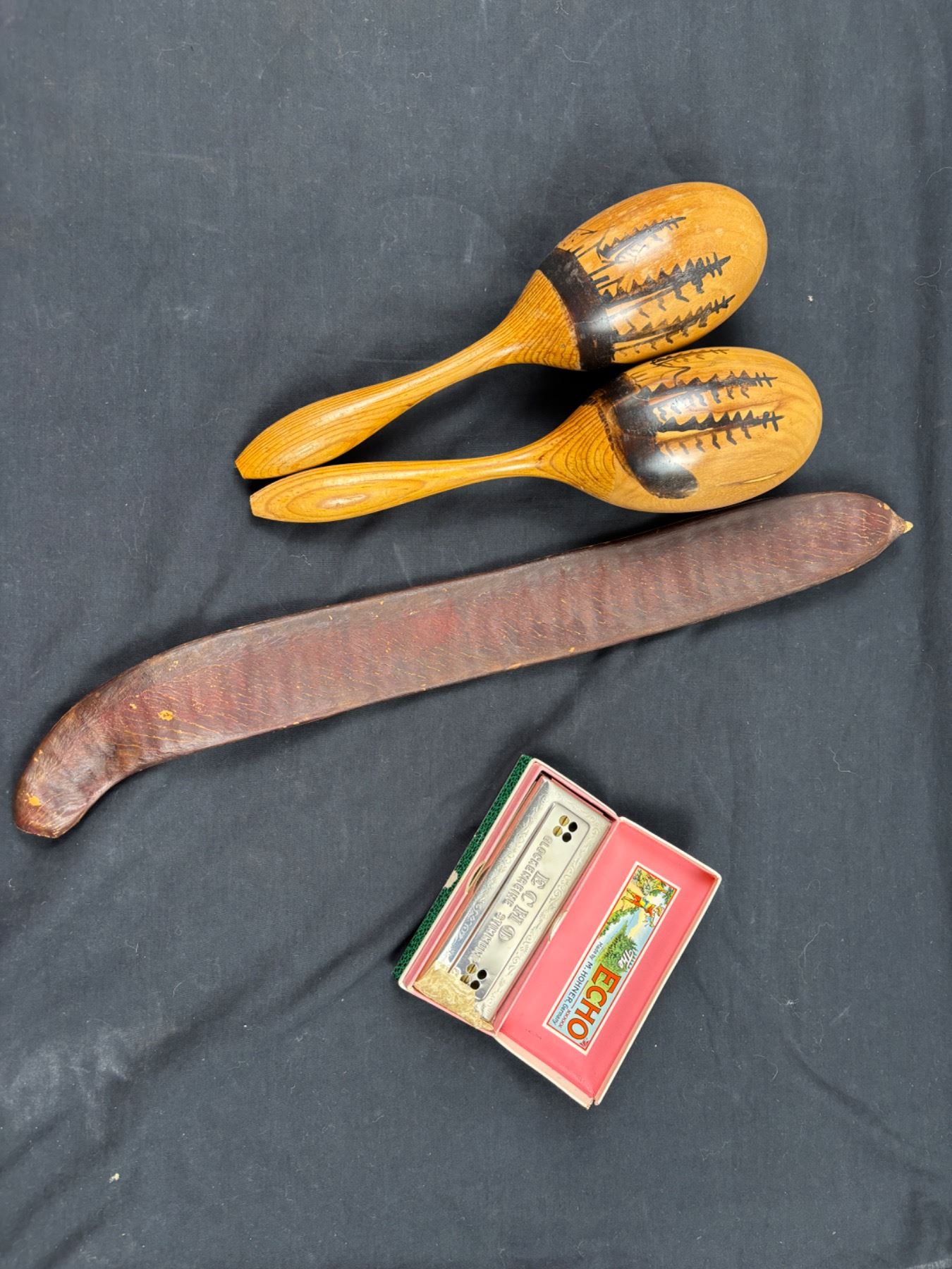 Includes two Maracas, The Echo Harp made in Germany, and more