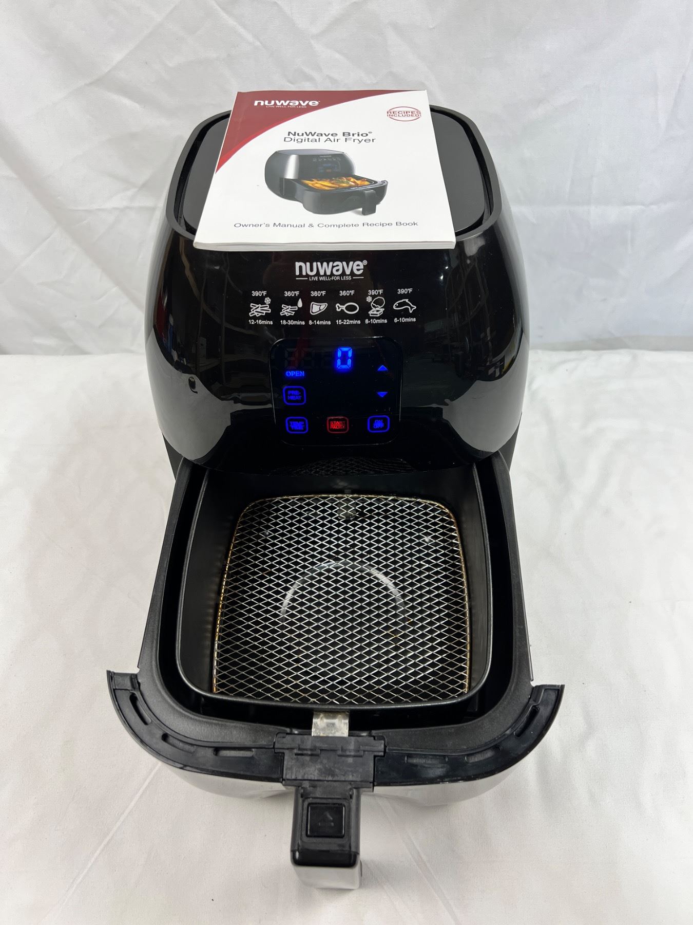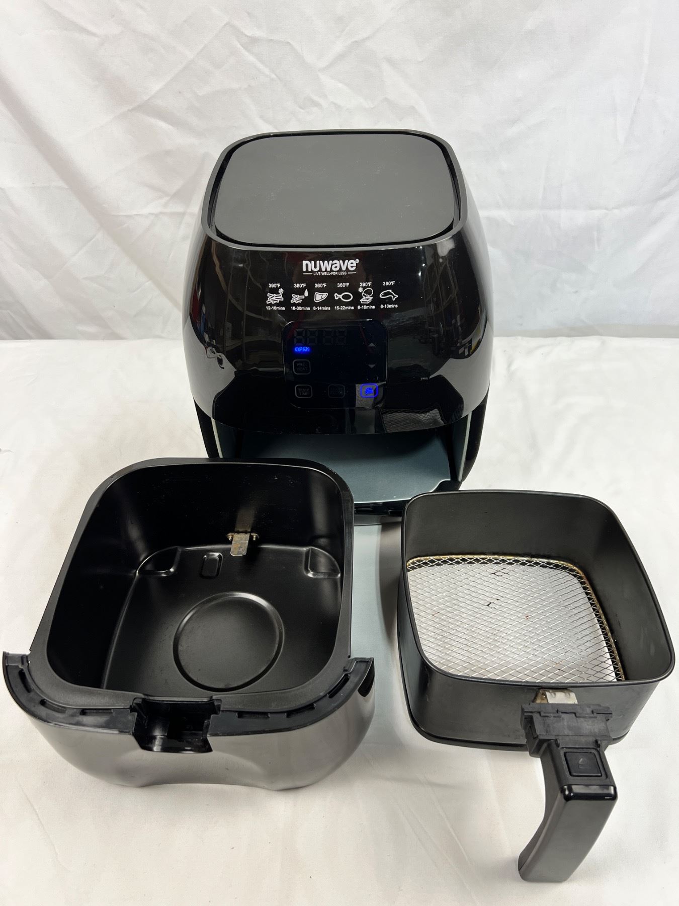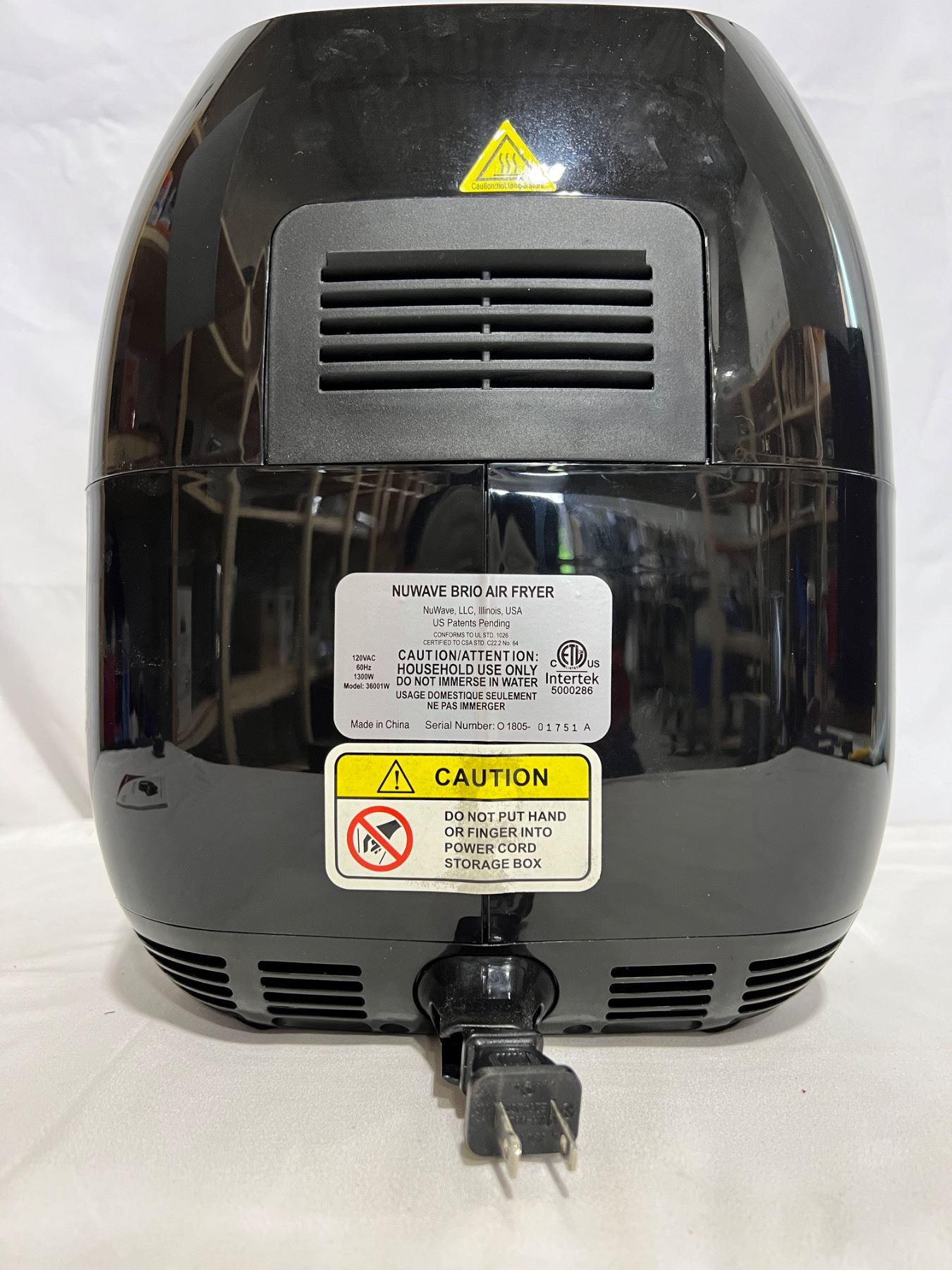 Tested and working. Includes original packaging and manual. Has retractable power cord. Some staining to exterior and grill try.