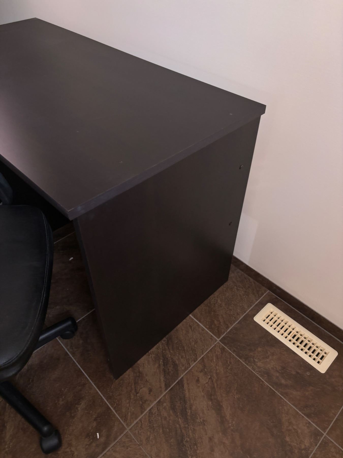 The desk has some scuffs and scratches, measures 47"L x 24"W x 30"H