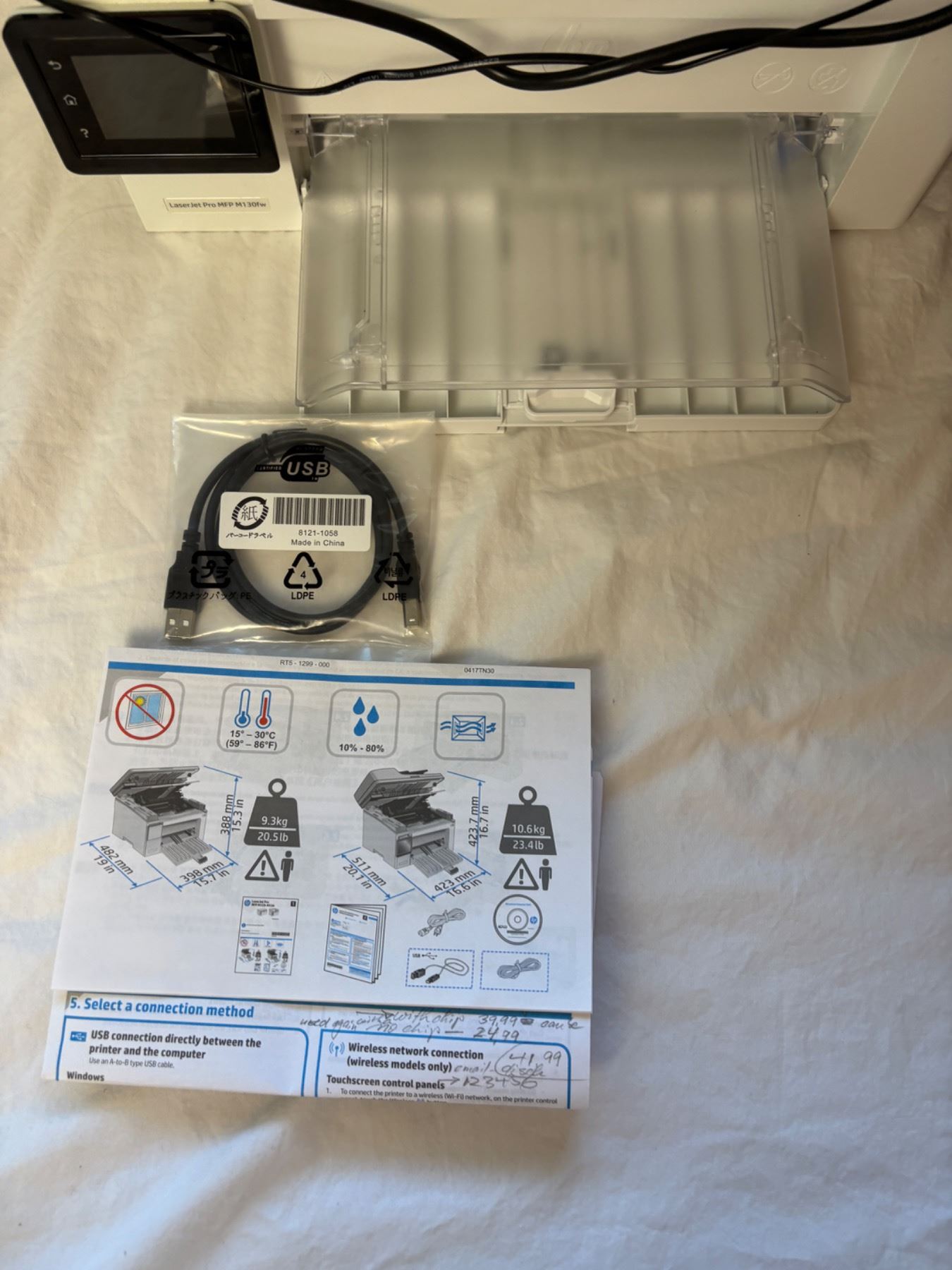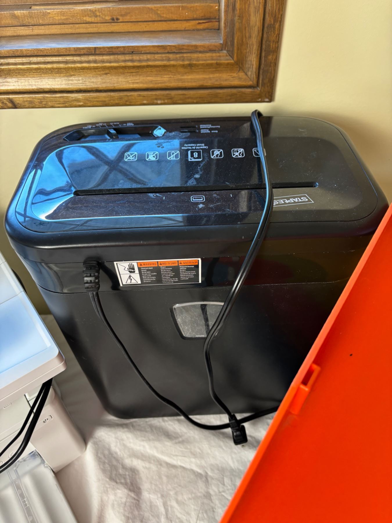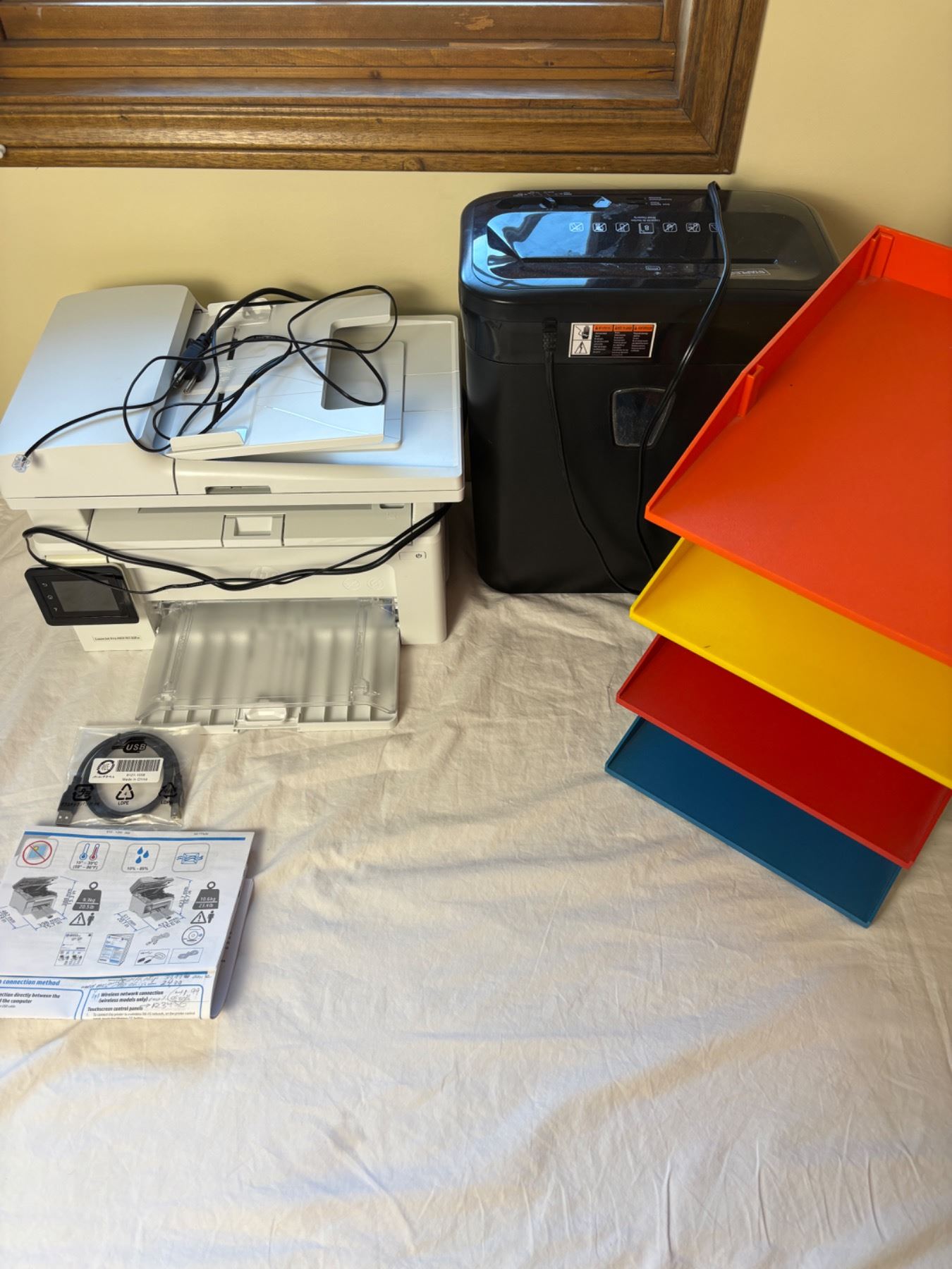 Includes a HP Laser Jet Pro MFP M130fw, Staple paper shredder, and more,