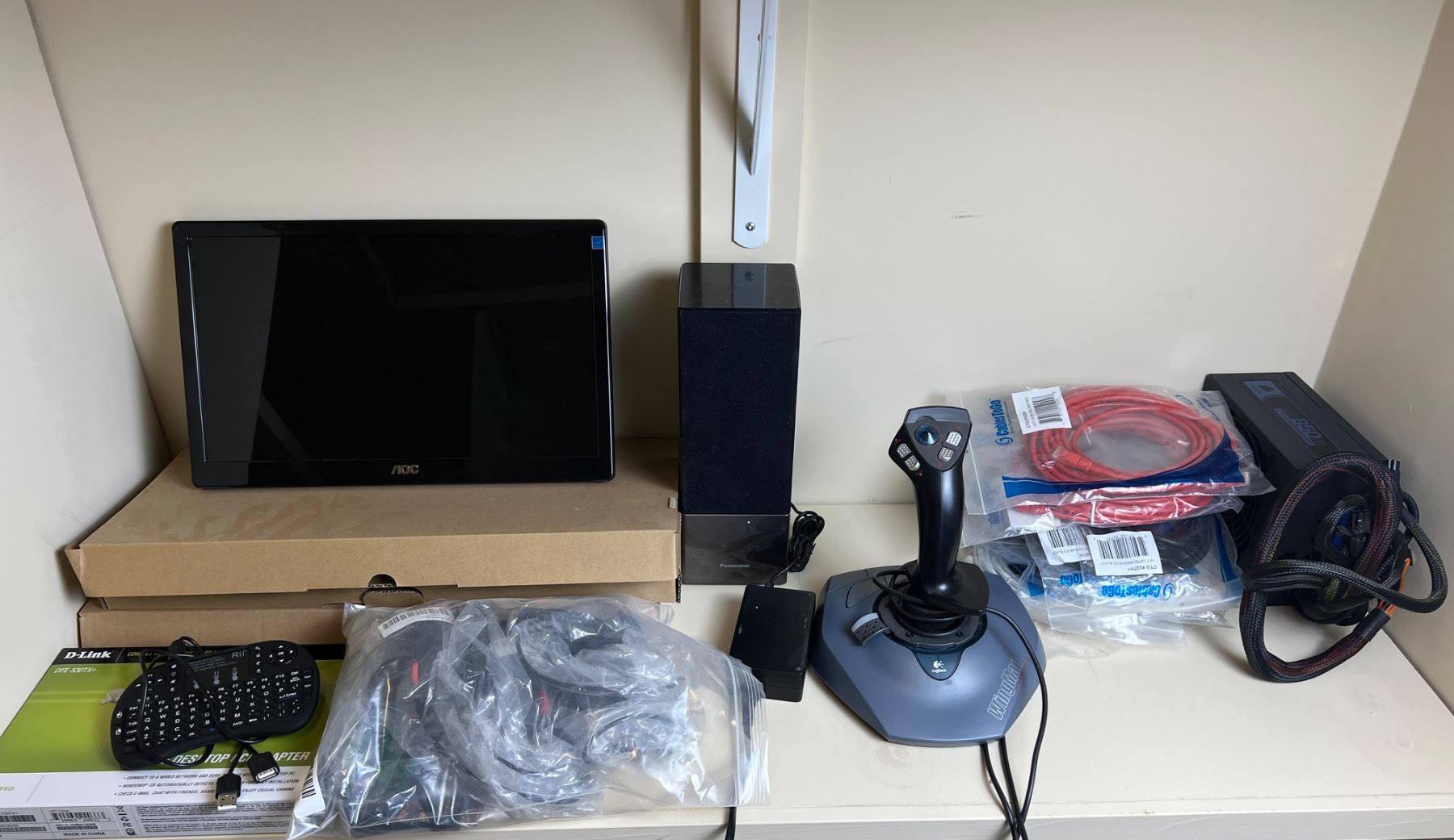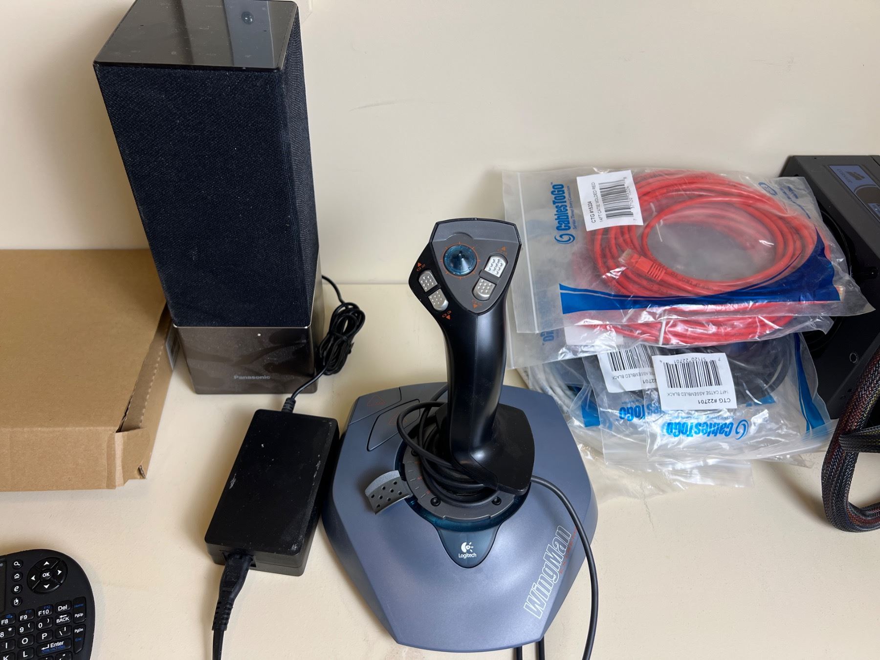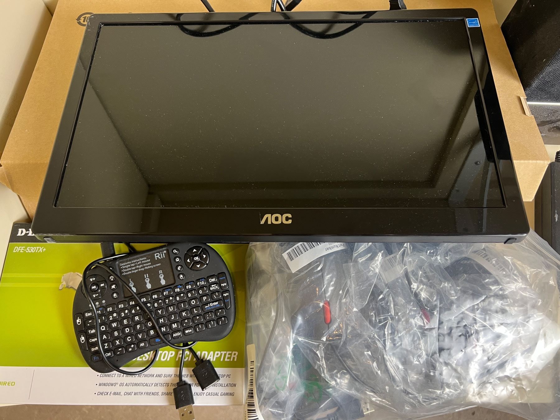 Includes ROC LCD Monitor (not tested), Panasonic Wireless Speaker 9turns on), Lenovo keyboards, and more
