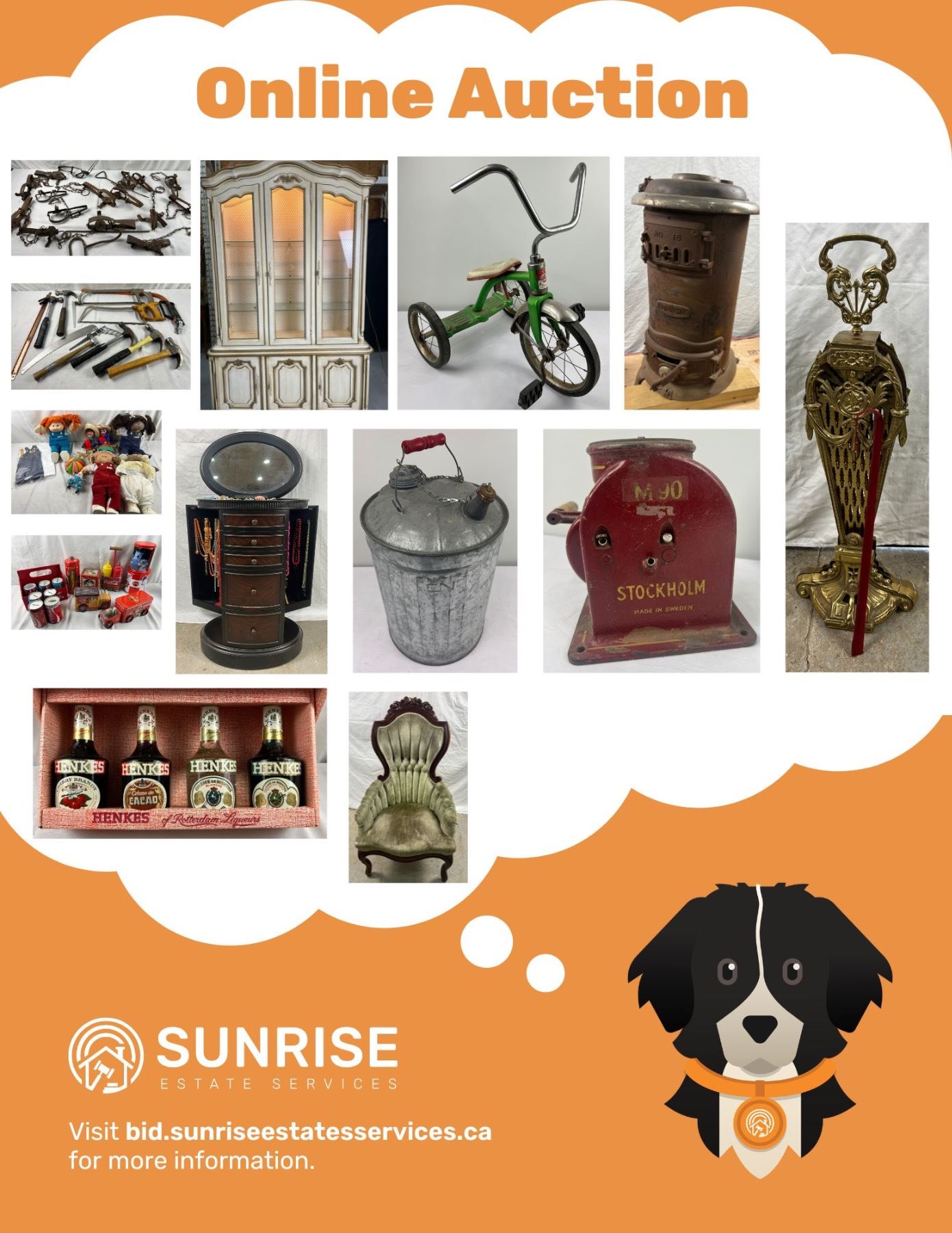 -Items must be picked up on April 13th and 14th between 9am-6pm, please book a pick up appointment at www.sunriseestateservices.ca