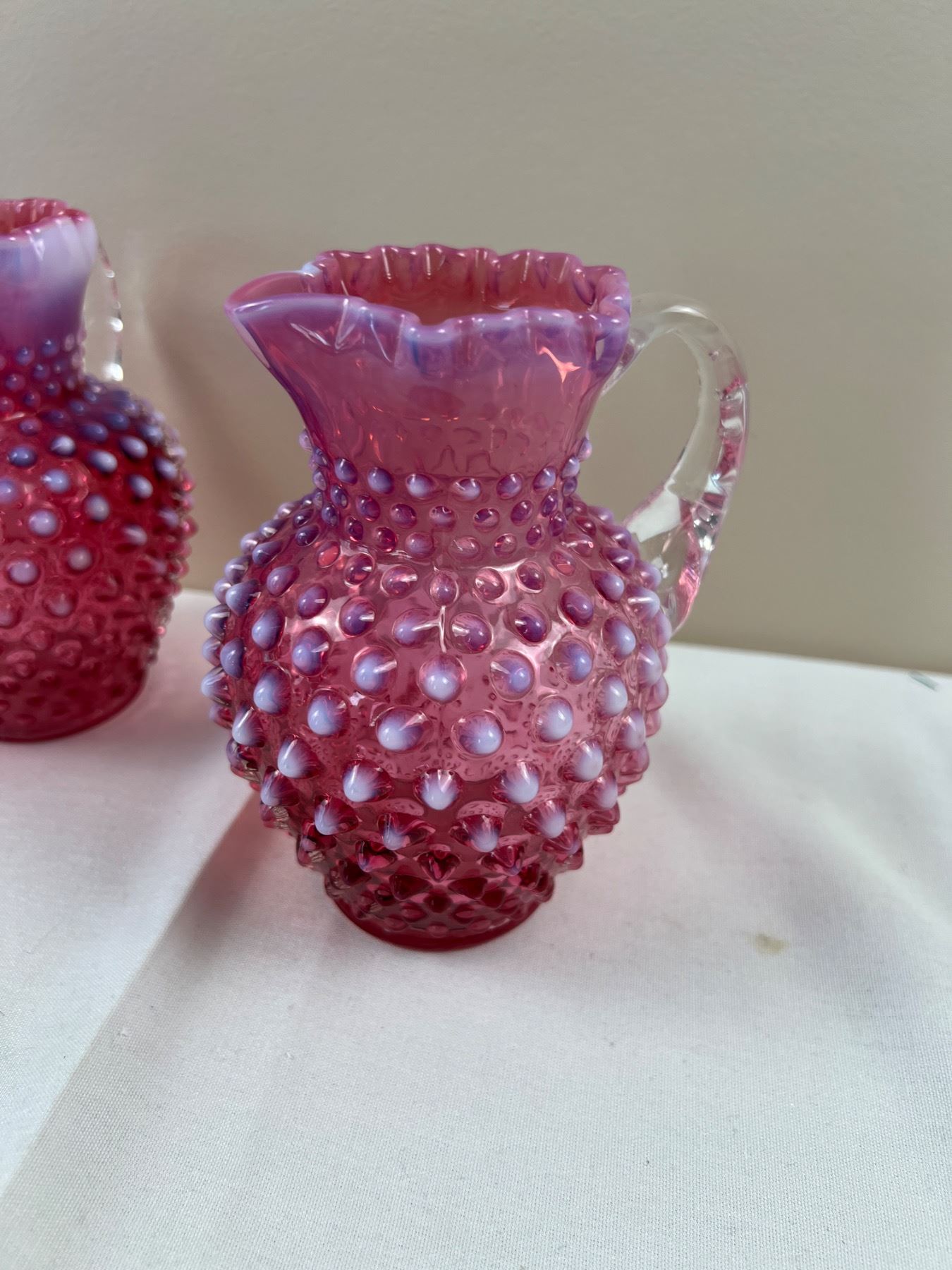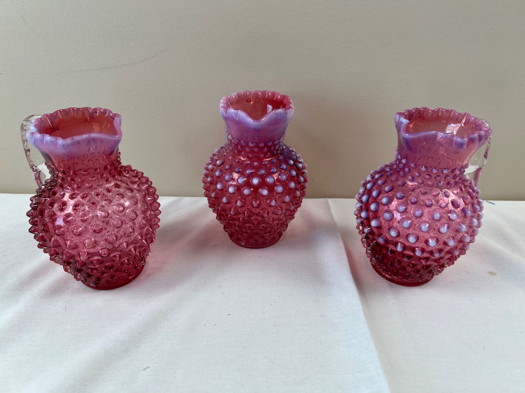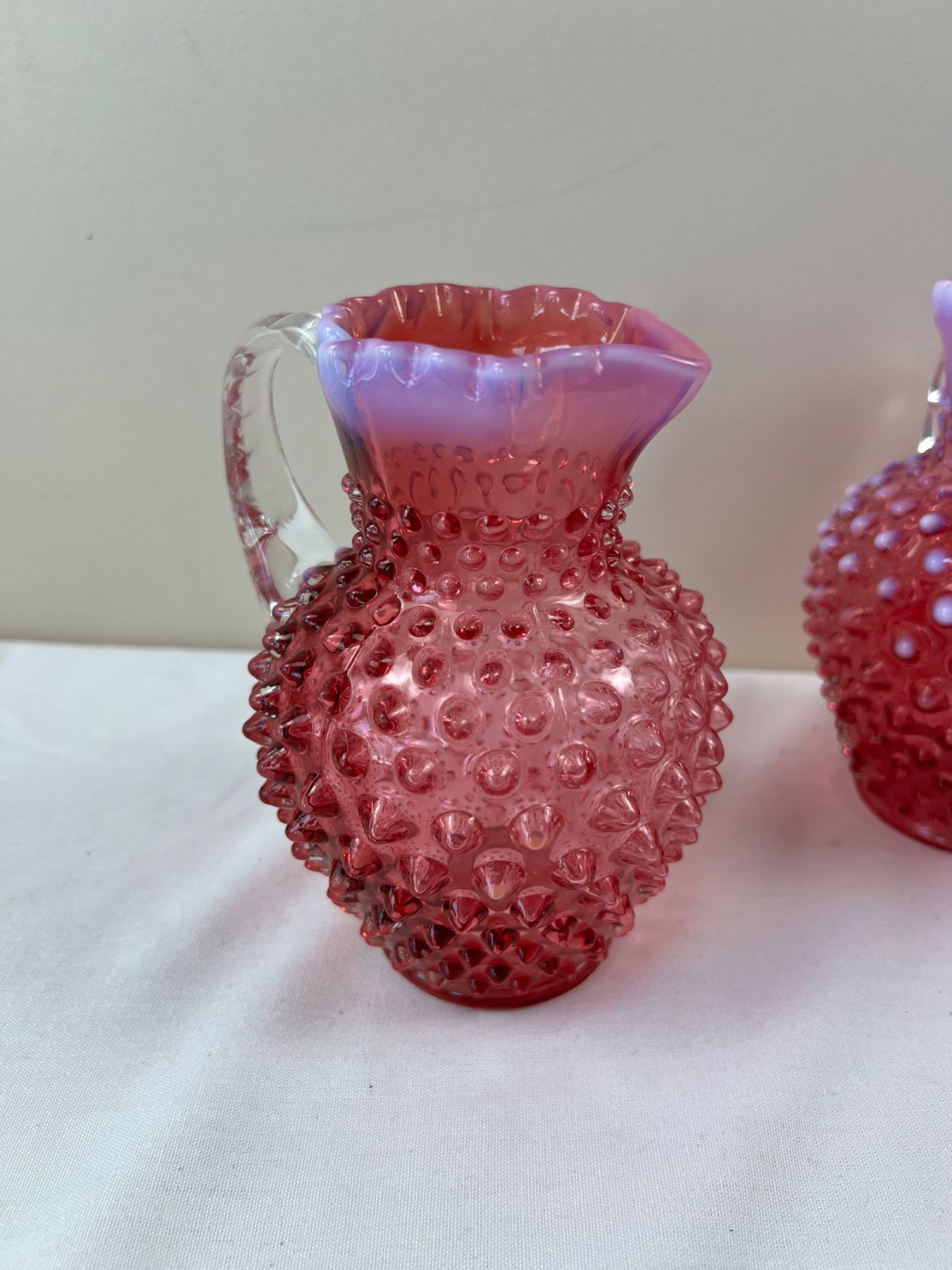 Each pitcher is 6"H, one is stamped "Fenton"