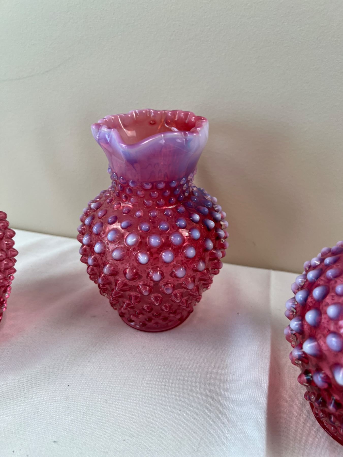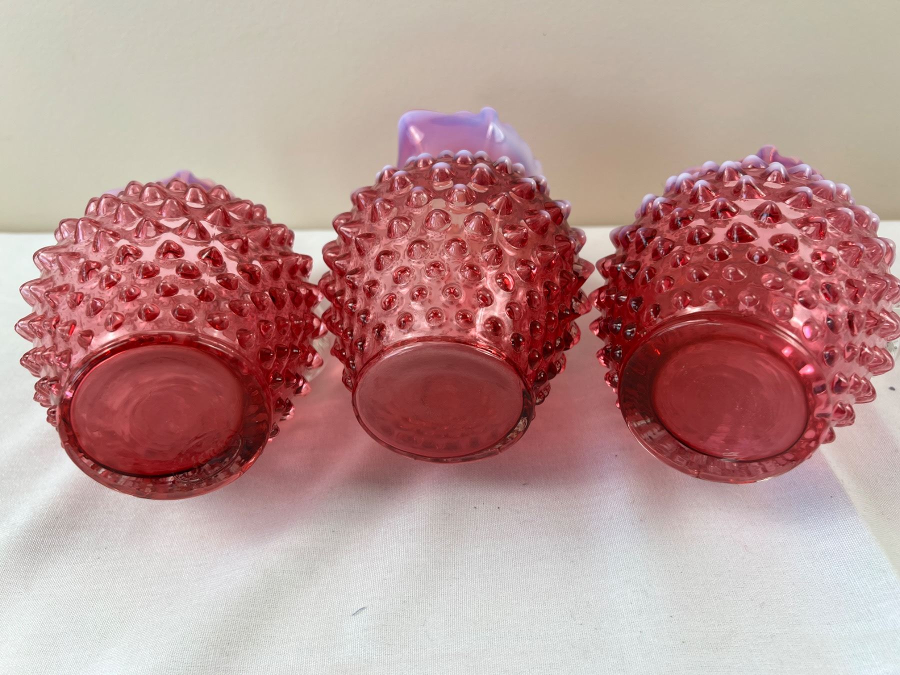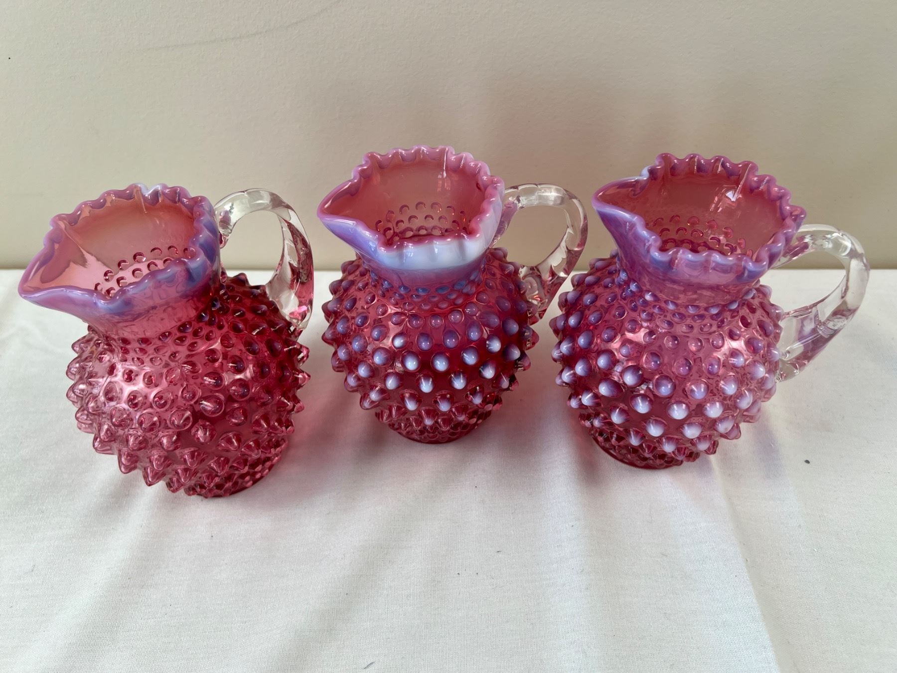 Each pitcher is 6"H, one is stamped "Fenton"