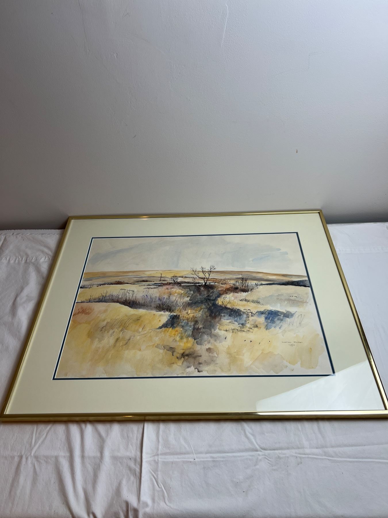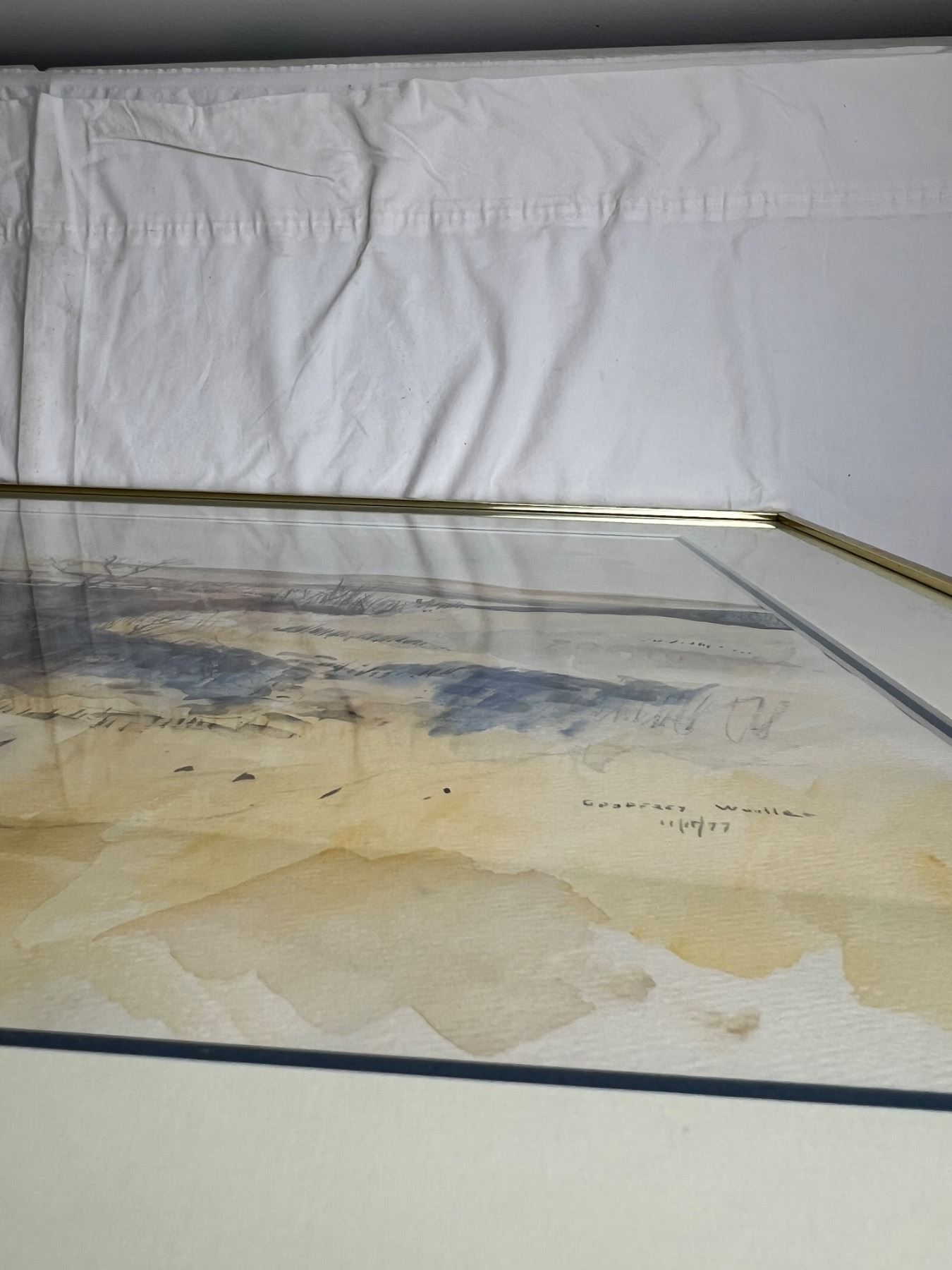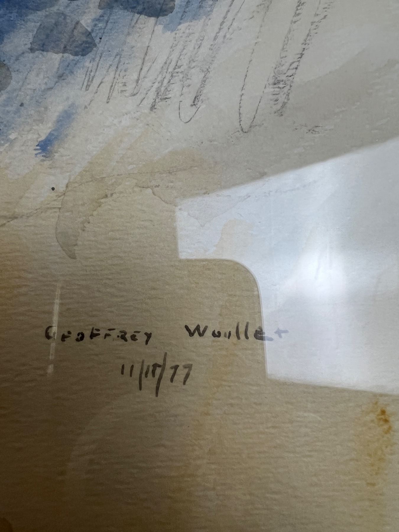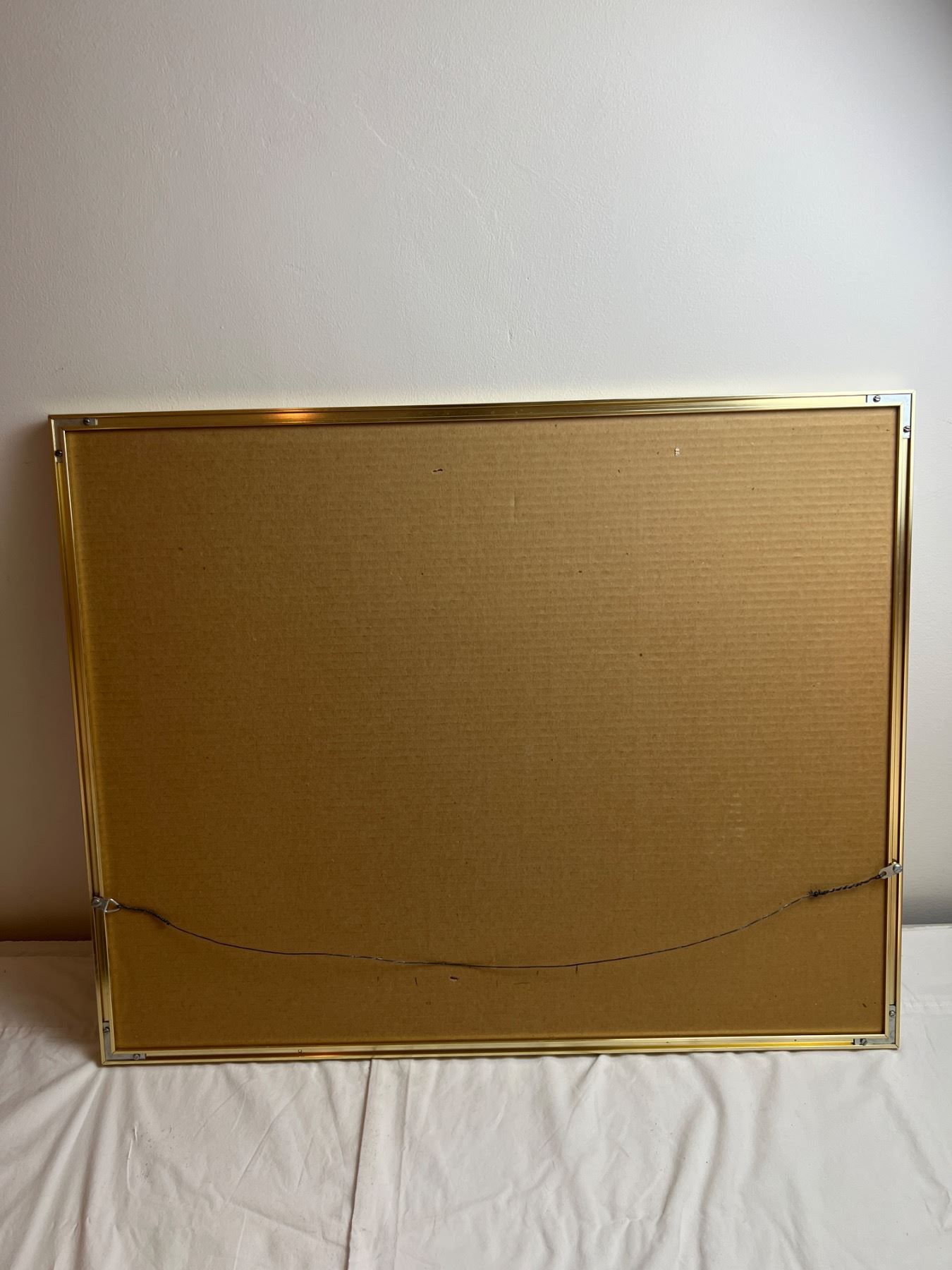 Has date underneath signature of 11/18/77. Hard to show in images but paper has warping from taking the paint. Measures 25" by 31"