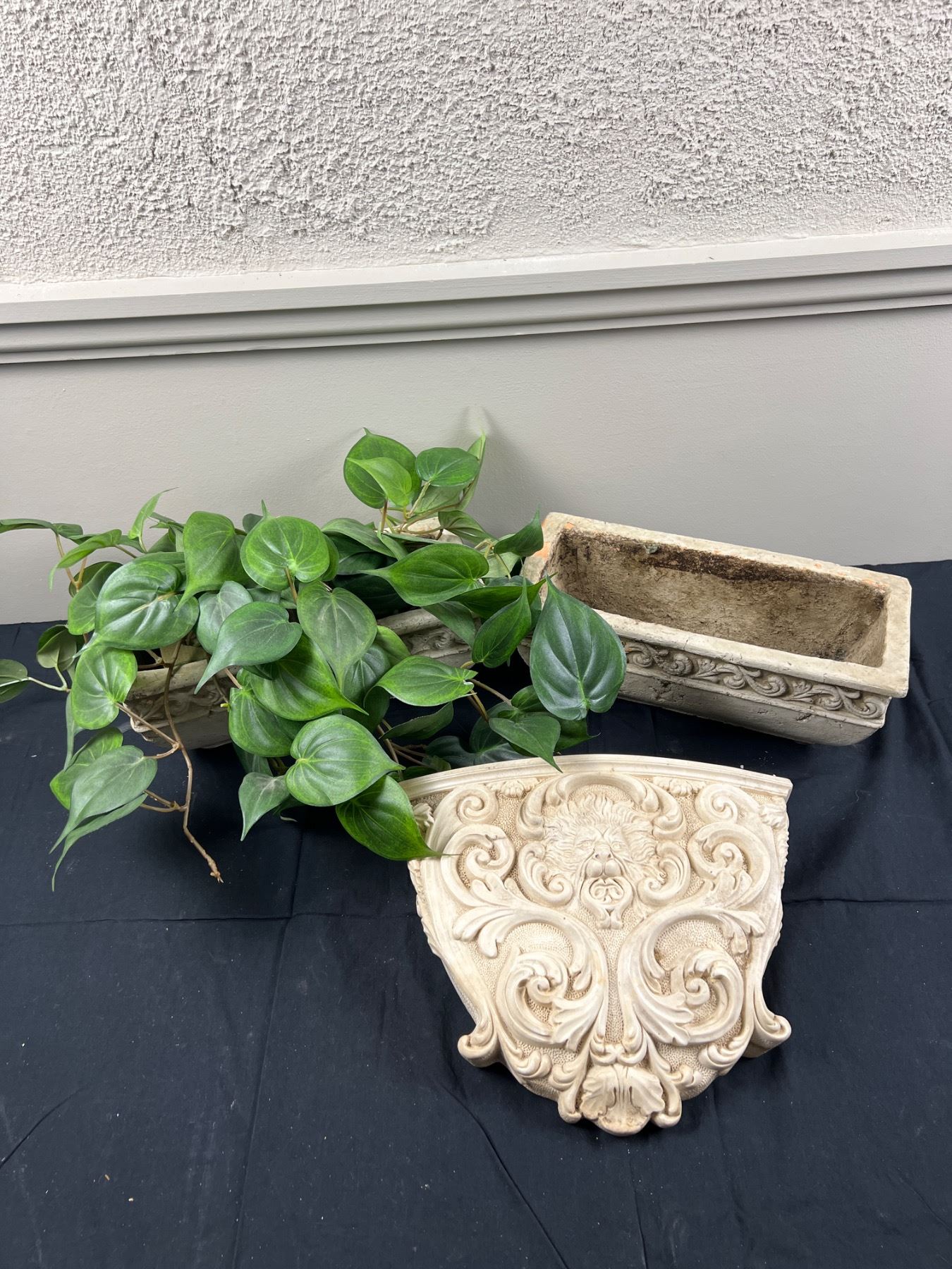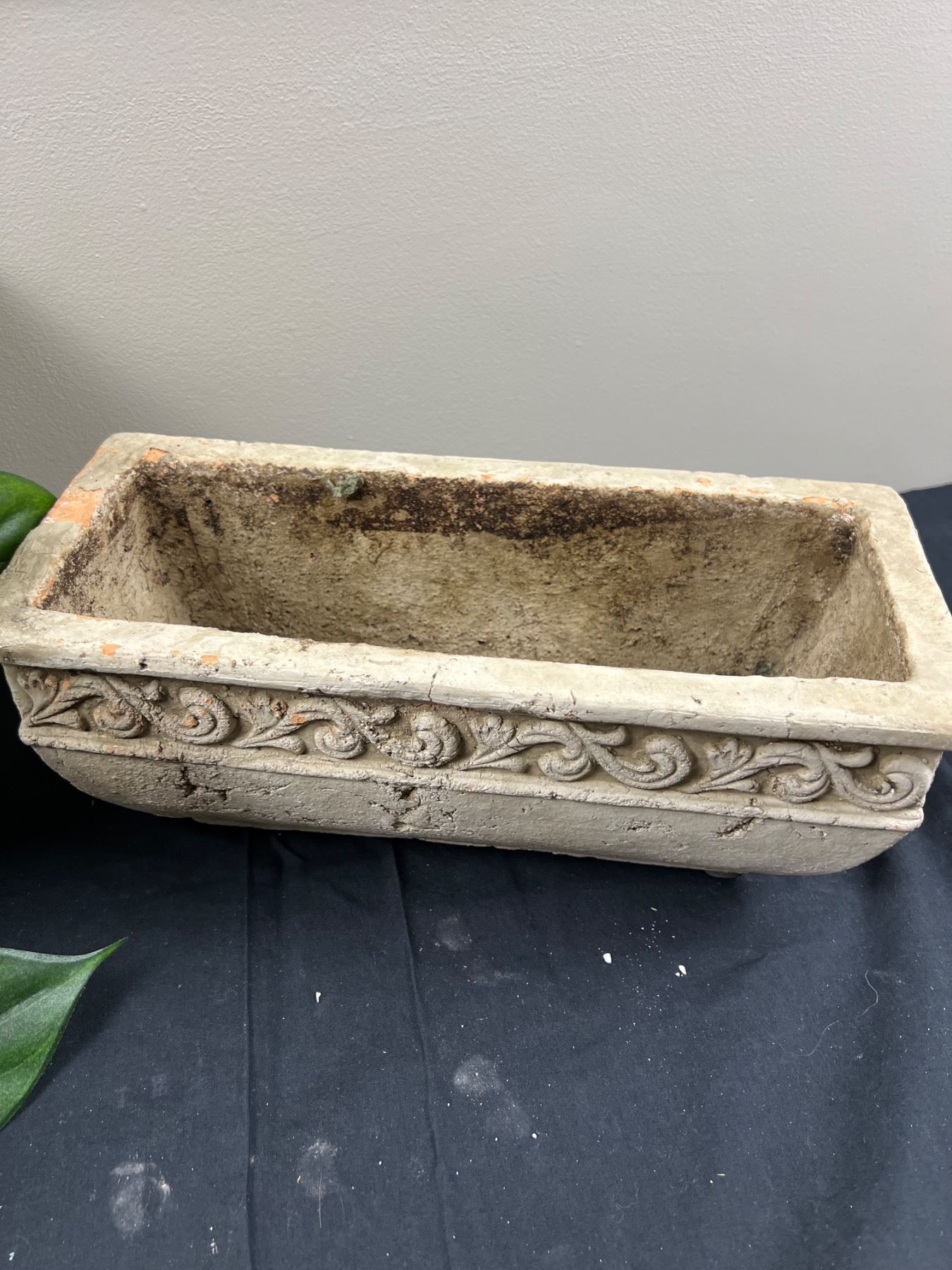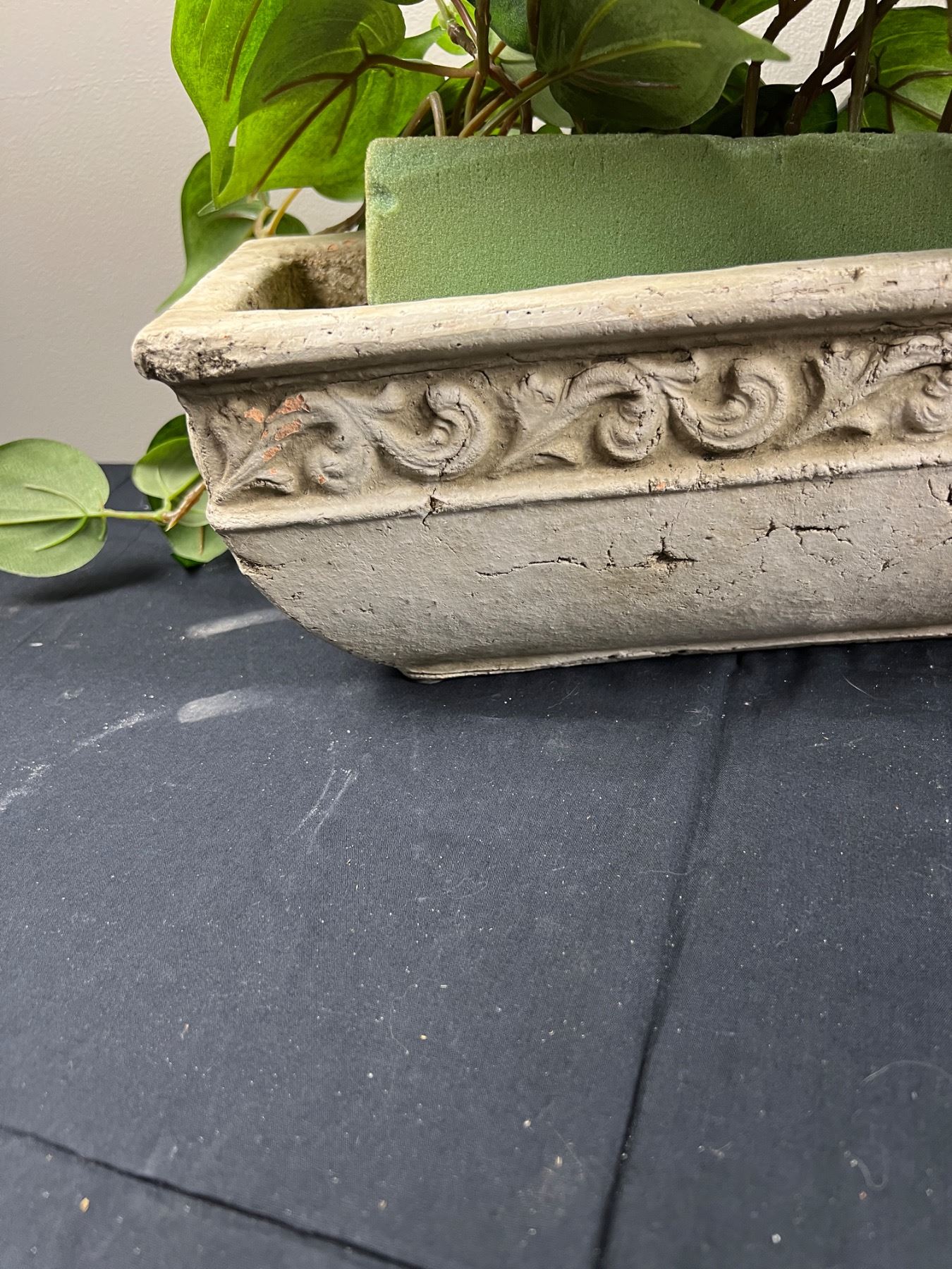 Plant is sythetic. Rectangular planters measure 13" by 6"