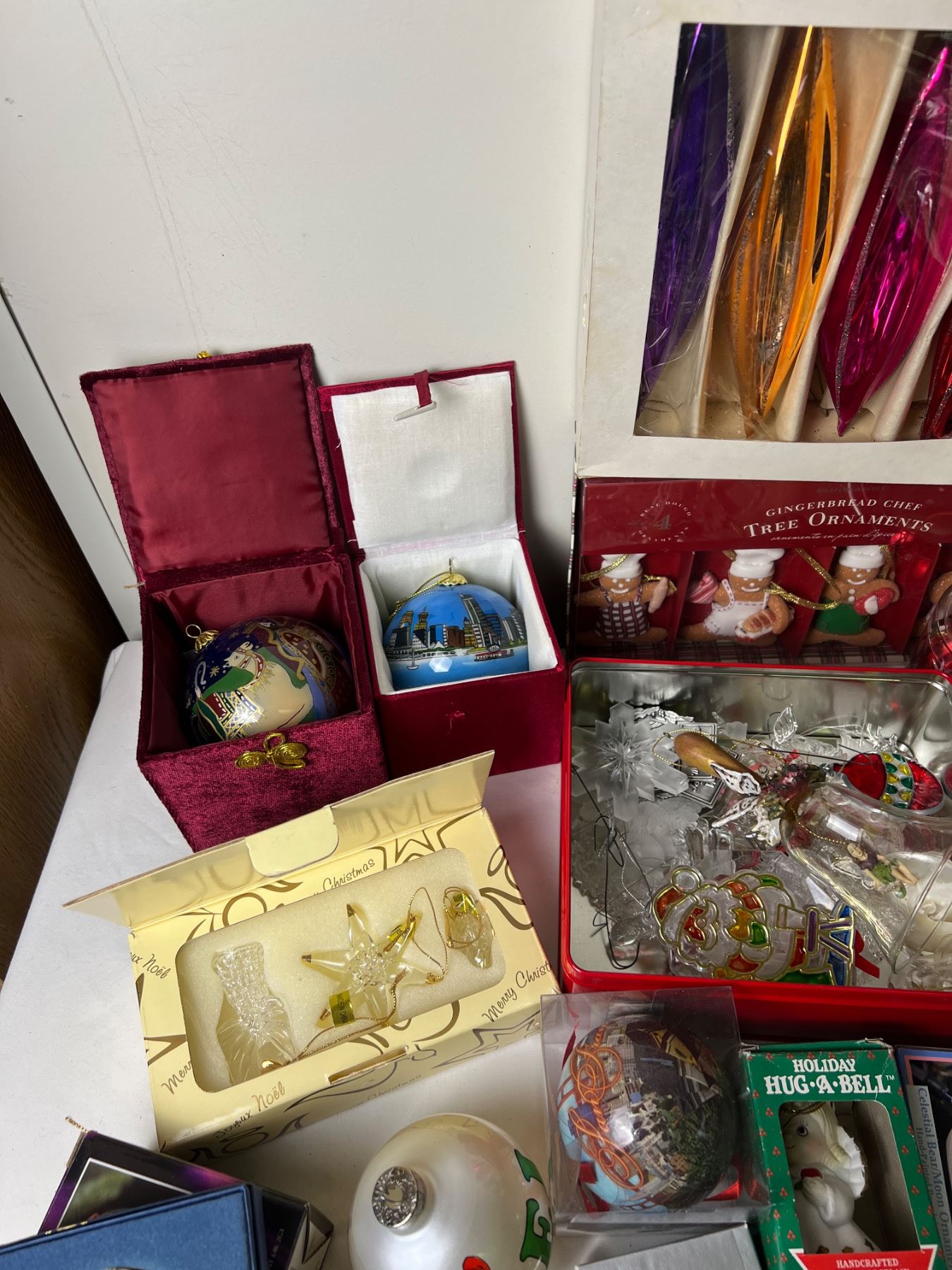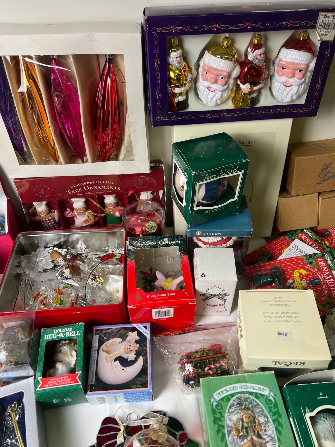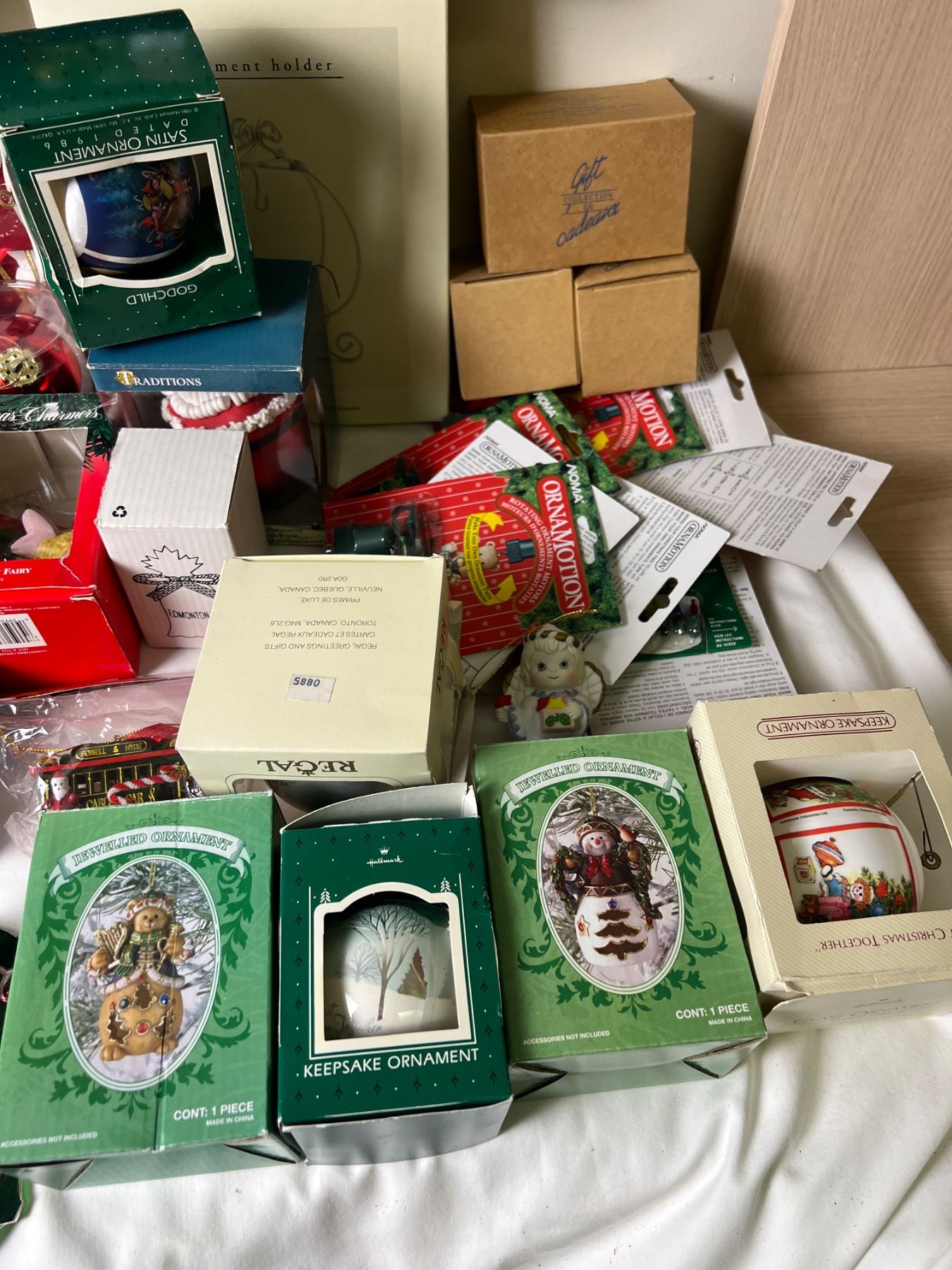 A wide mix of more delicate and artistic ornaments and more standard style ornaments. Also includes ornament motors for rotation. Also includes storage boxes.