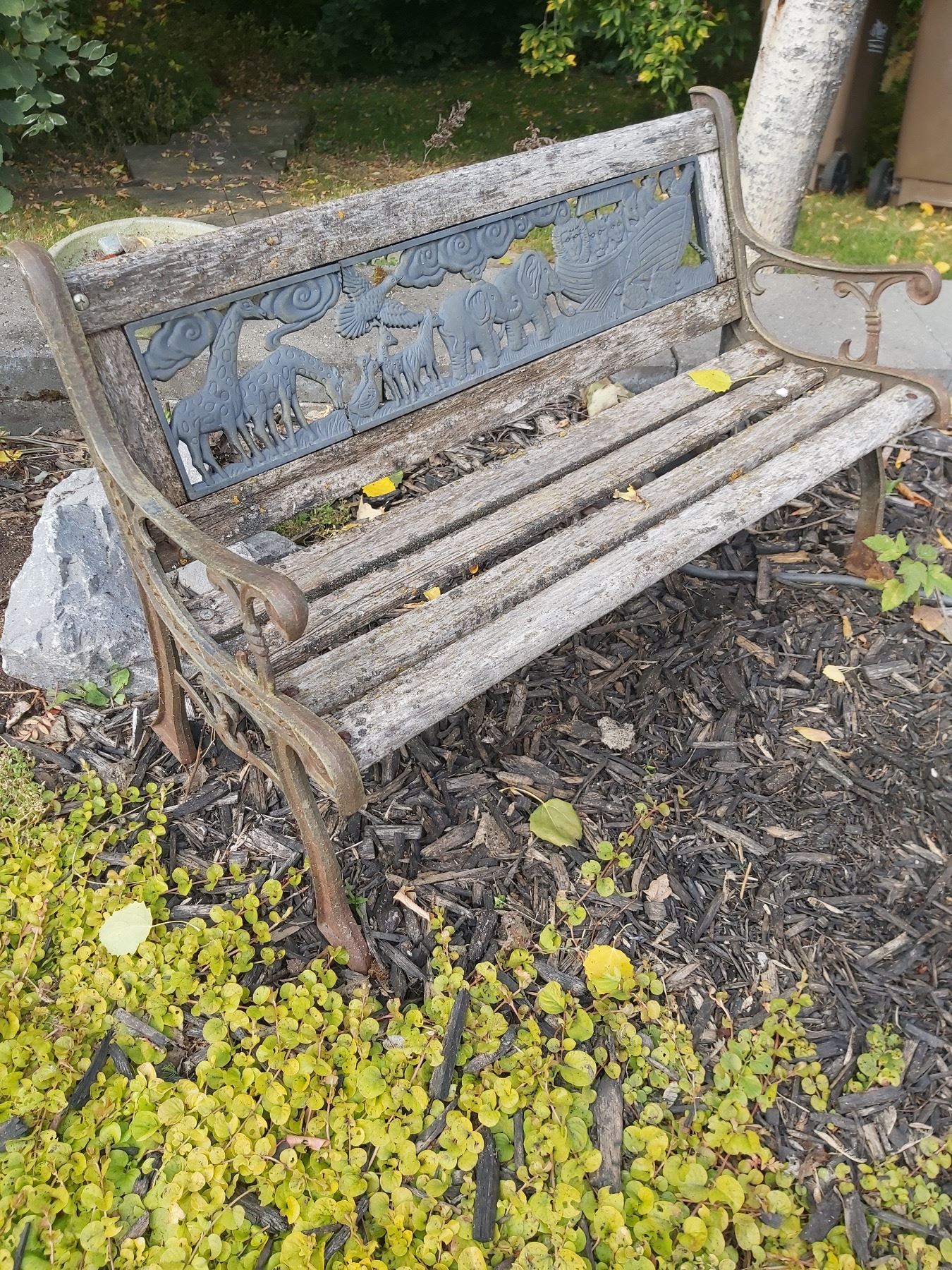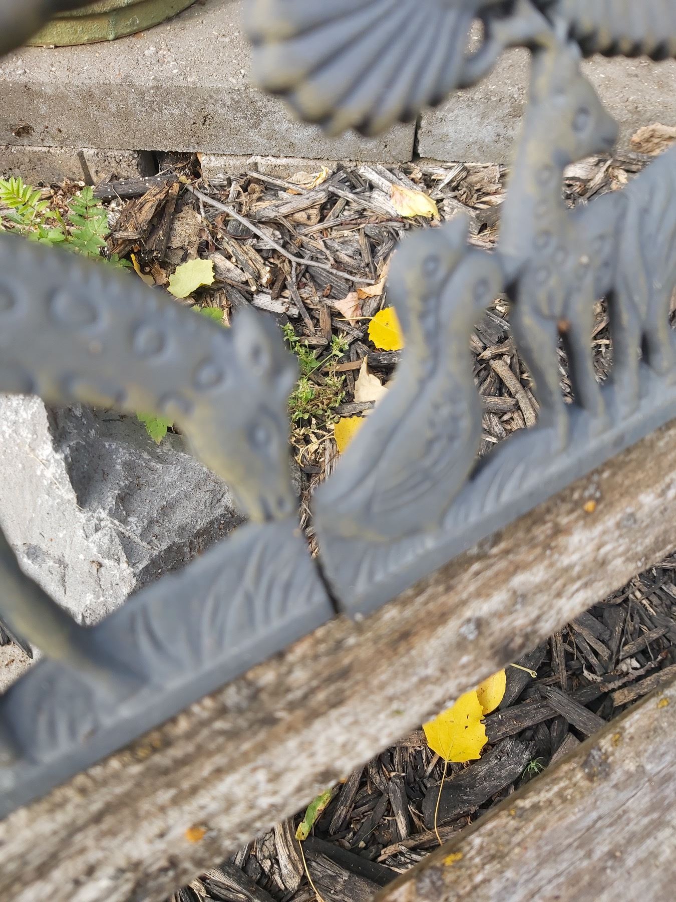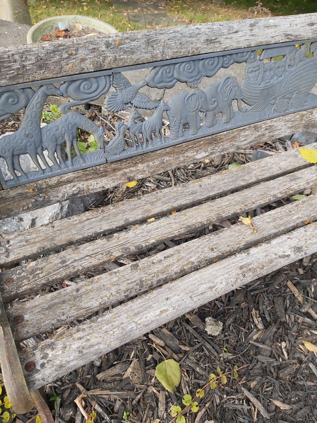 Metal arms, Plastic backing is cracked, 19"H x 15"W x 33"W