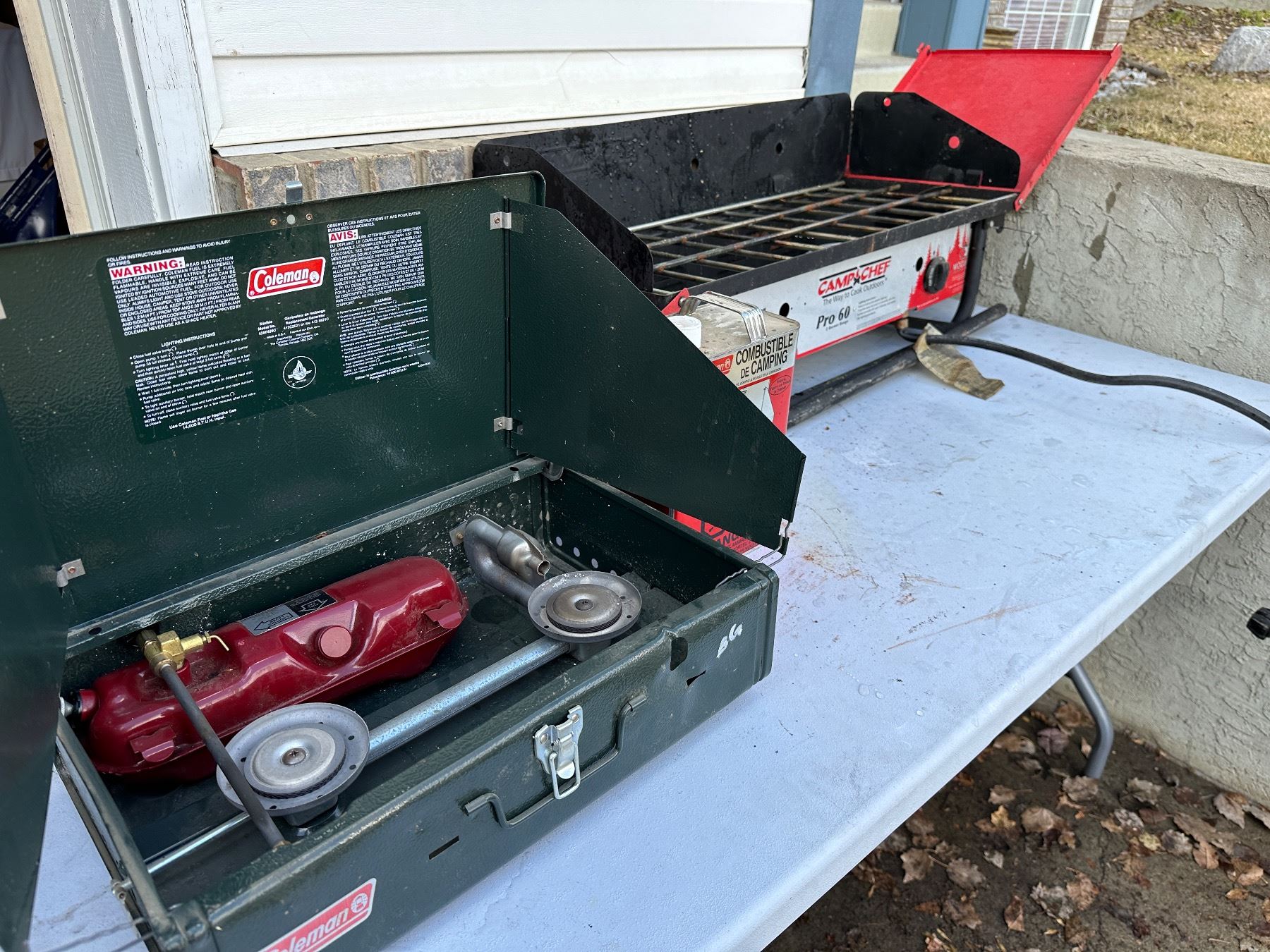 Includes Coleman stove & Camp Chef Pro 60 2 burner range - unknown working condition
