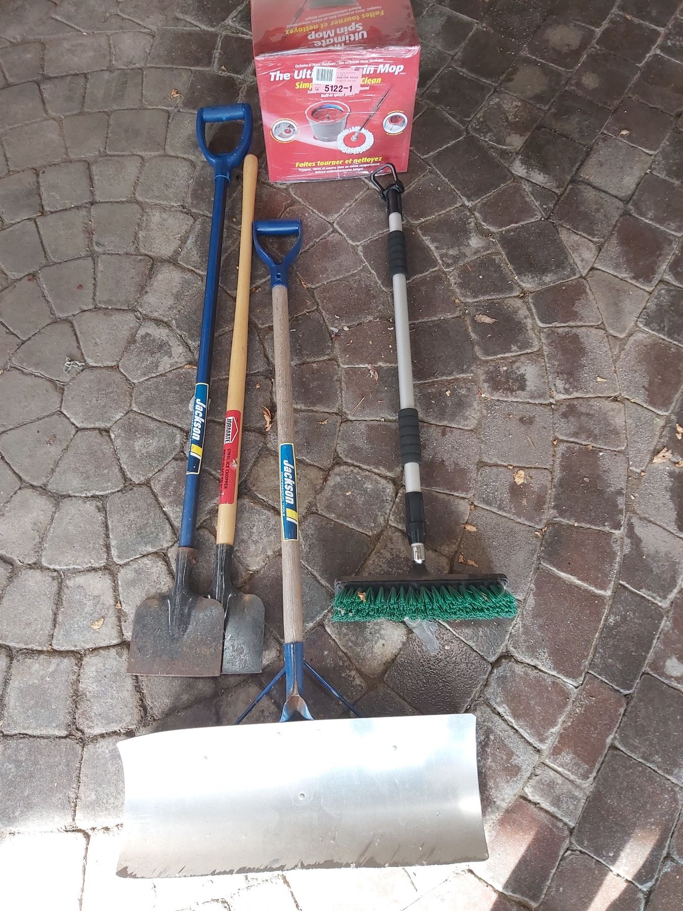 Includes The Ultimate Spin Mop, Ice chippers, shovel, etc.