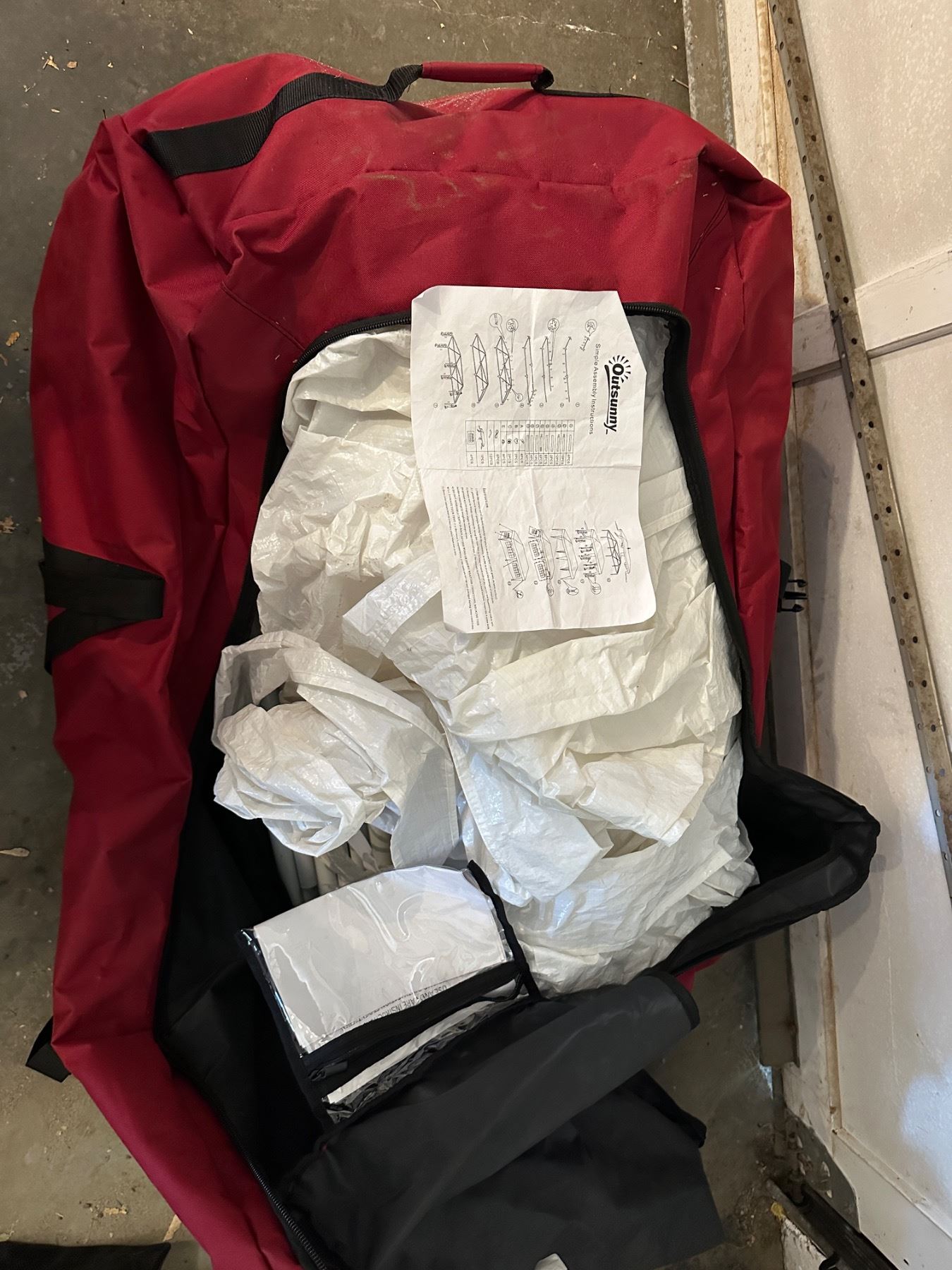 Unknown size and unknown if all parts accounted for - comes in wheeled carrying case