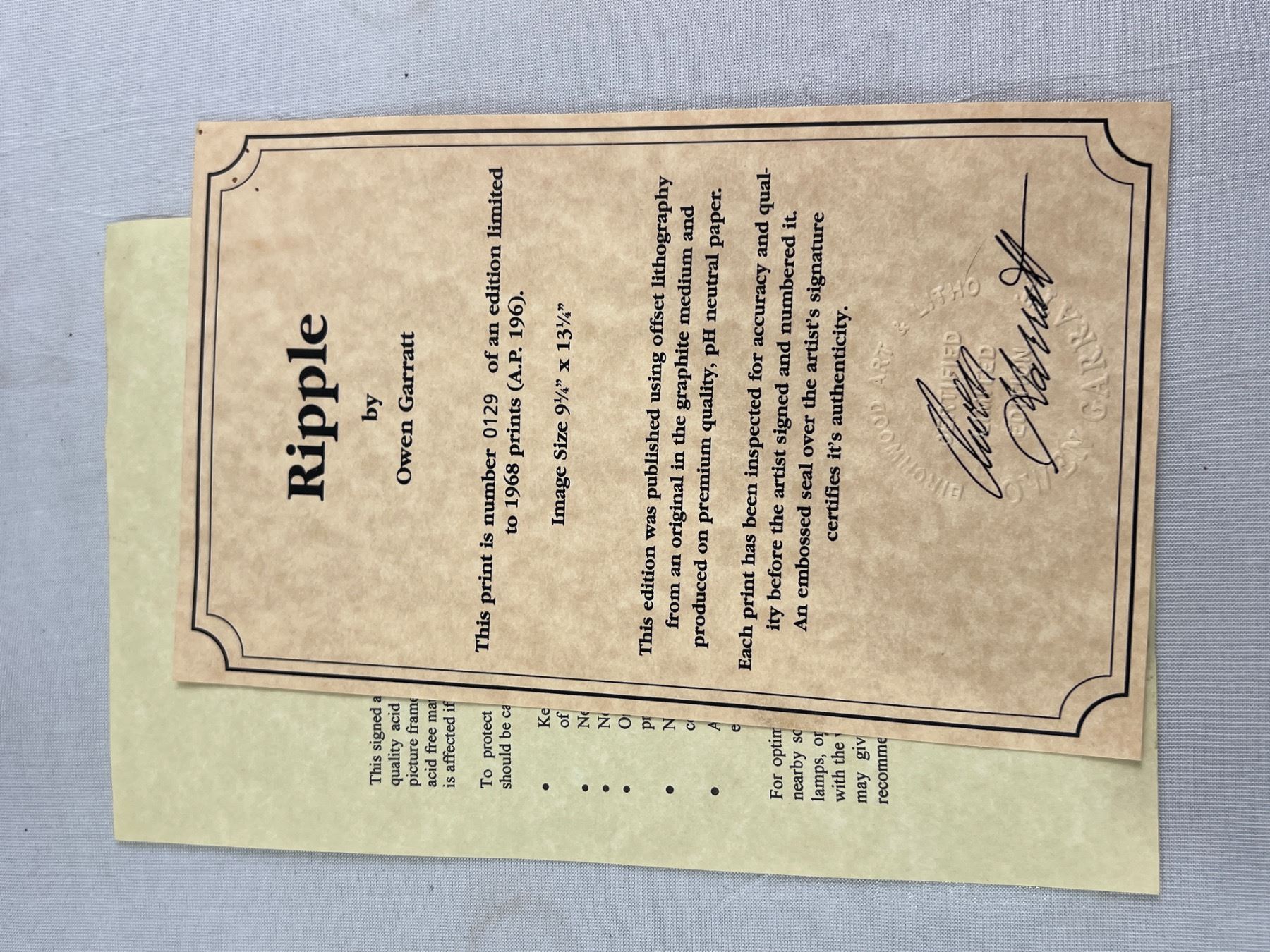 Framed Owen Garratt Limited Edition Print With Certification Measures 16" x 20"