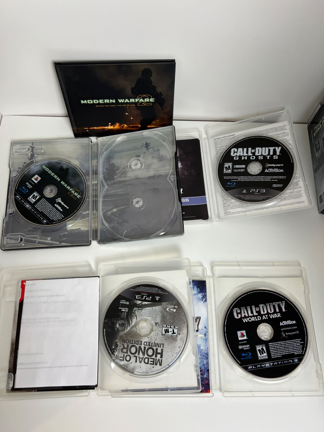 Includes four used games, Call of Duty Modern Warfare Collection only has one disc