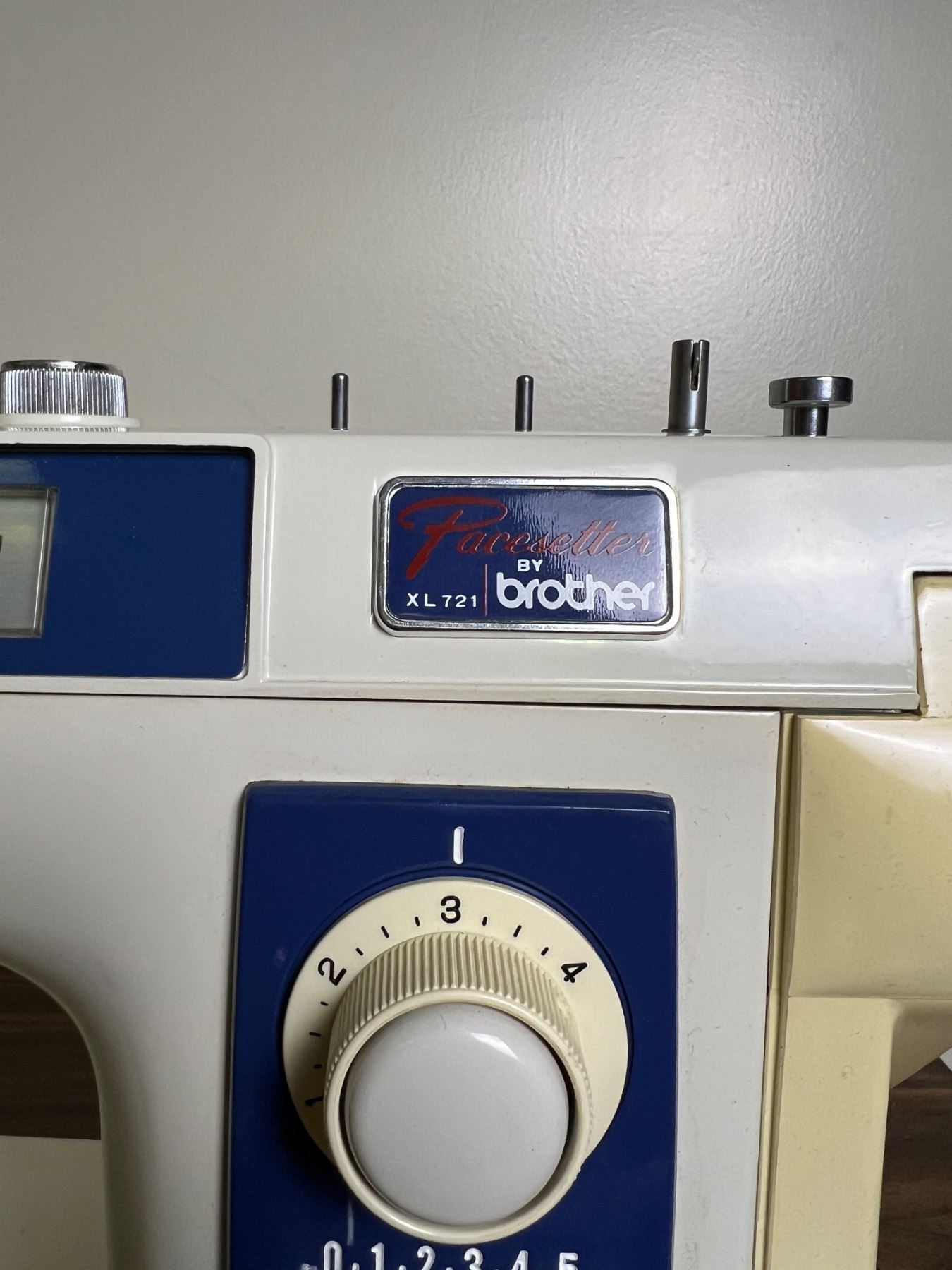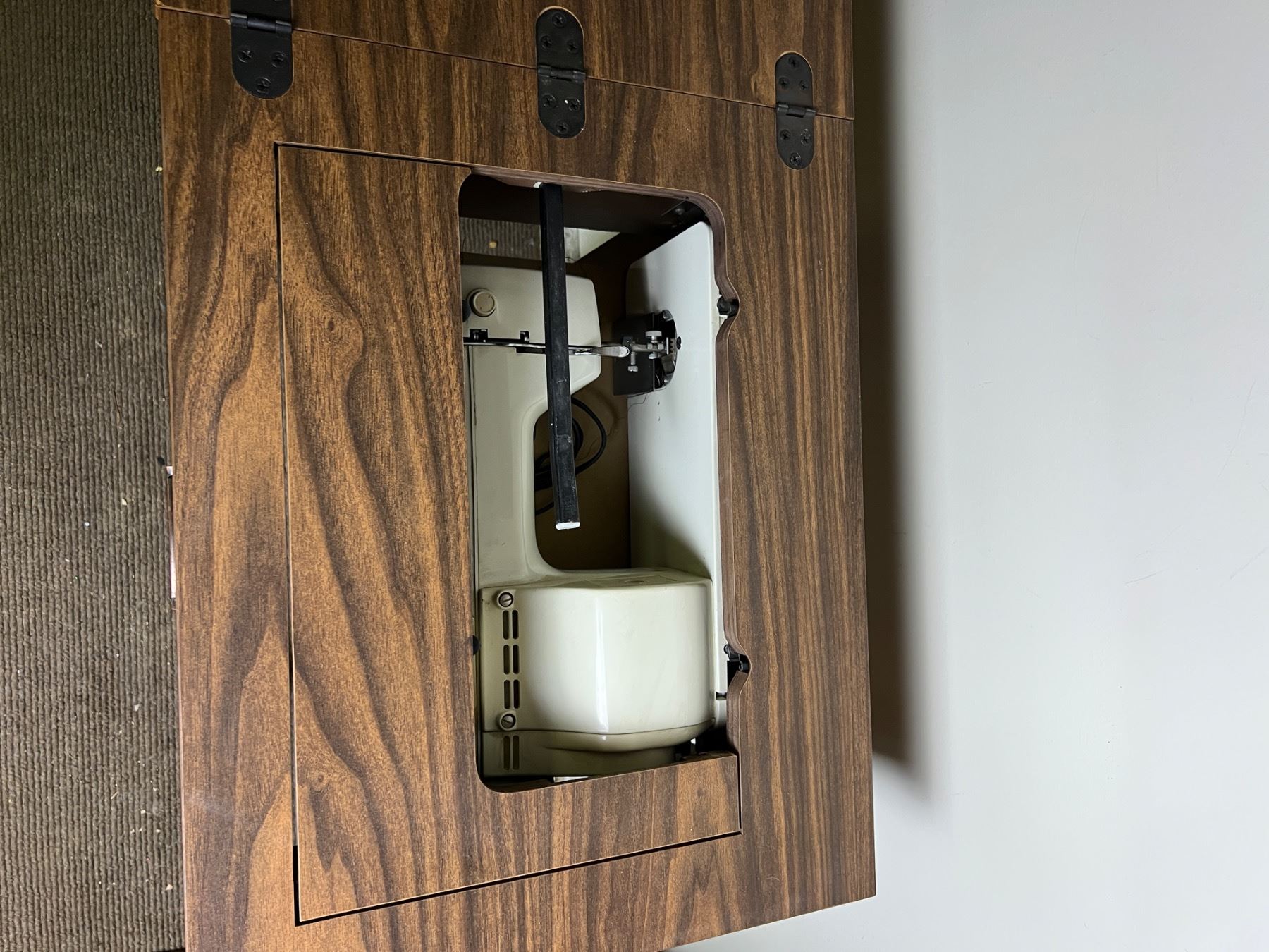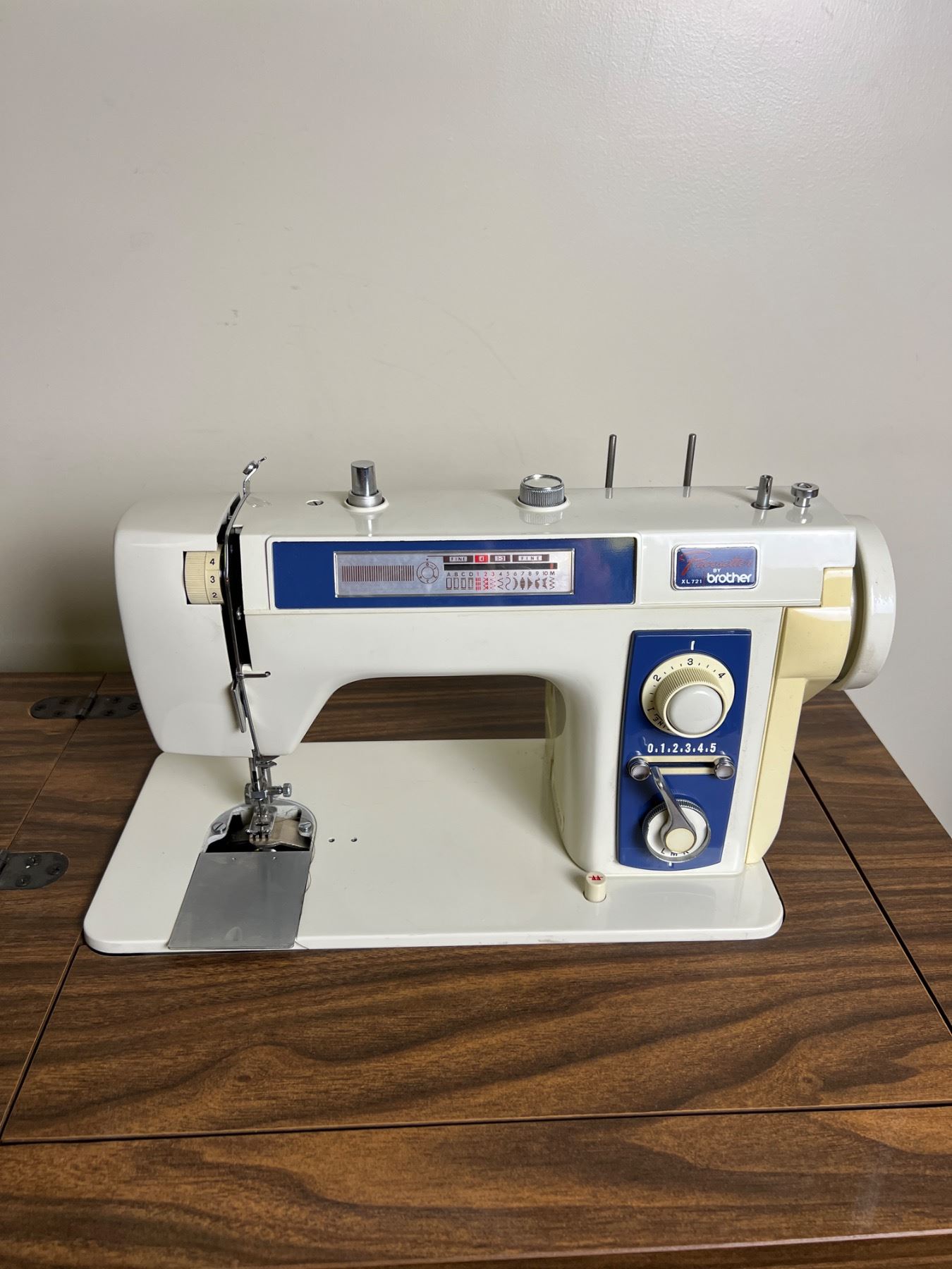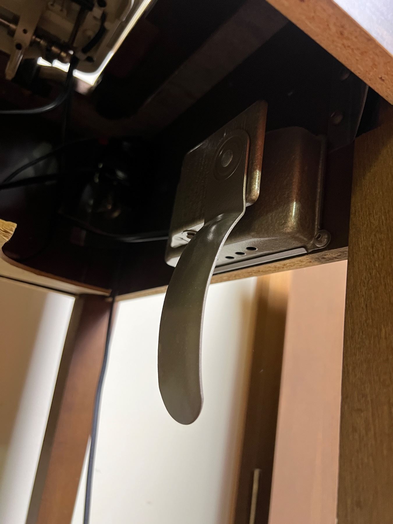 Model No. XL17, Has a knee pedal, turns on, Table extended measures 44"L, 22"L x 18"W x 31"H