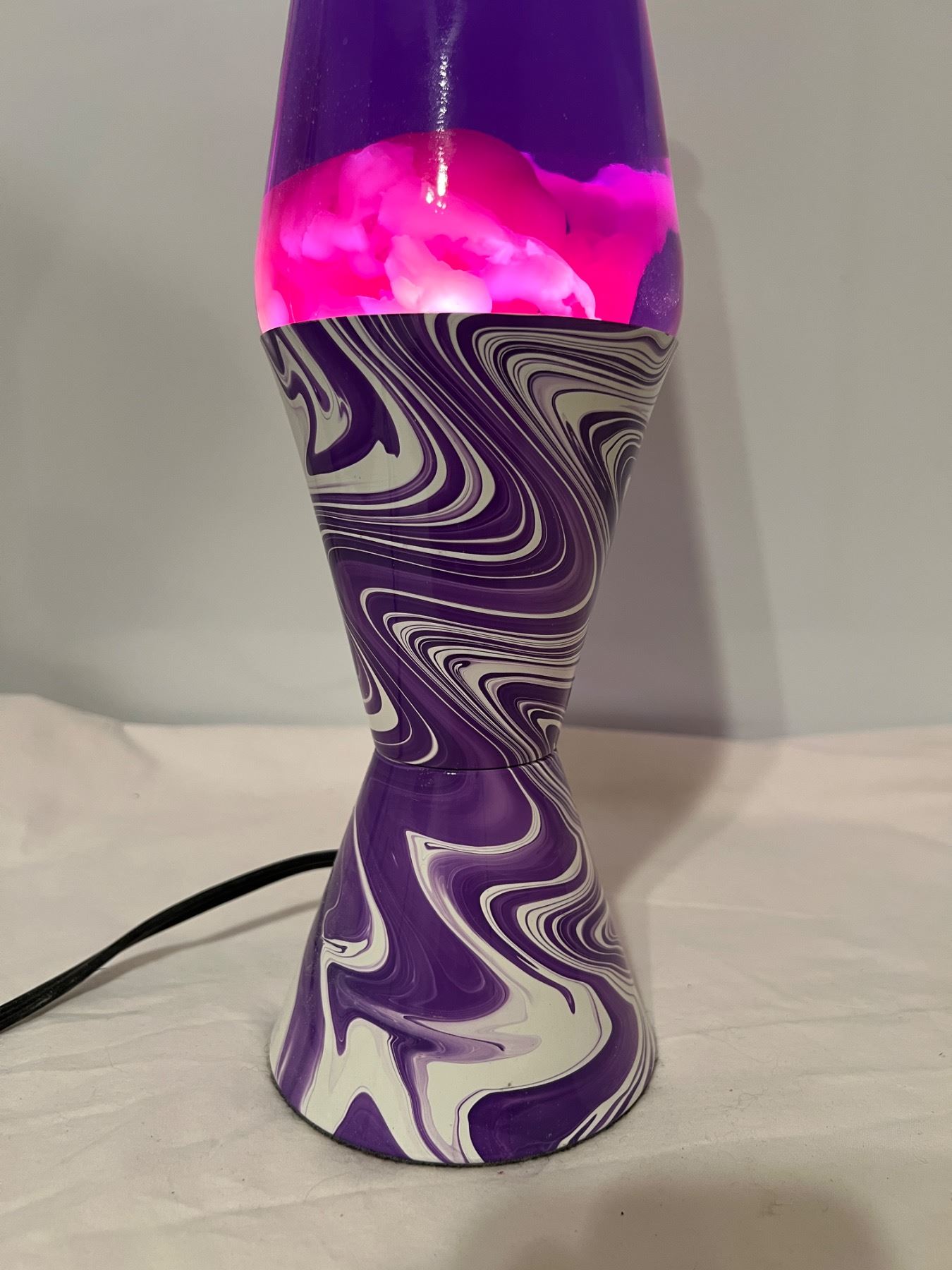 Powers on and works. Wax does function as a normal lamps does but did not warm up enough in time for its picture. It was shy. Missing top cover.