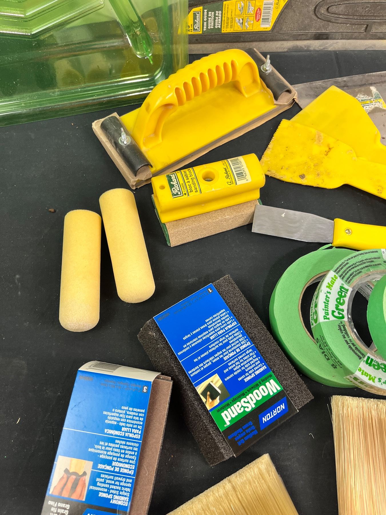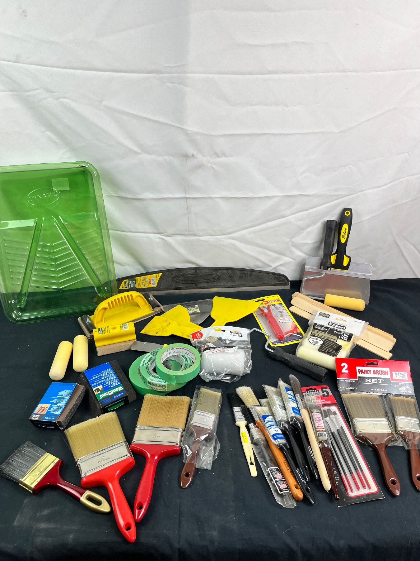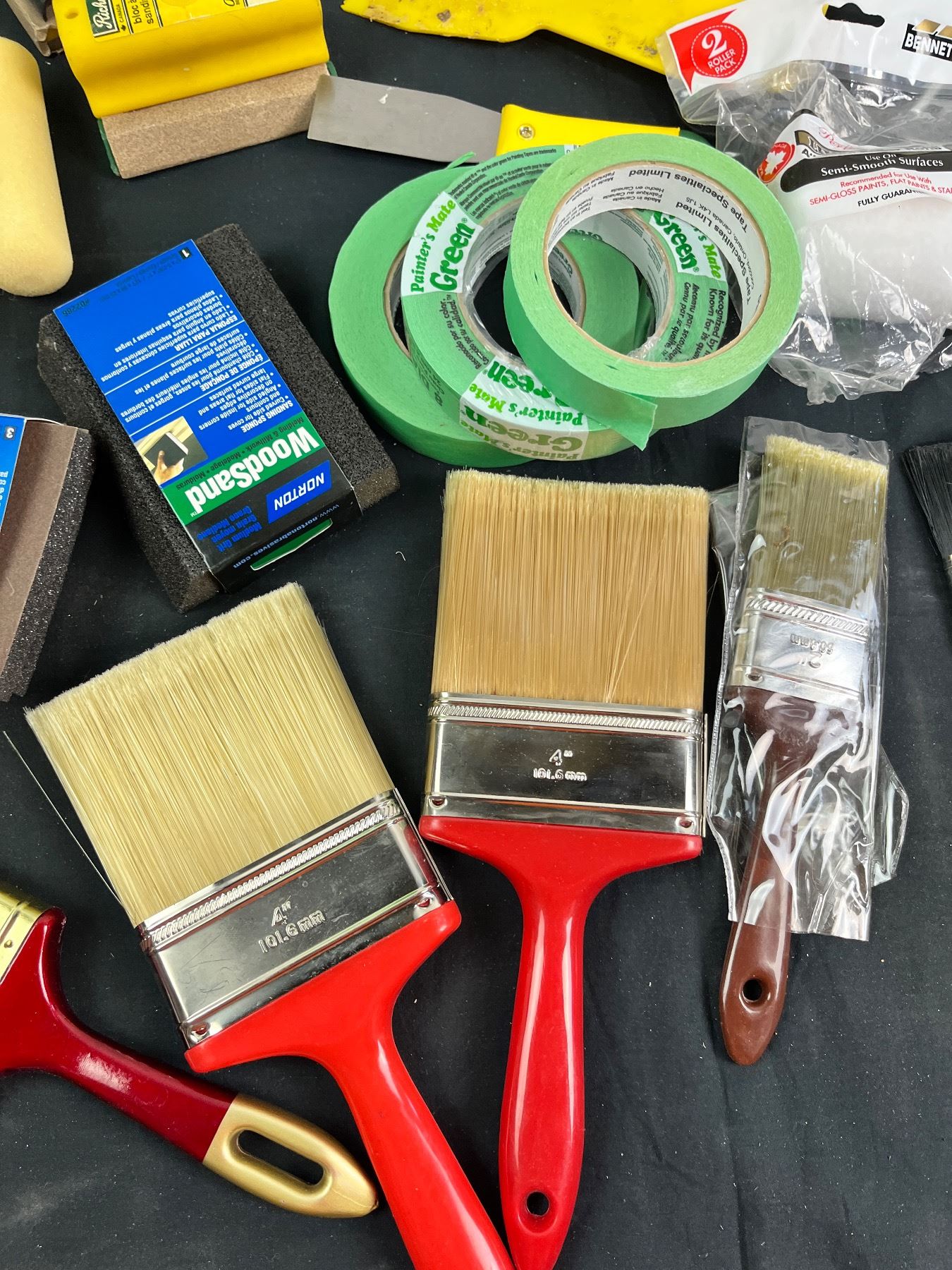 Includes paintbrushes, putty knife, roller, scraper, etc.