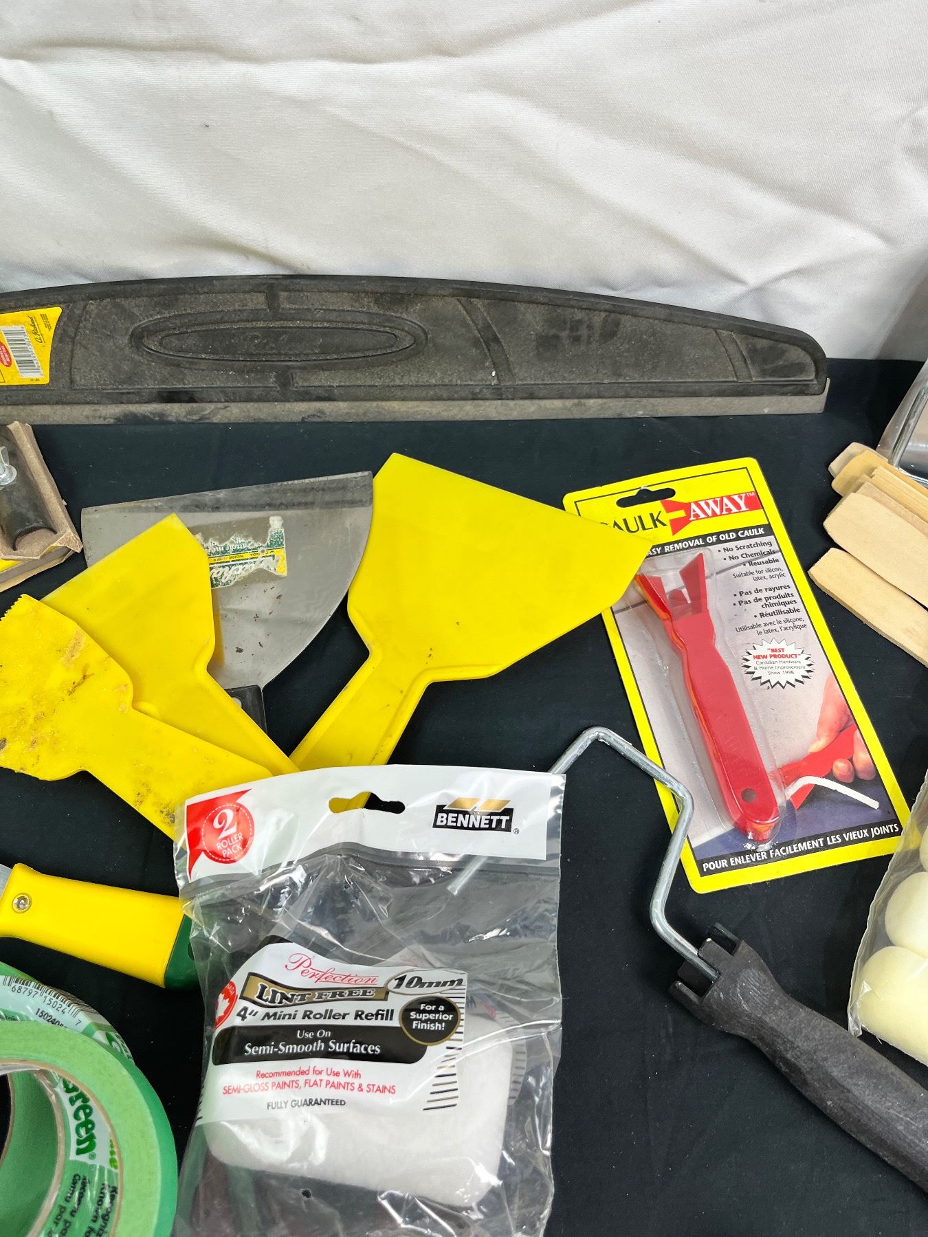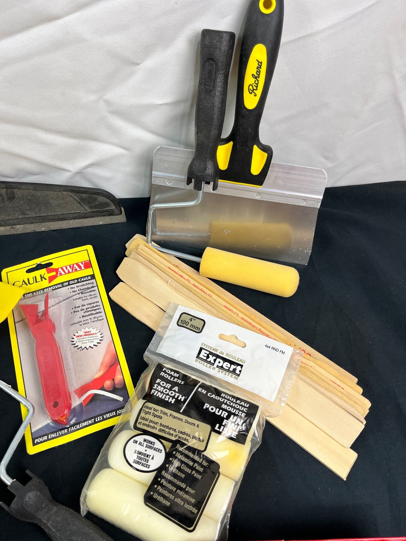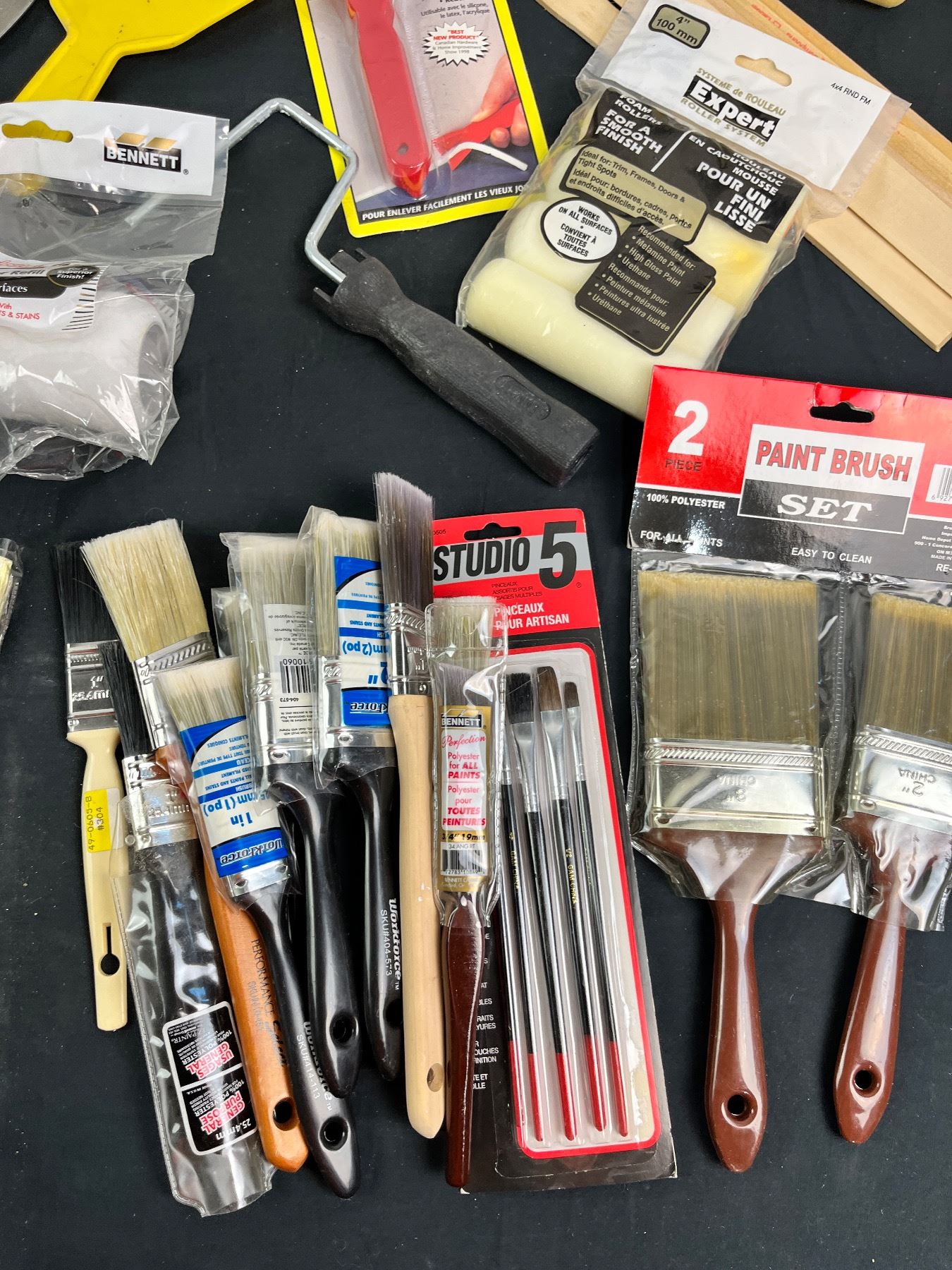 Includes paintbrushes, putty knife, roller, scraper, etc.