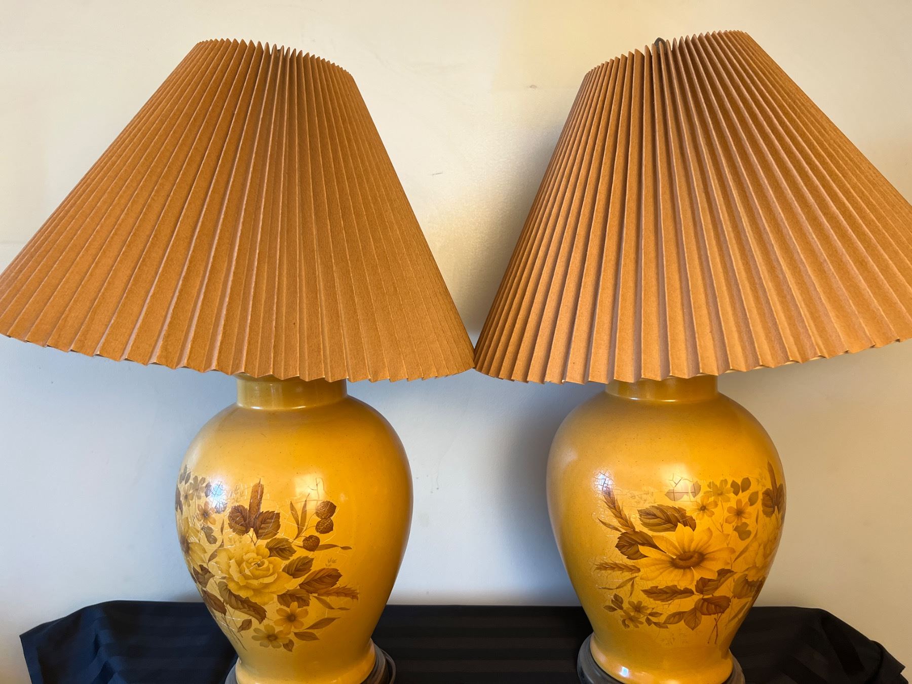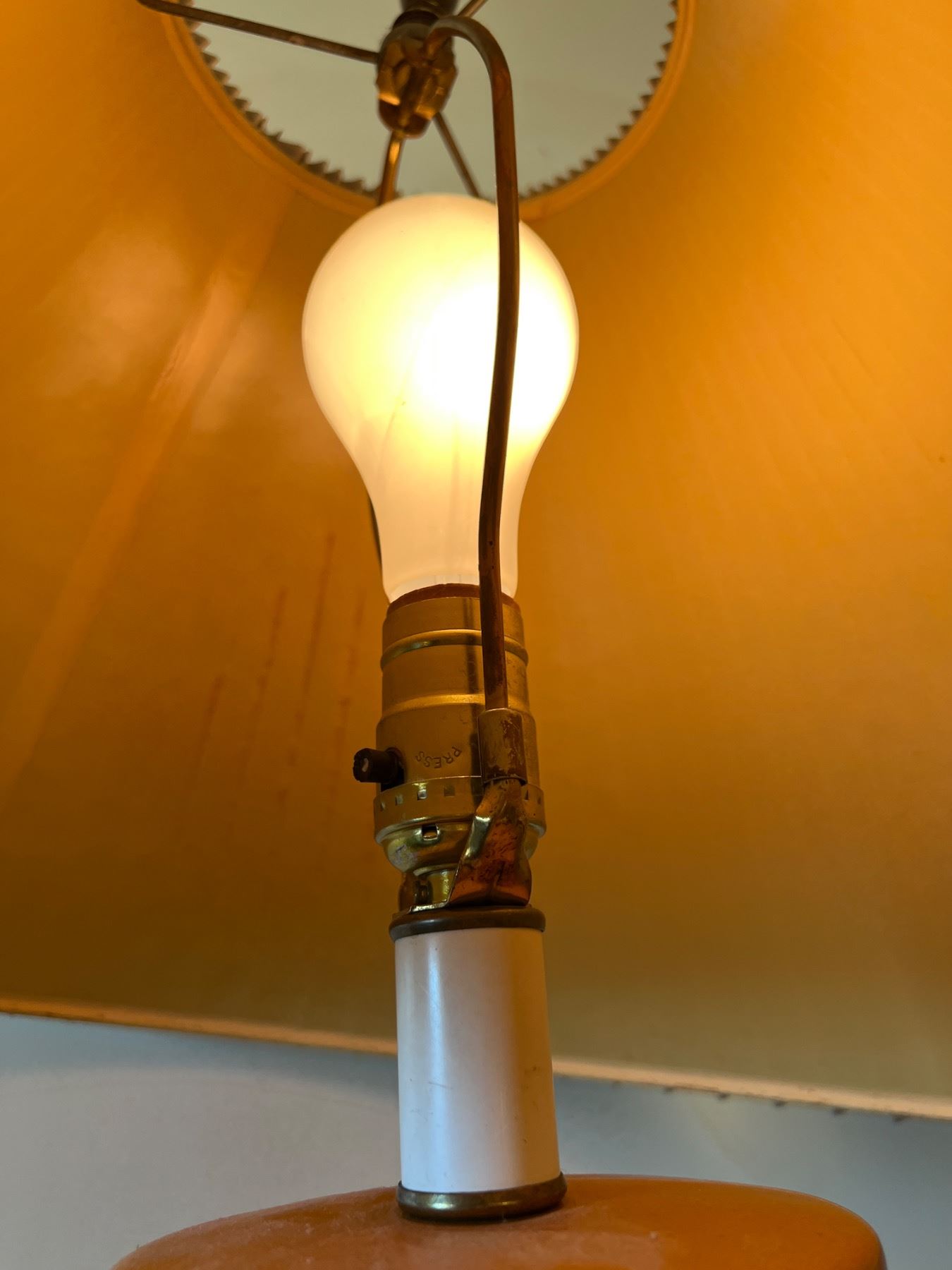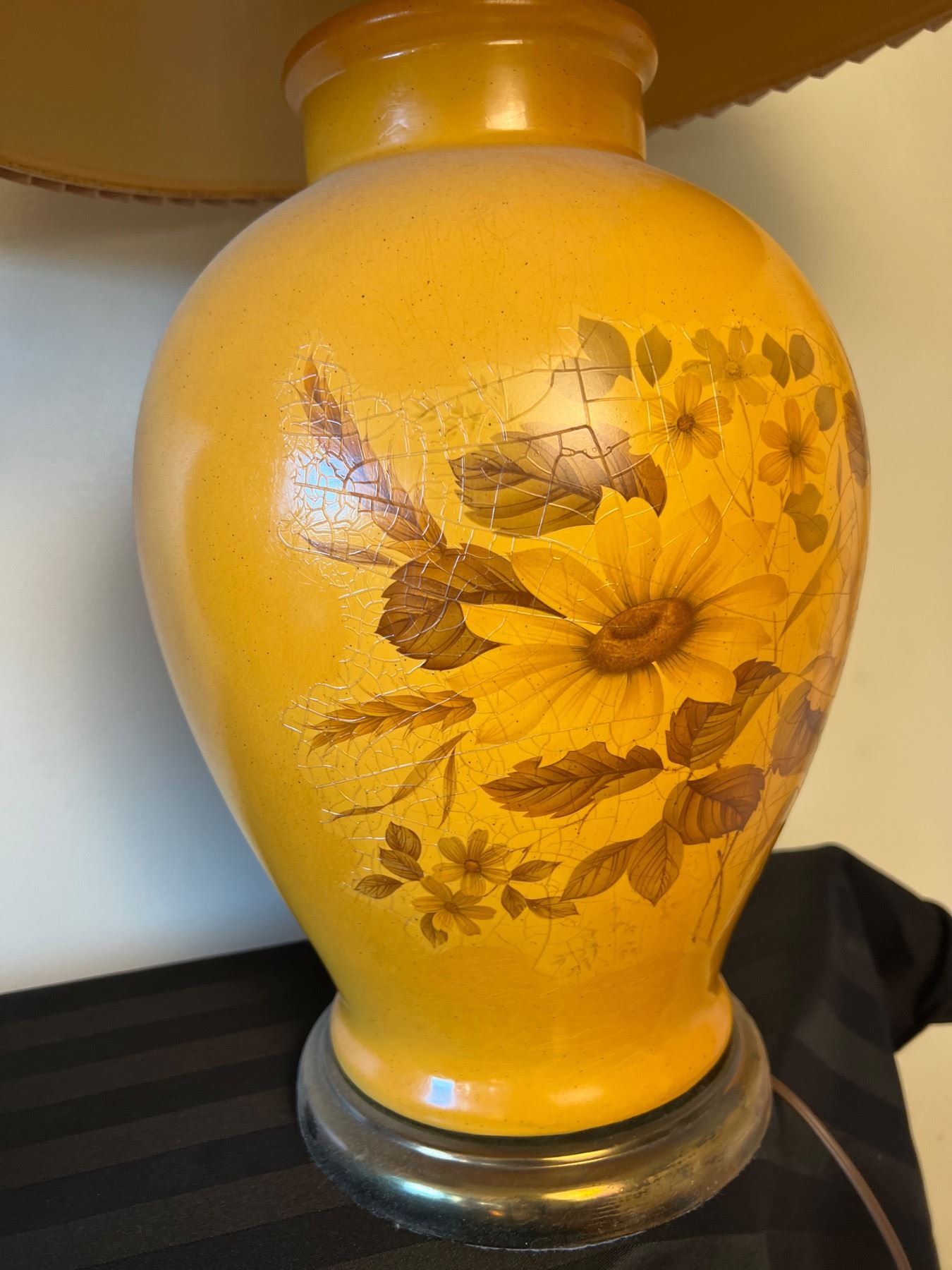 29"H x 20"W, one lamp is working but the knob is broken off, the other lamp has a loose switch