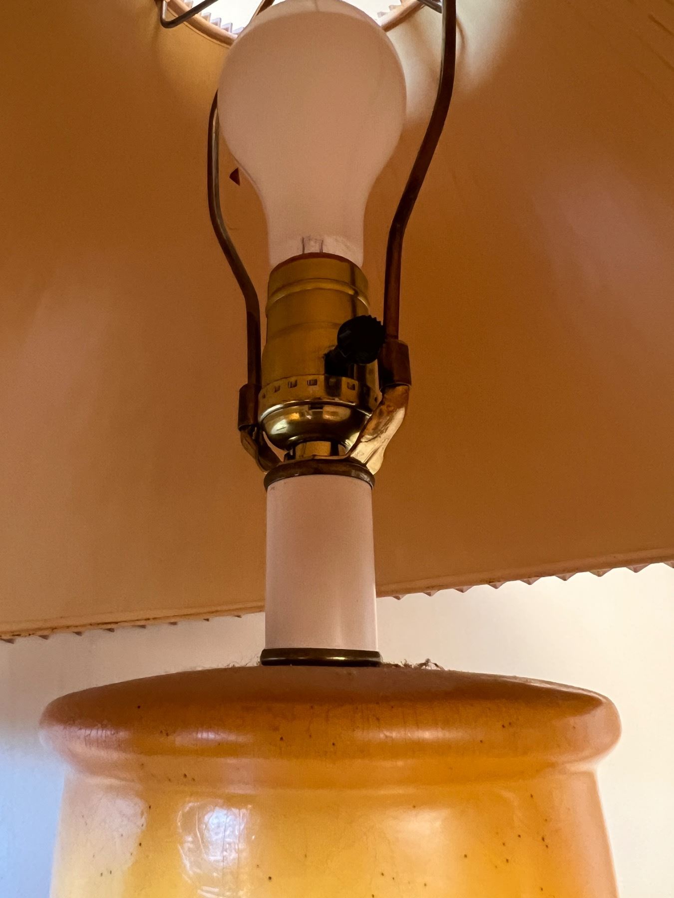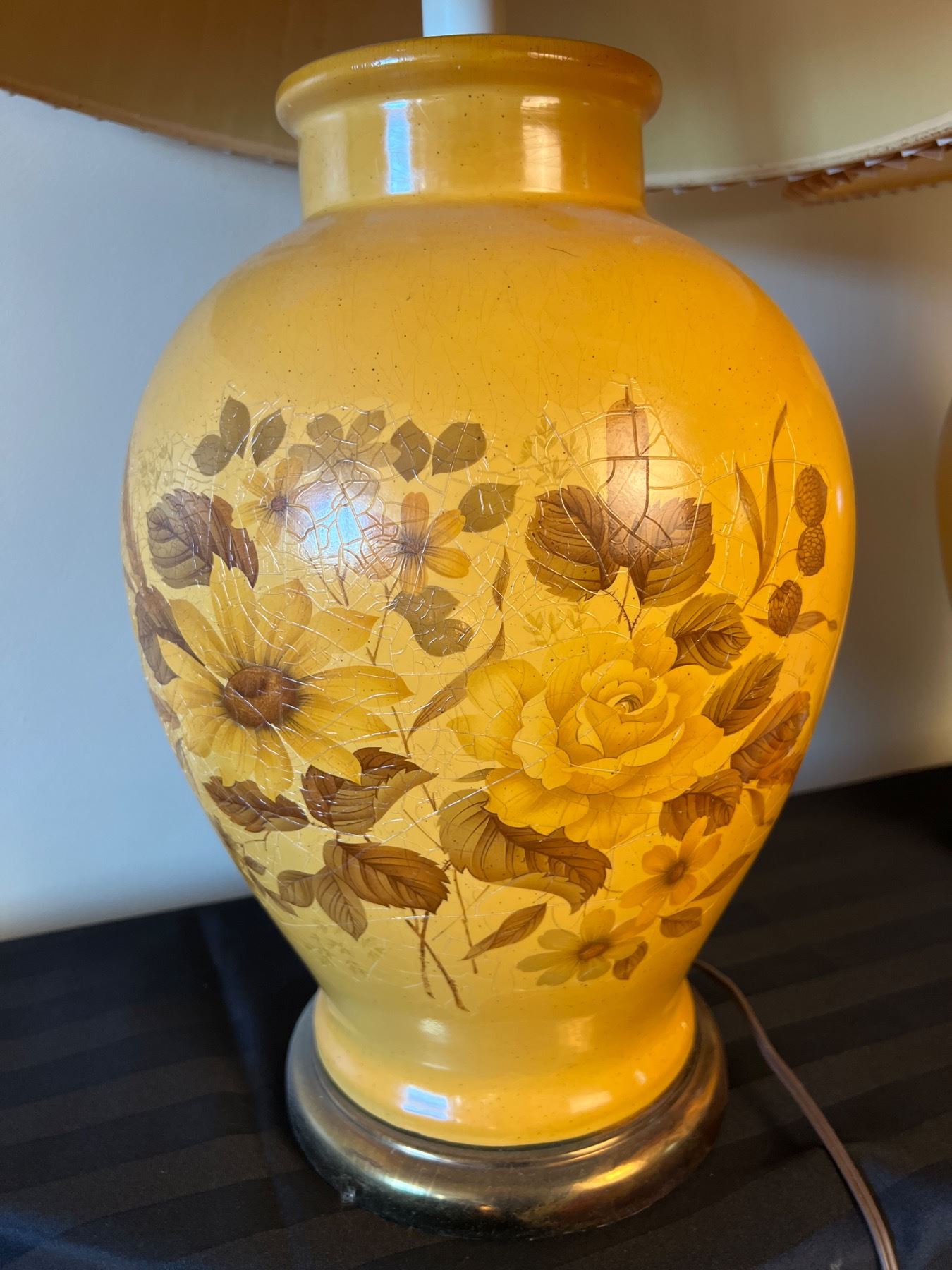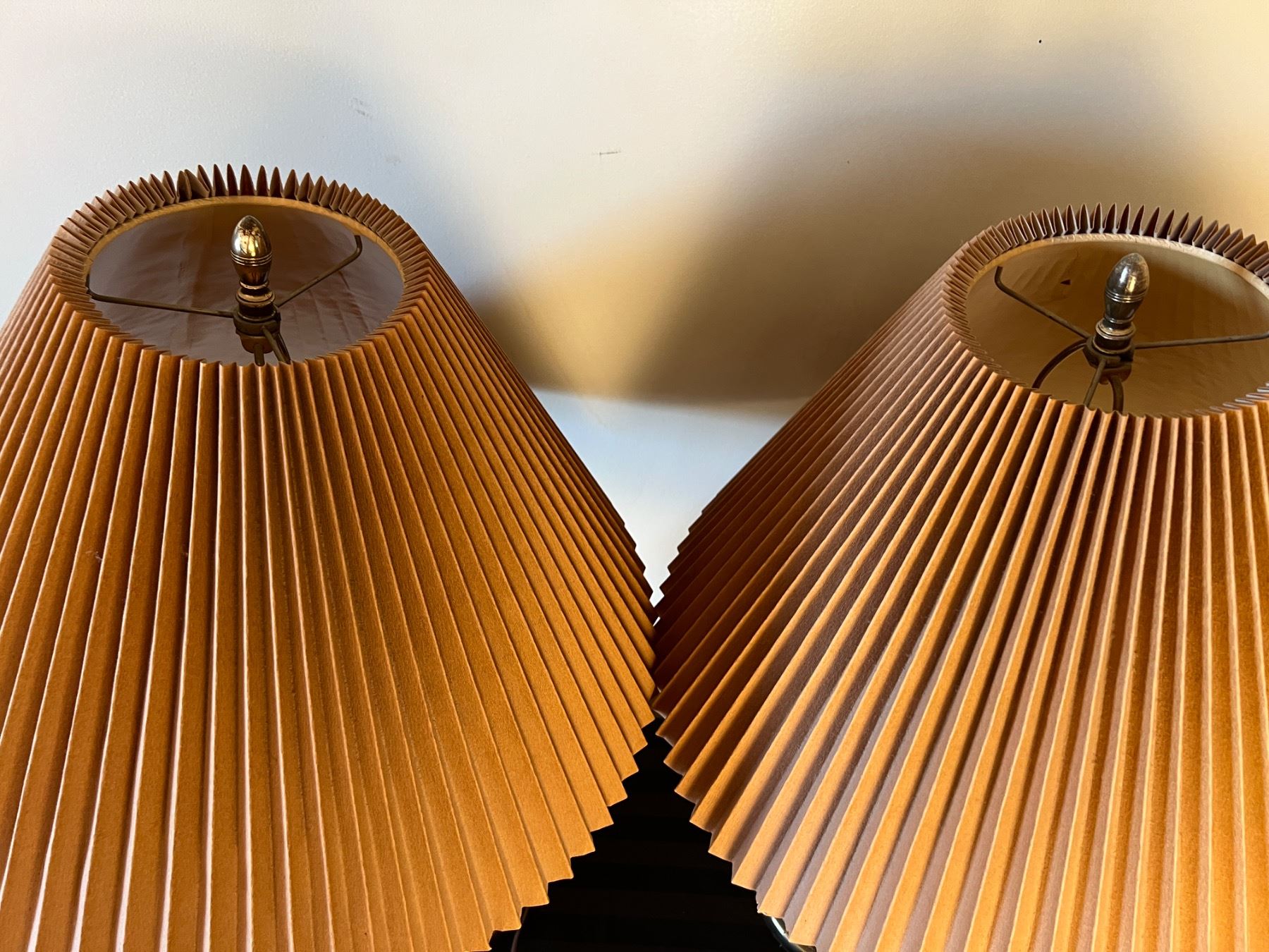 29"H x 20"W, one lamp is working but the knob is broken off, the other lamp has a loose switch