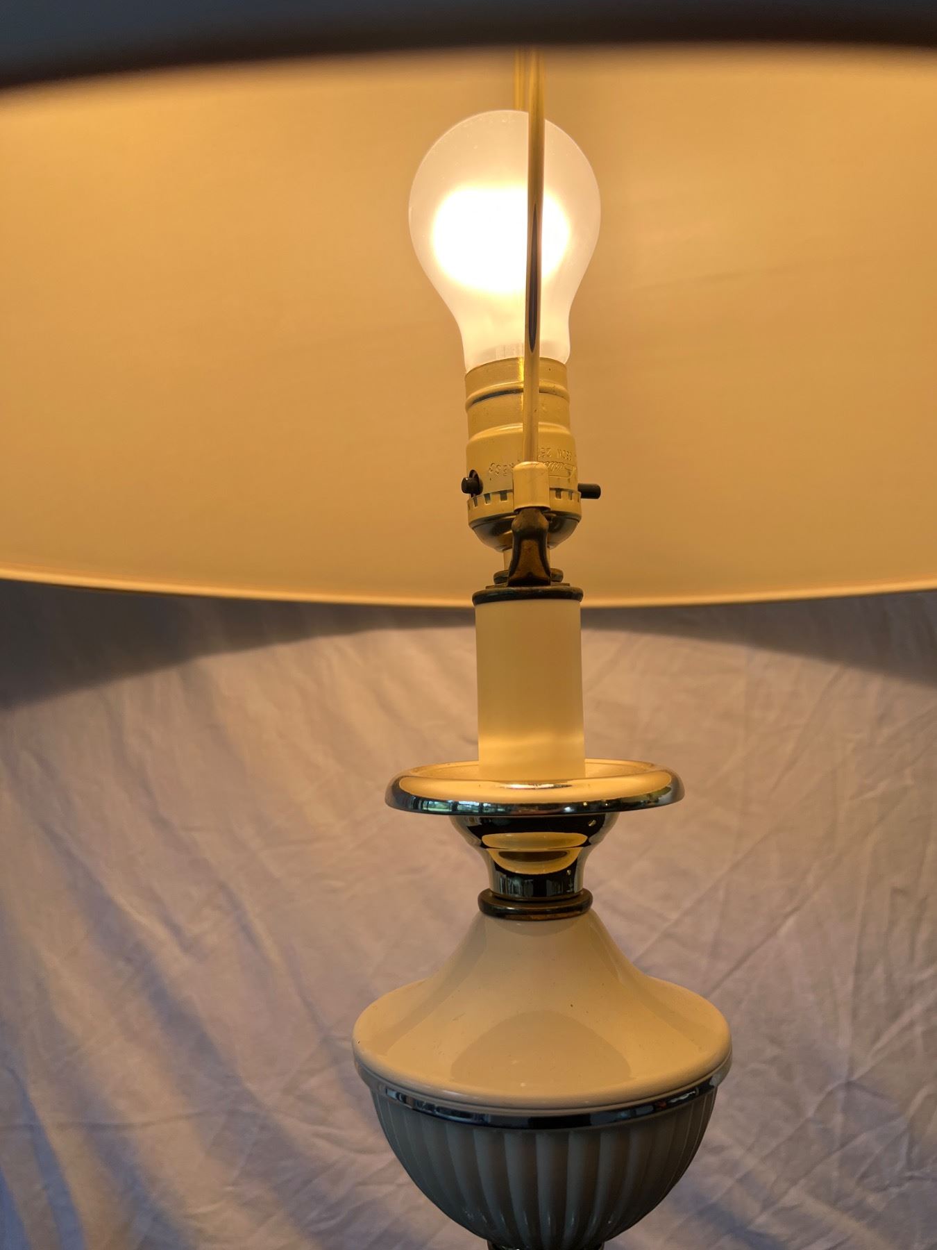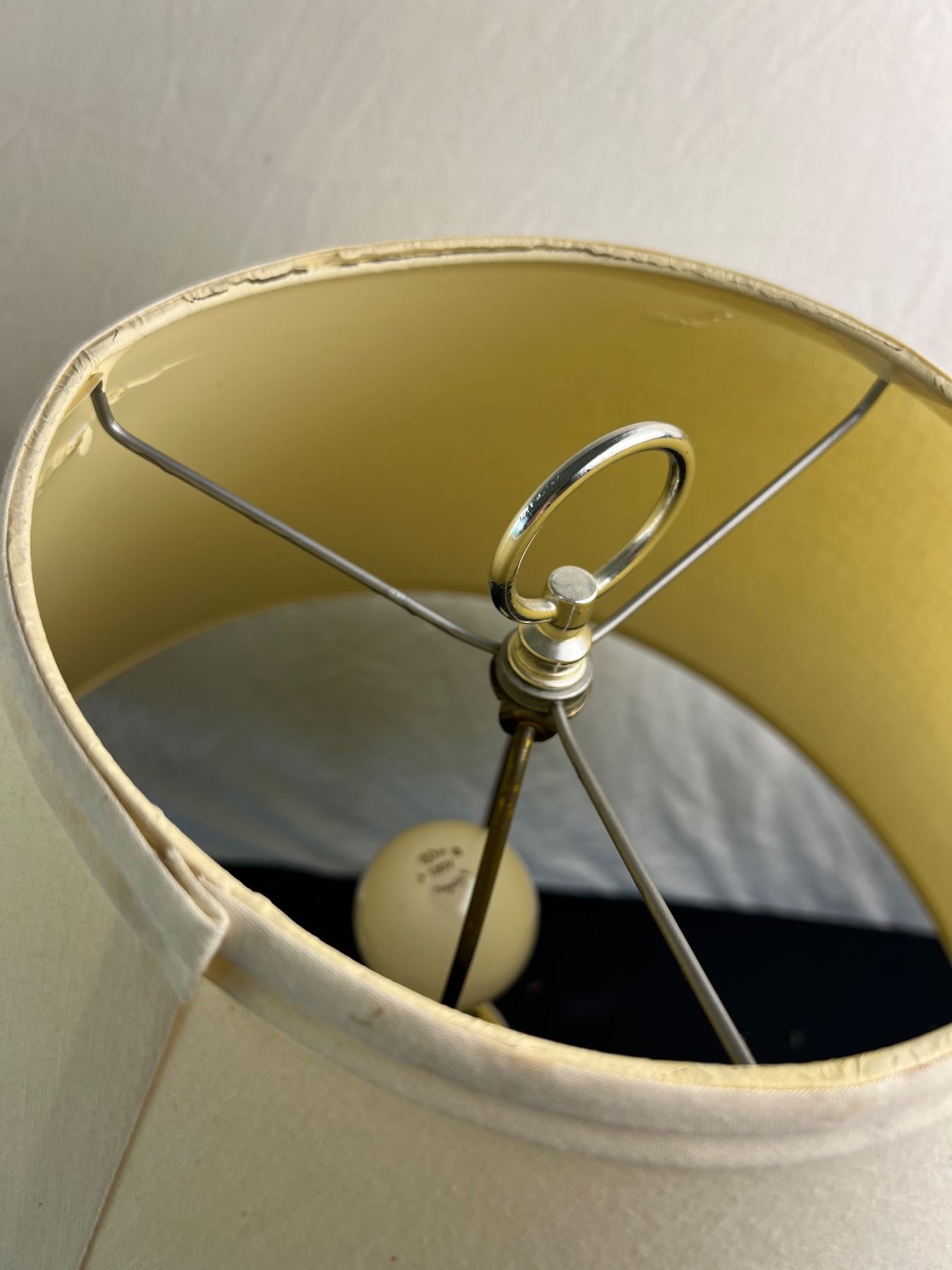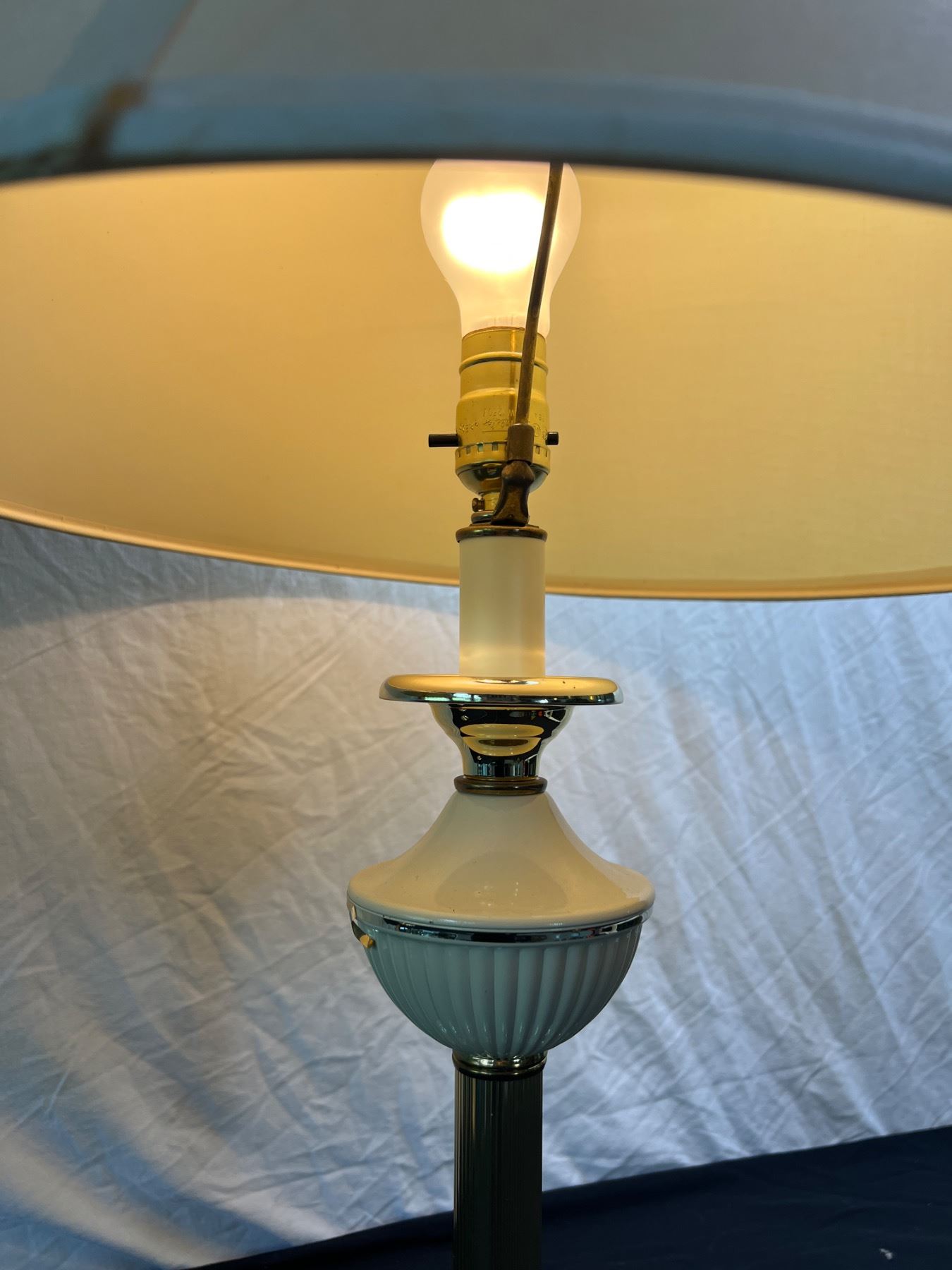 One of the lamp shades is cracked along the top and has a stain spot, both are in working condition, Each one is 28"H