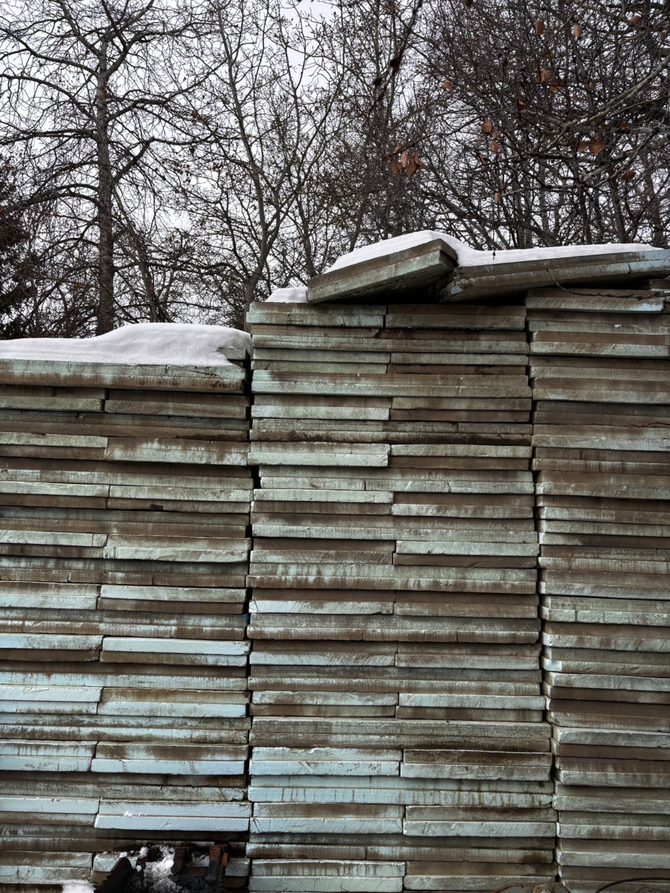 Has been stored outside, 2"thick, aproximately 20 pallets **winning bidder must bring their own equipment for removal**
