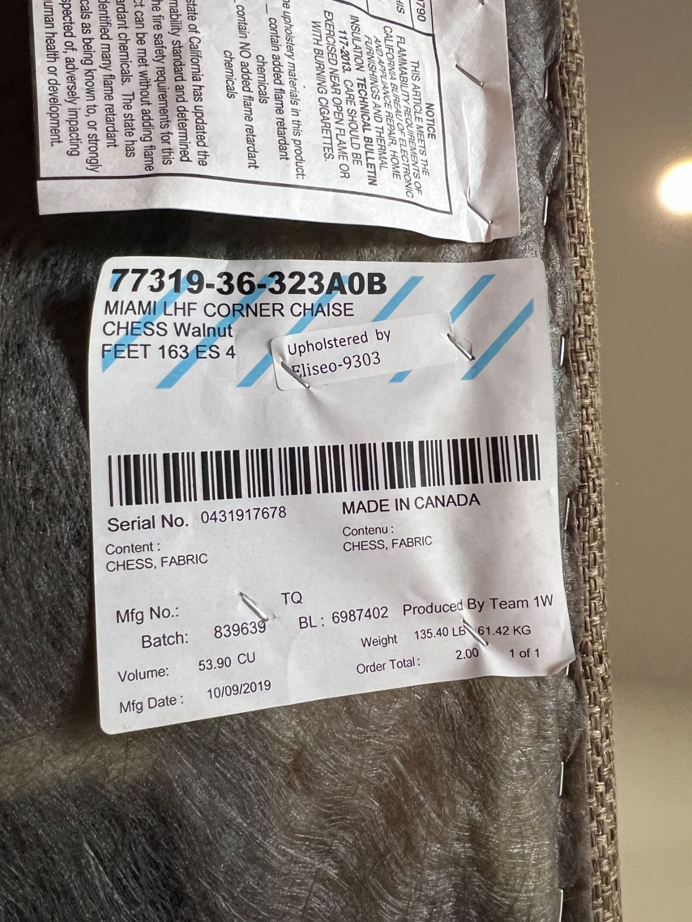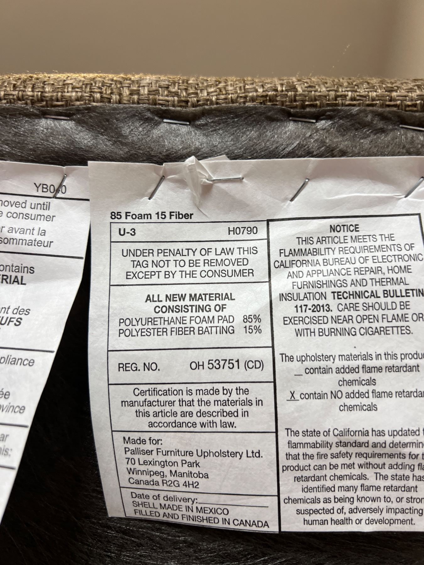 Some frayed seams on the upholstery