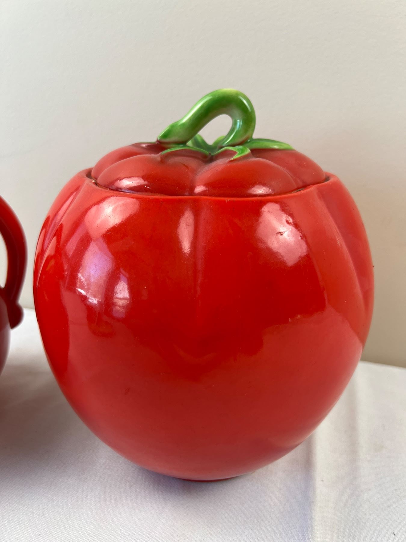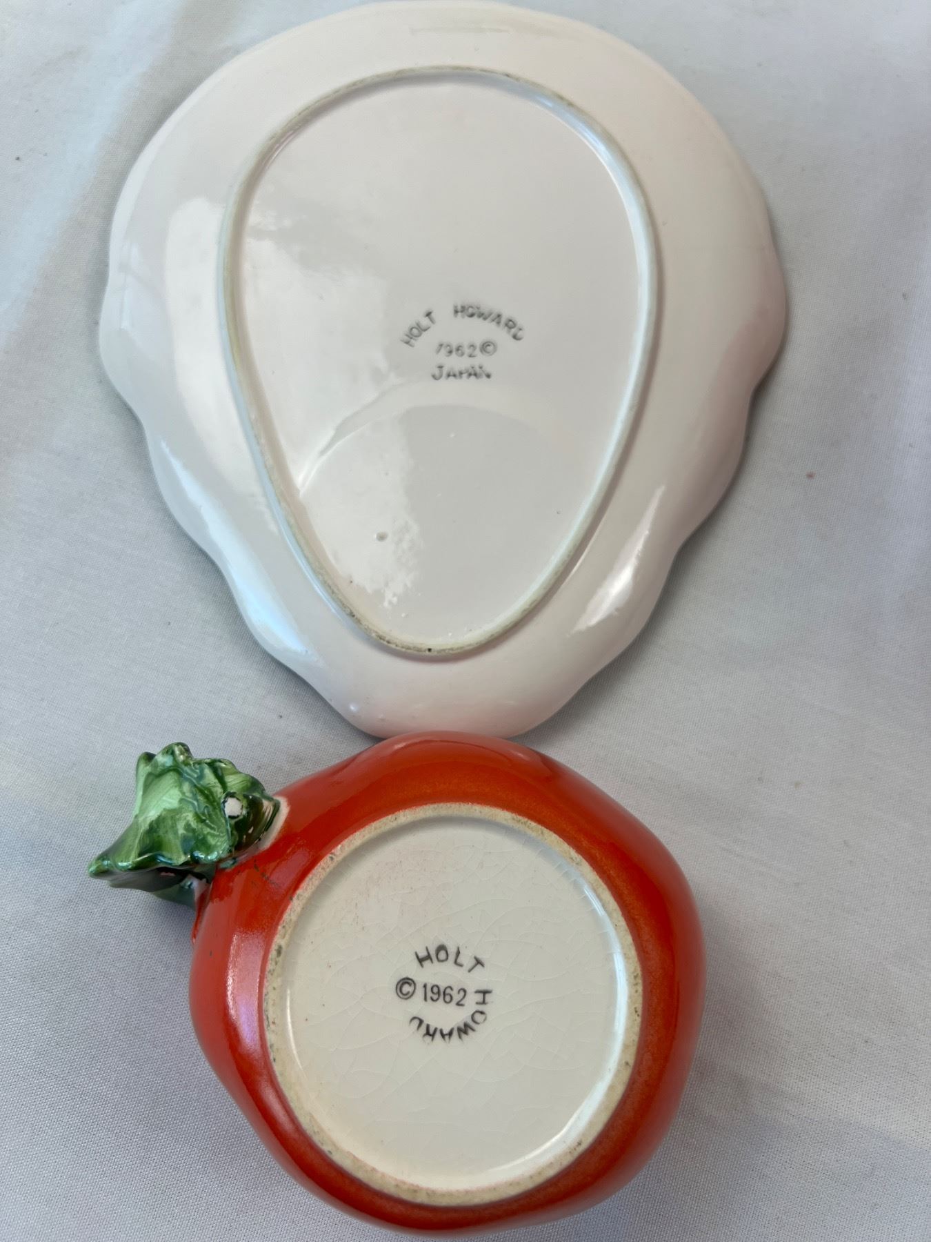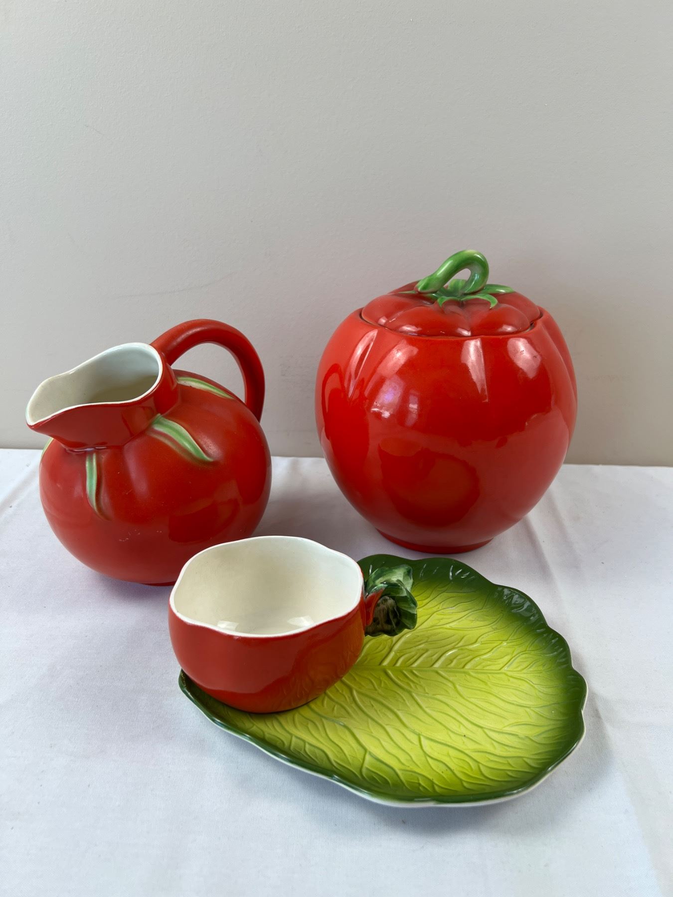 Large (fruit or vegetable you decide) measures 9" tall. Some crazing on some piece.
