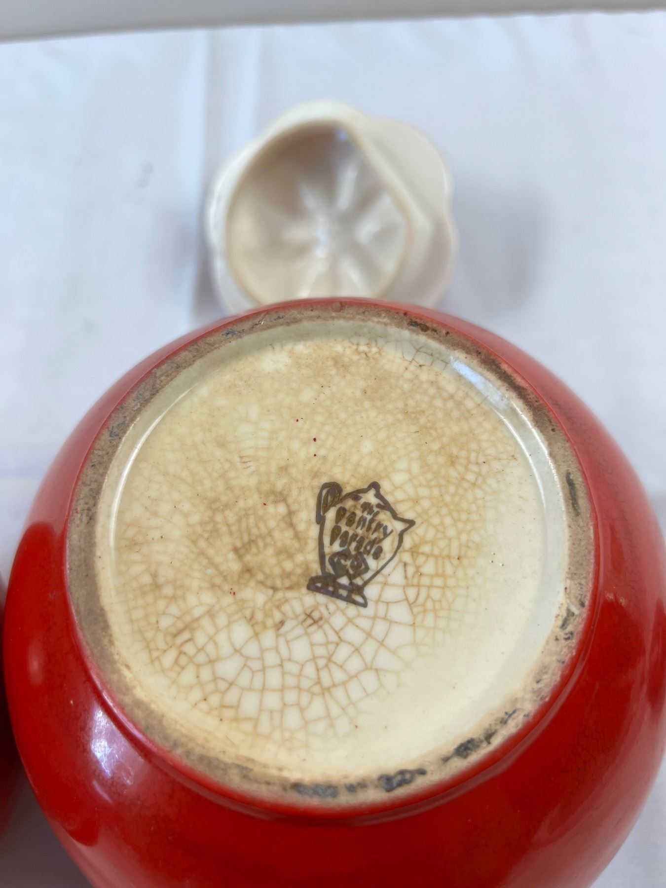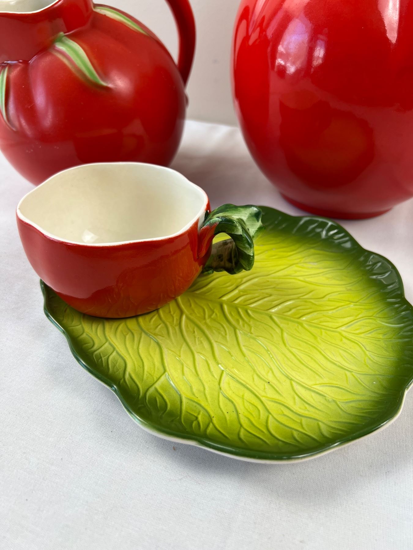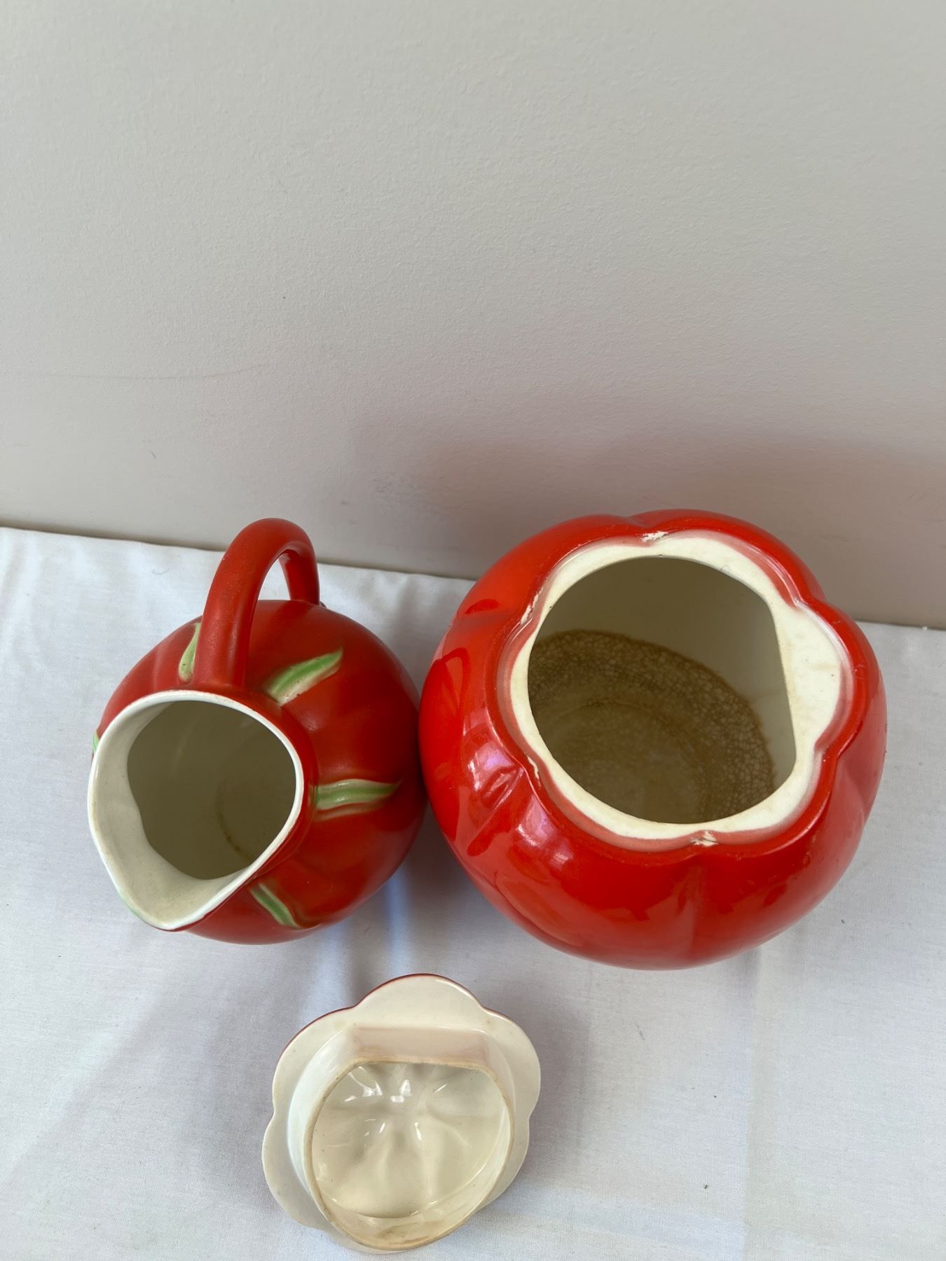Large (fruit or vegetable you decide) measures 9" tall. Some crazing on some piece.