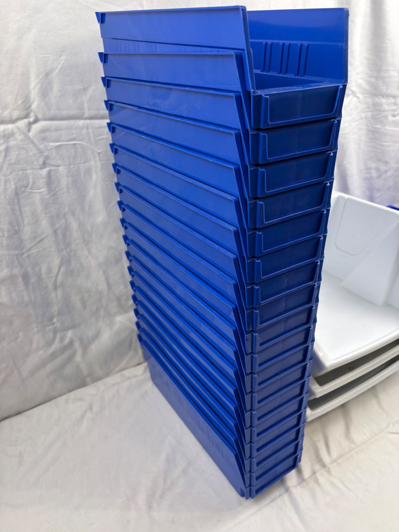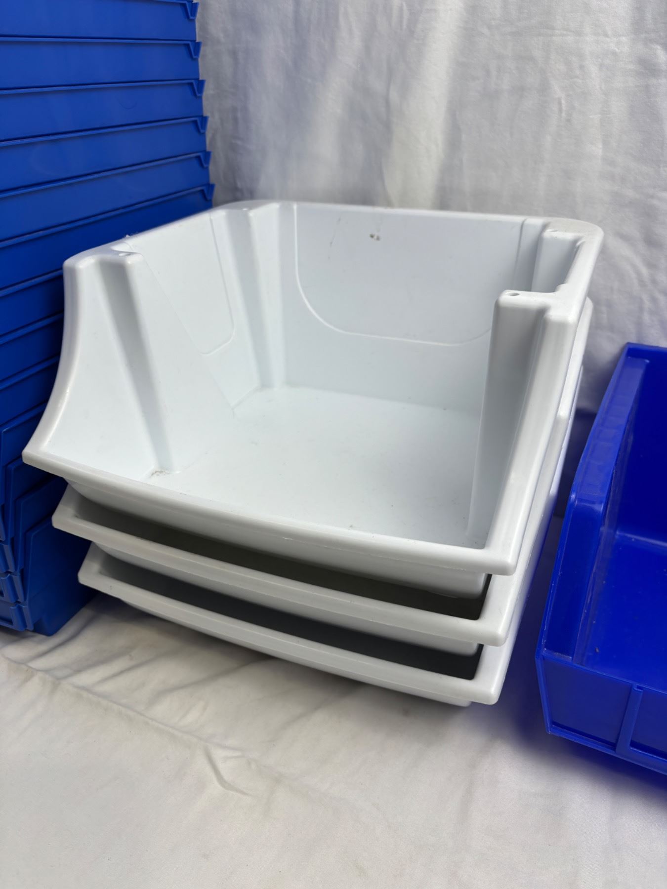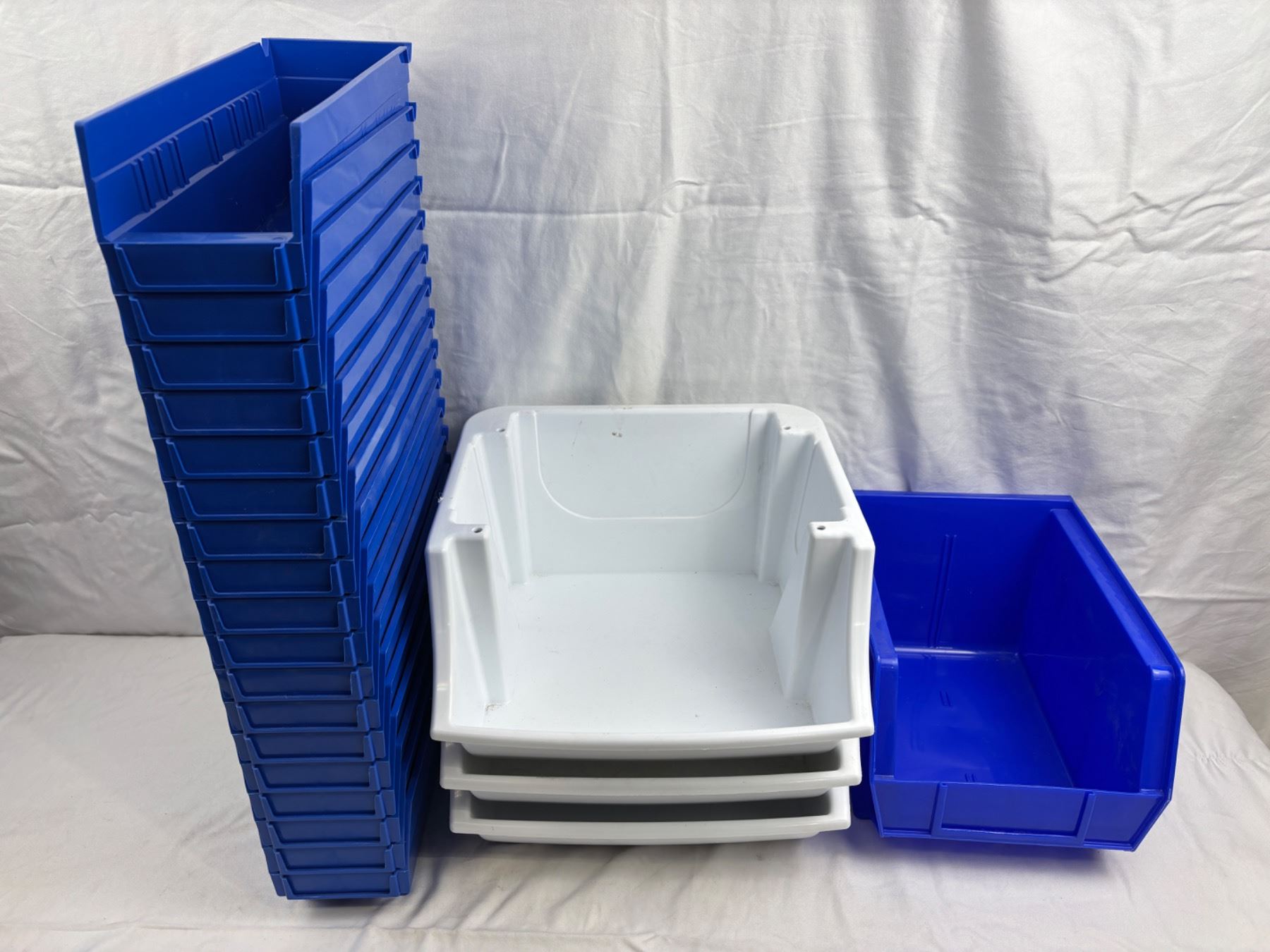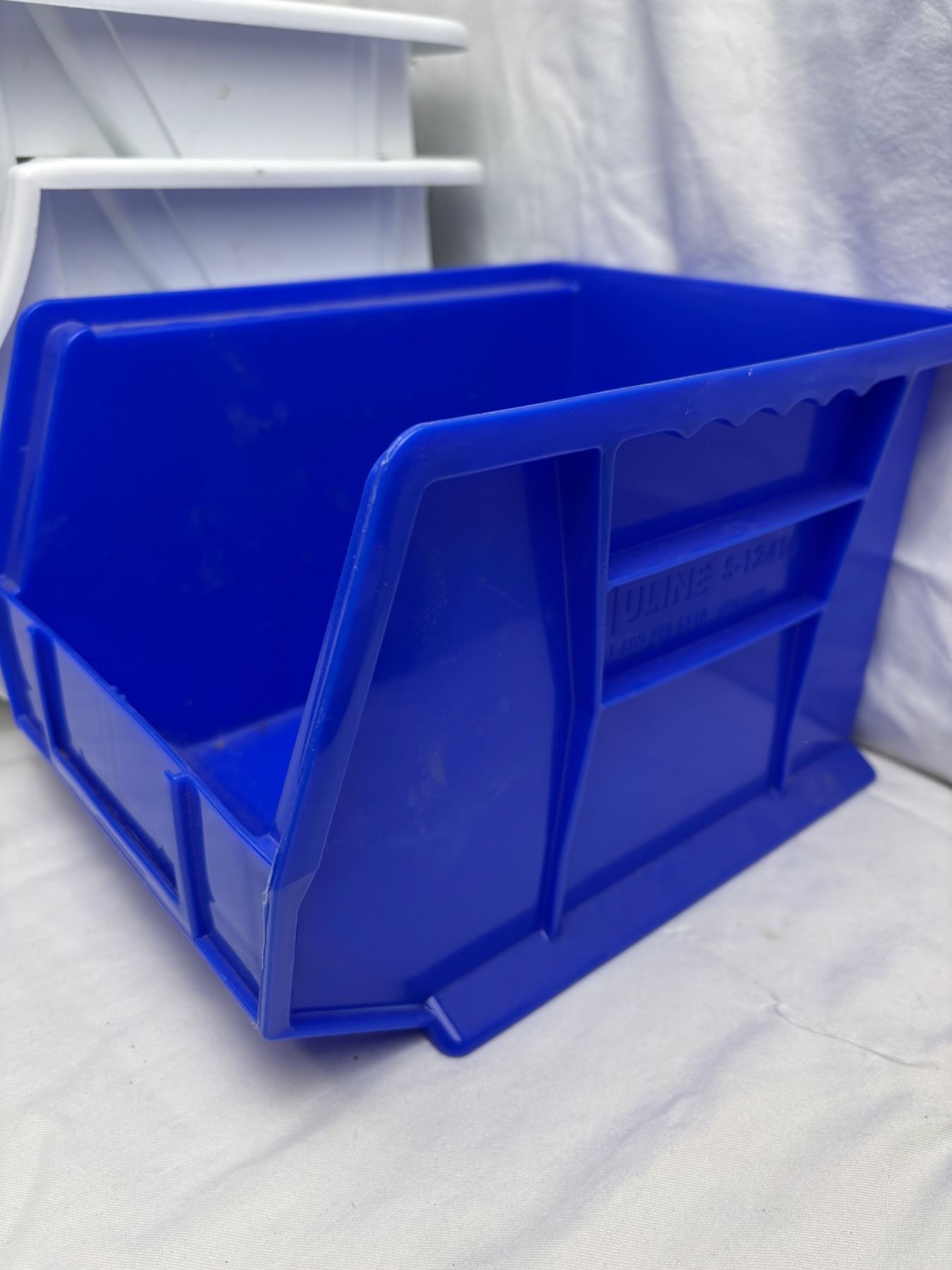 The Blue Uline bin is 11"L x 9"W x 7"H