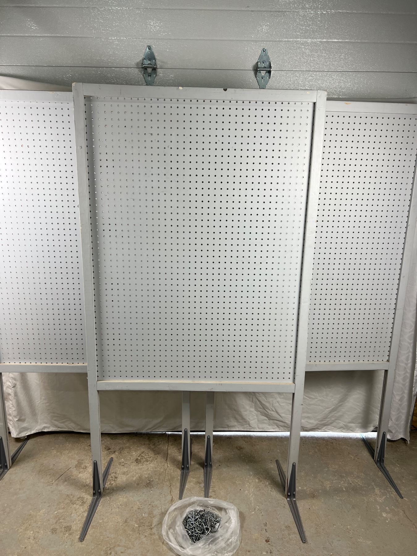 Some chips and wear, includes some metal pegs, each one measures 38.5"L x 21"W x 72"H