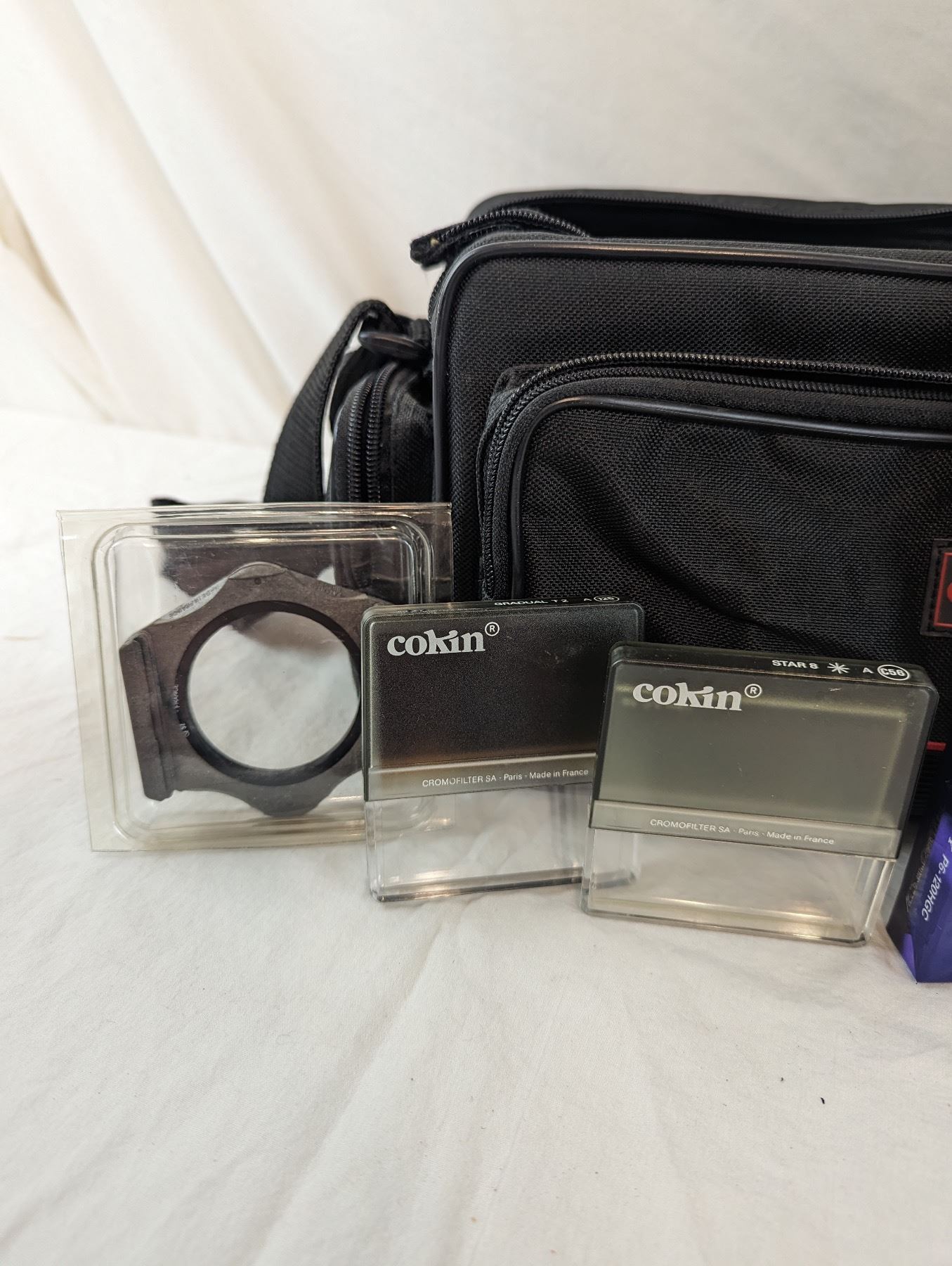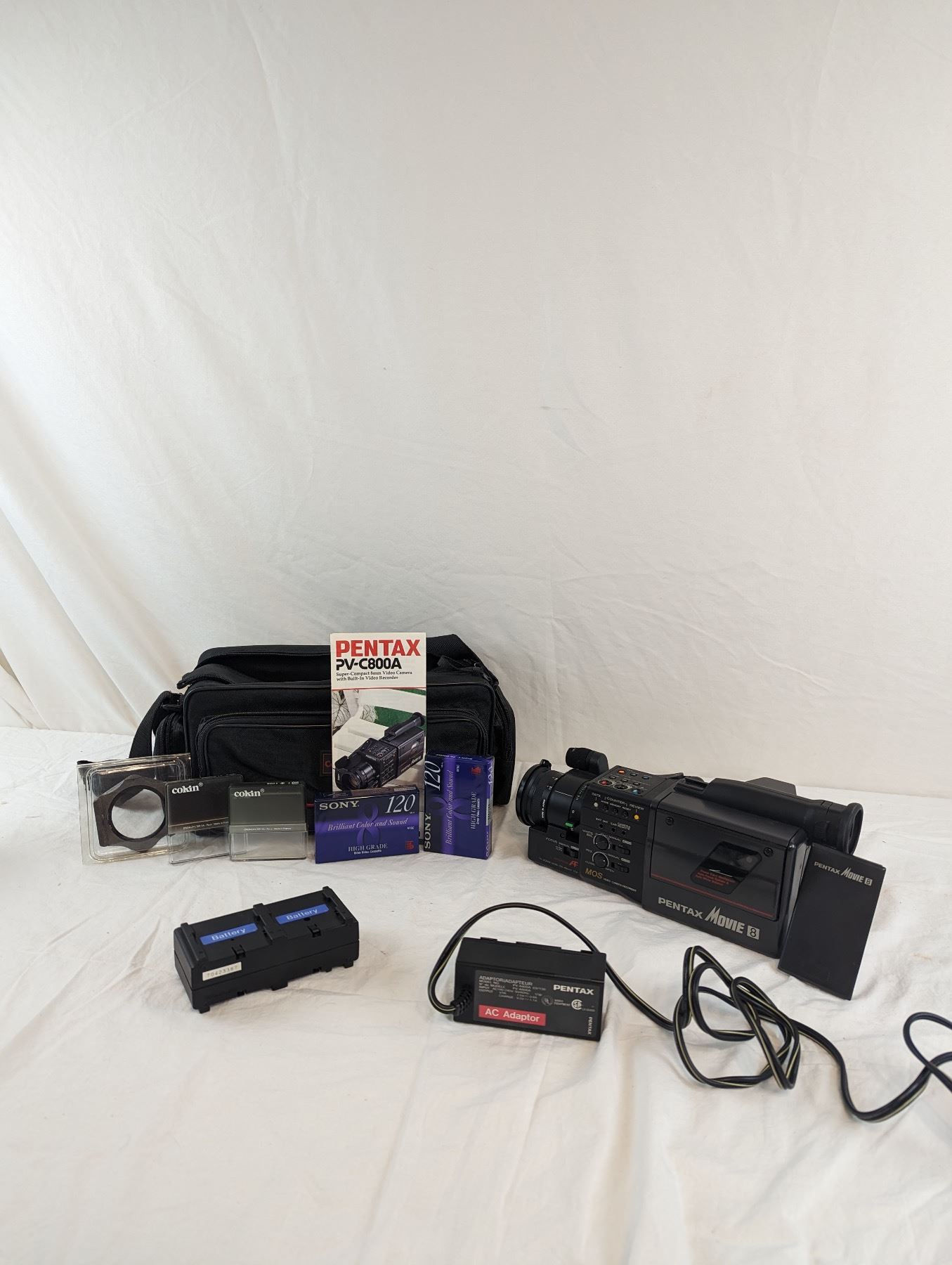 Includes Pentax video camera, battery, chargers, two 8mm video cassette tapes, 2 square filters and filter adapter