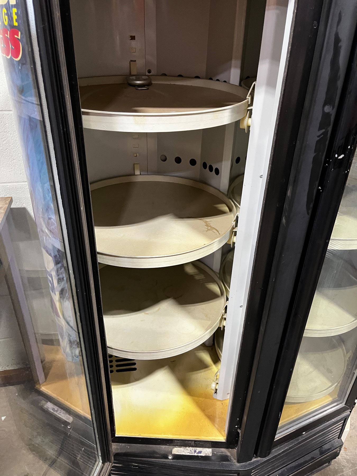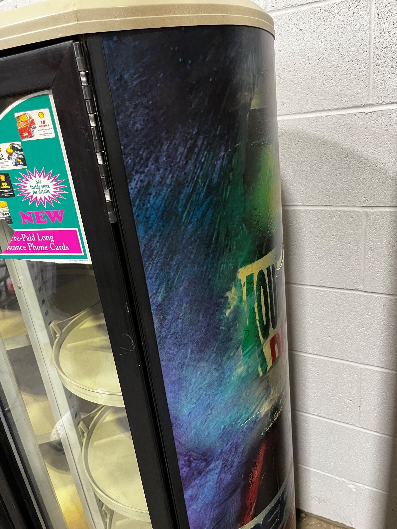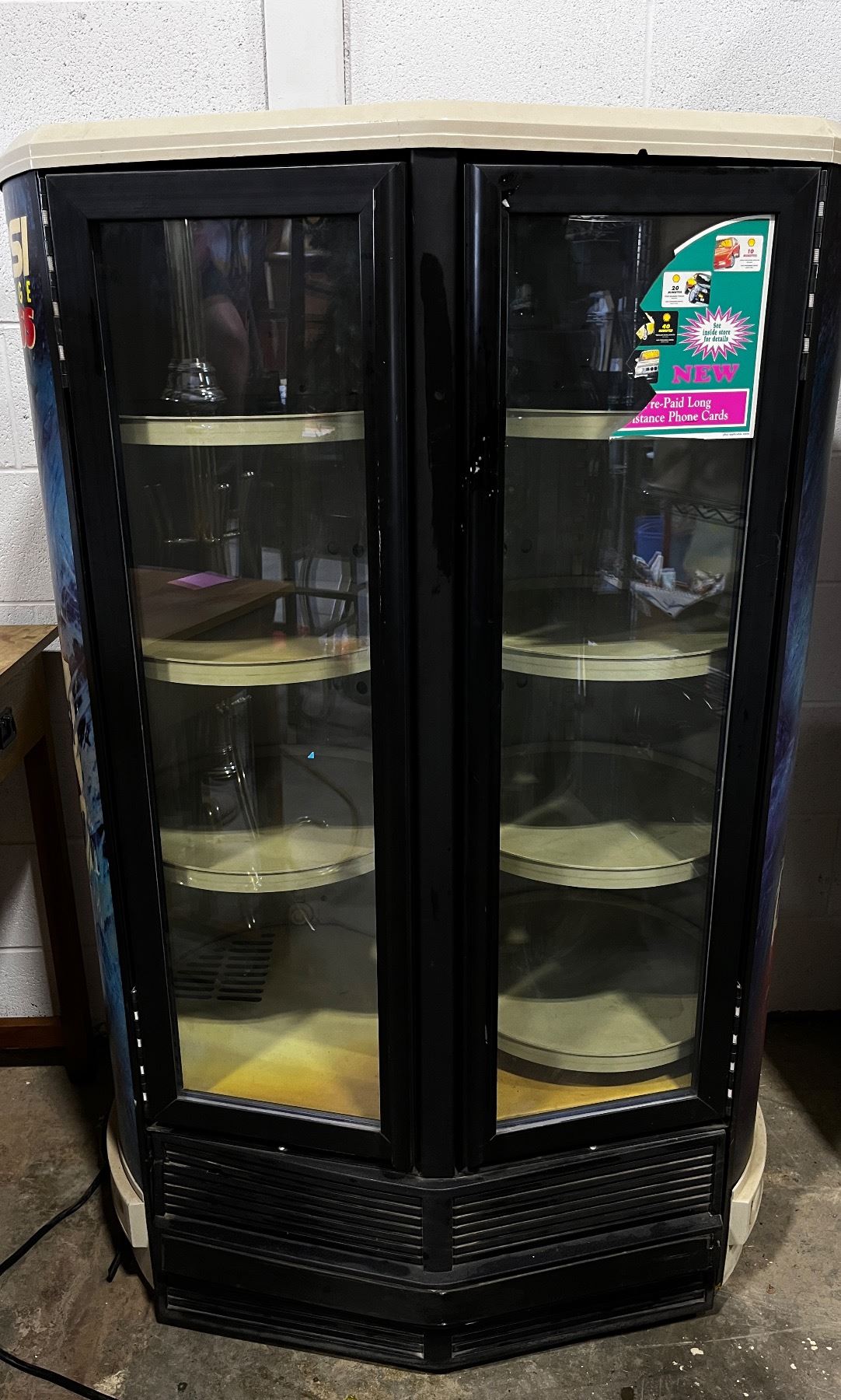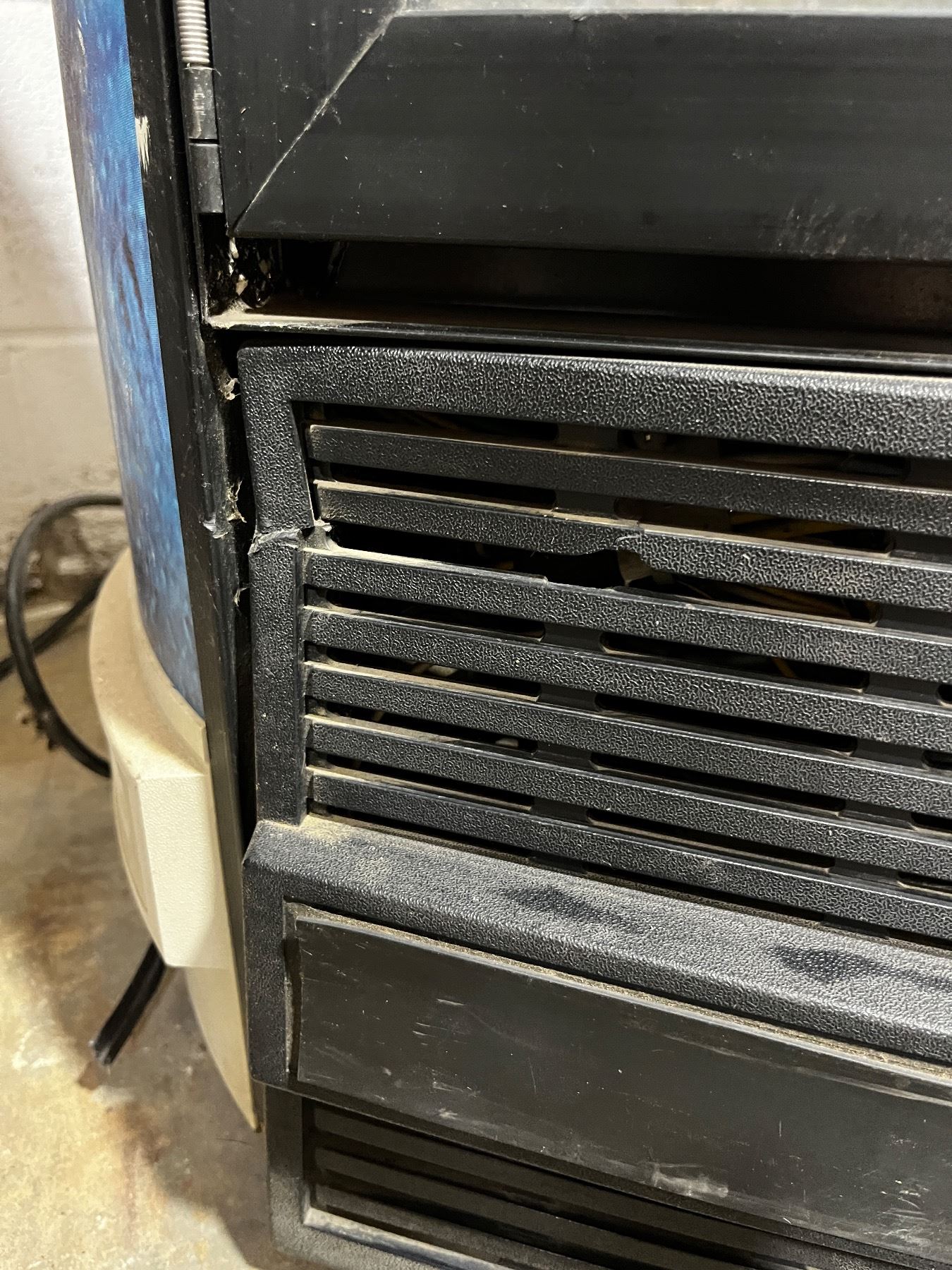 Has some damage and wear, is cracked on the top, in working condition, 35"L x 21"W x 55"H