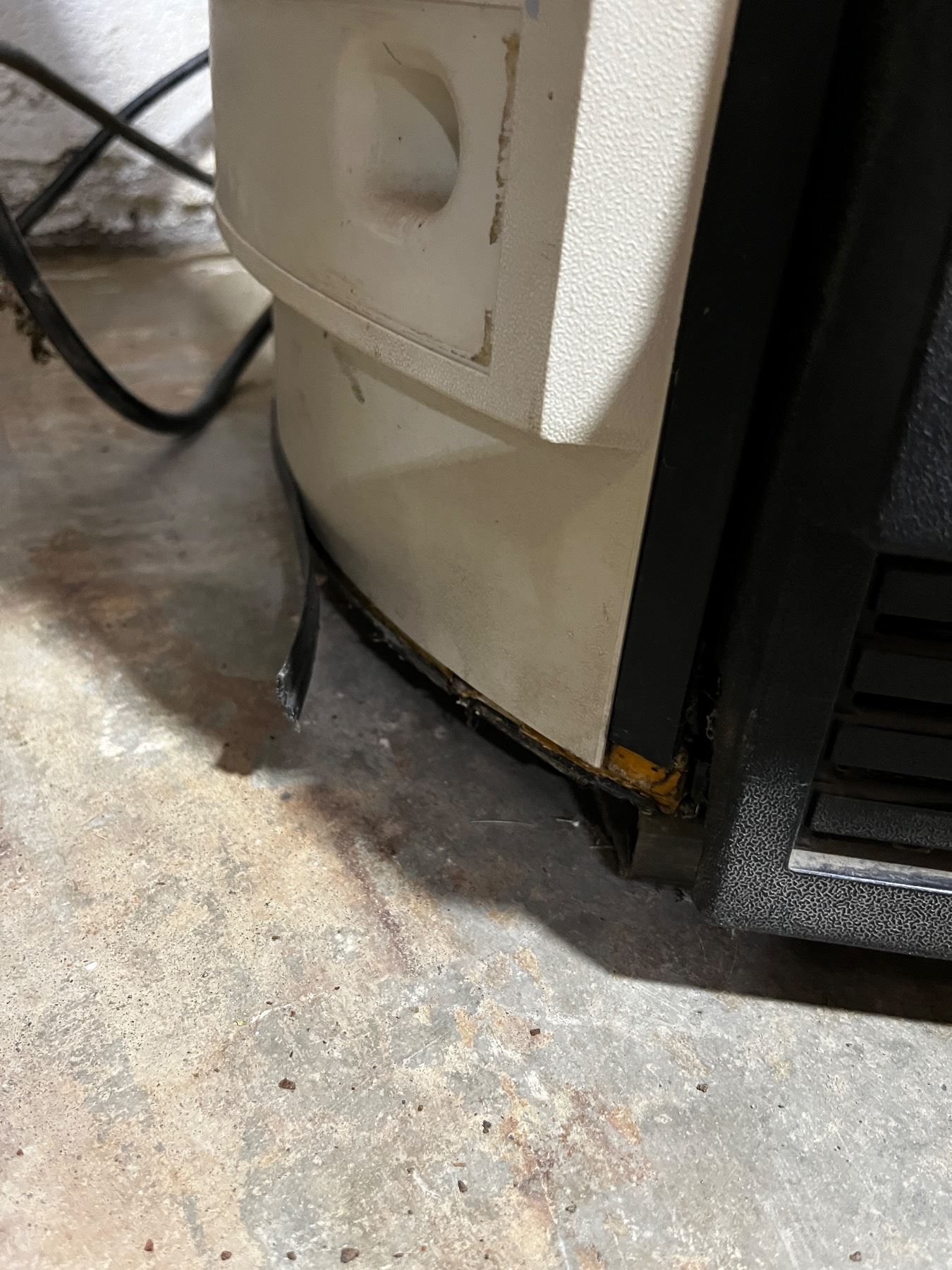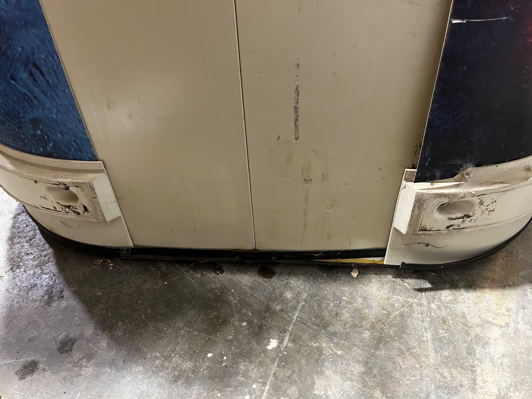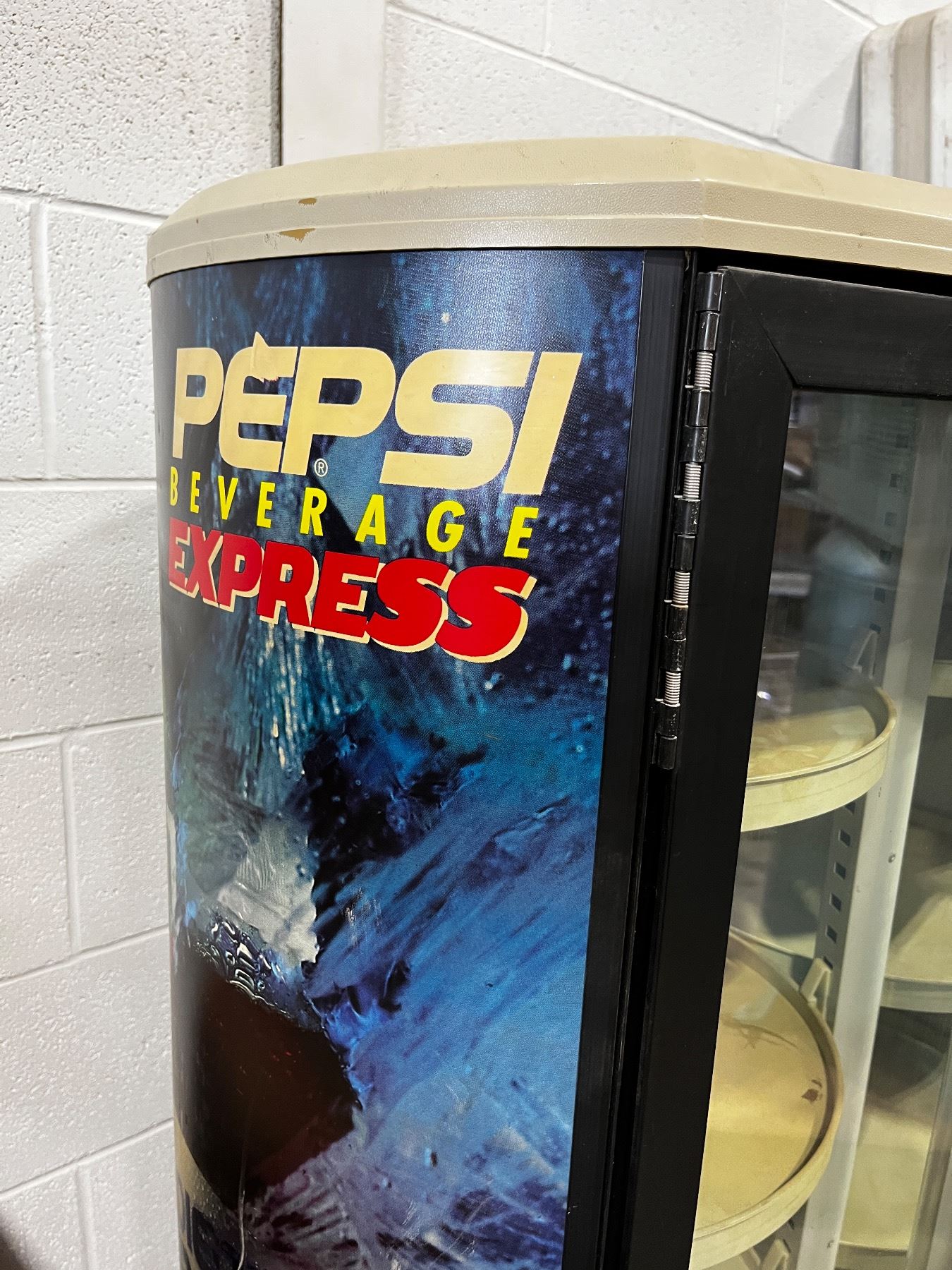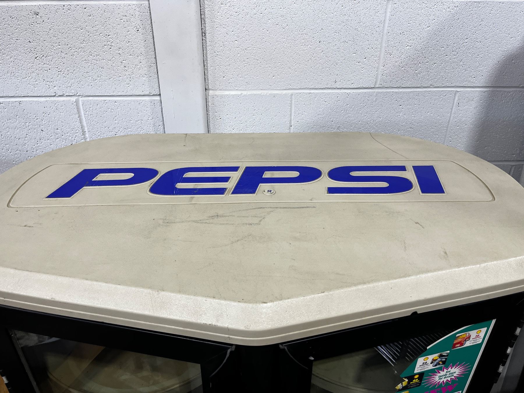 Has some damage and wear, is cracked on the top, in working condition, 35"L x 21"W x 55"H