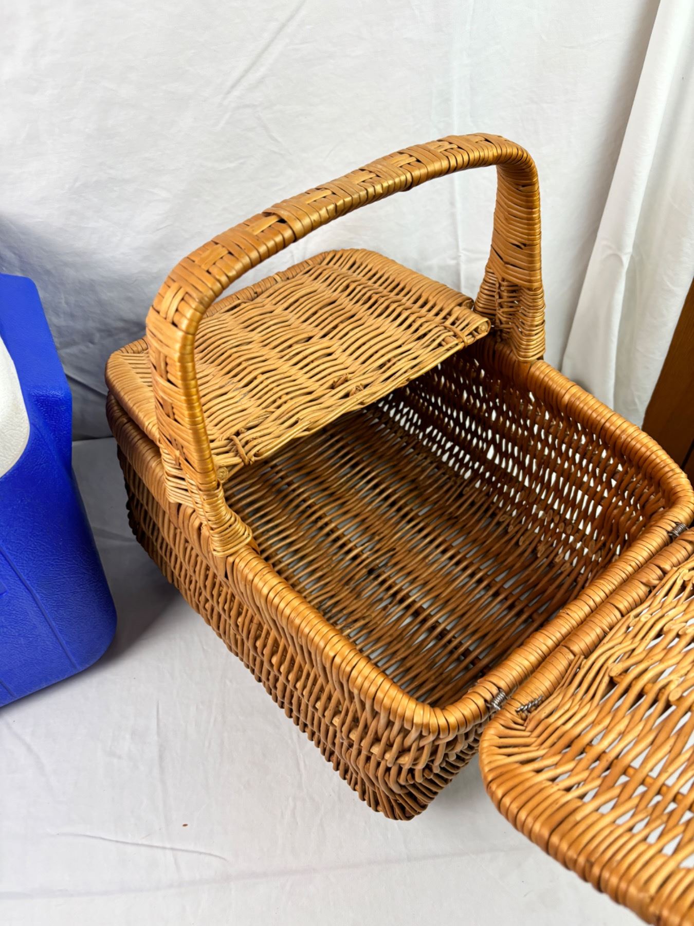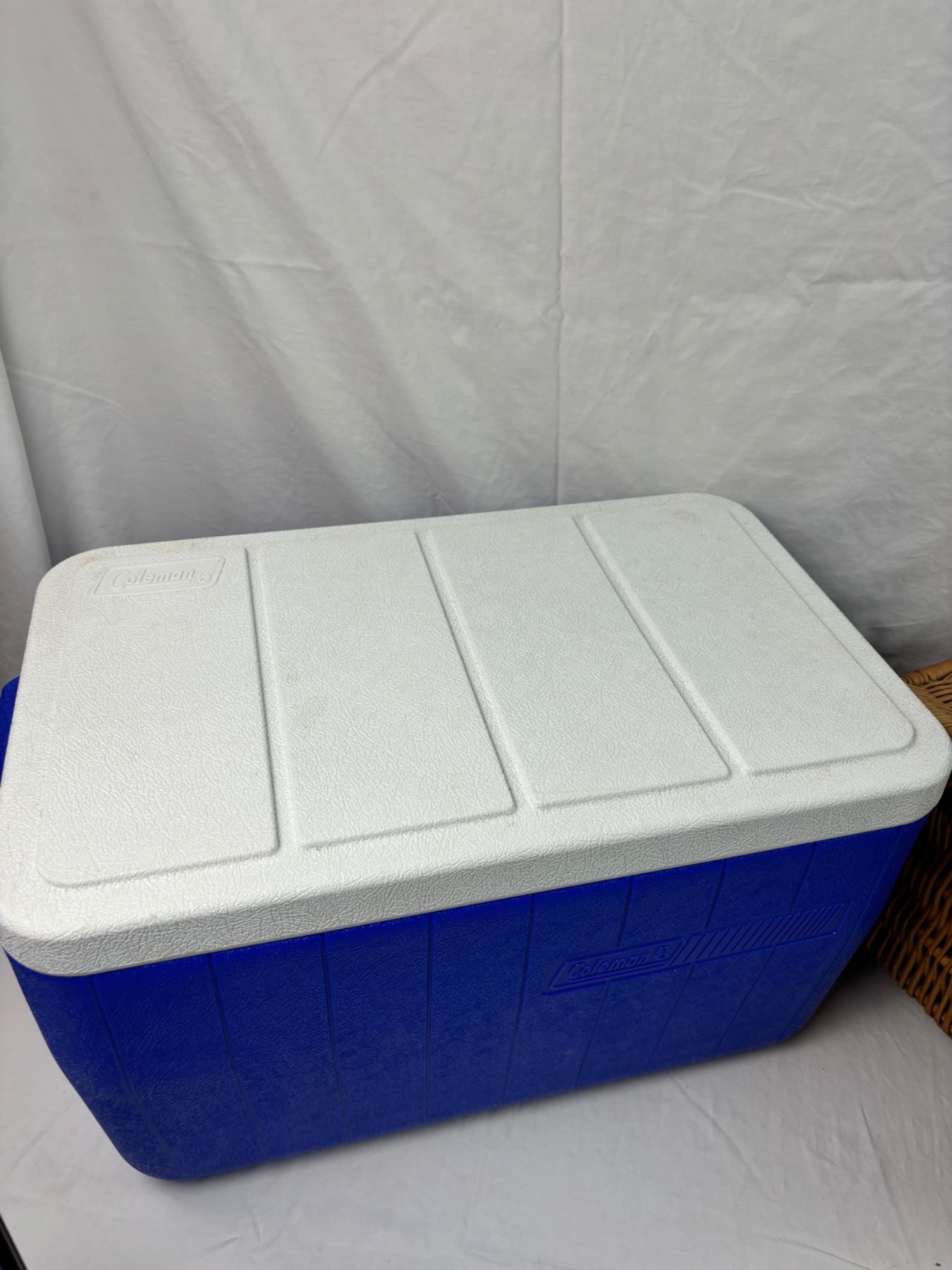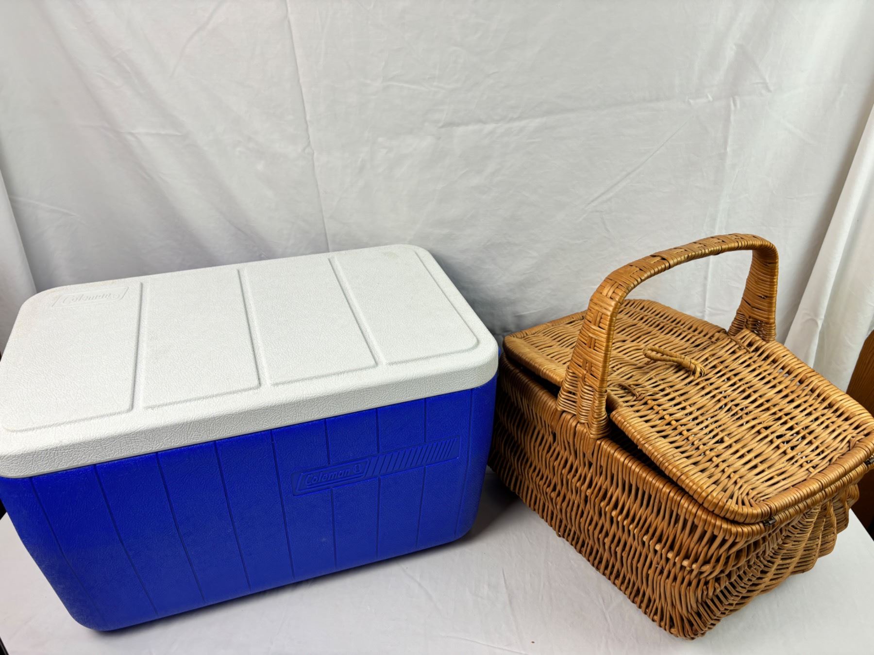 Includes a wicker picnic basket and a Coleman cooler (21"L x 13"W x 13"H)