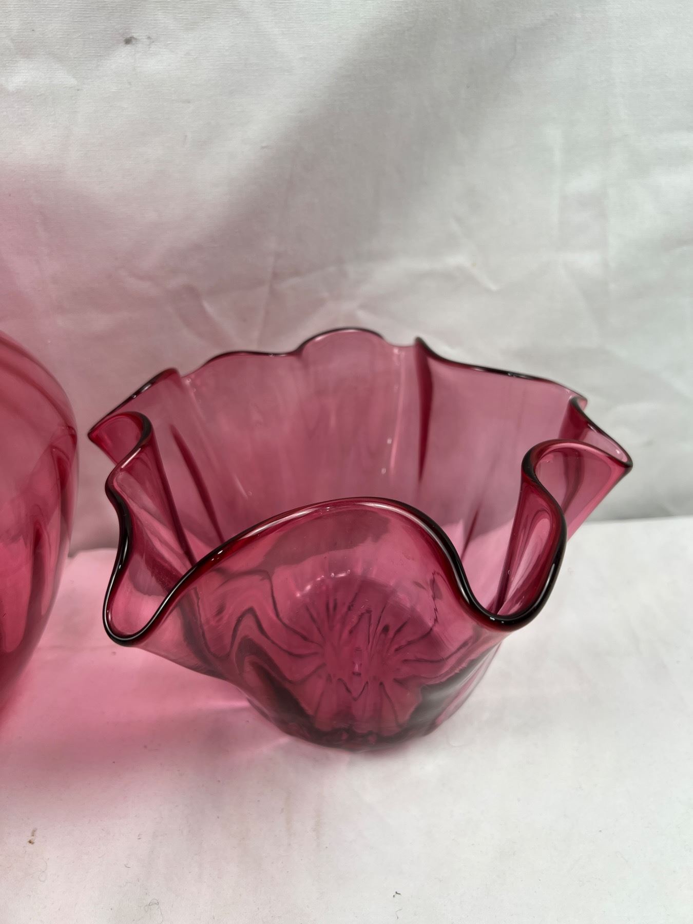 Bowl and vase. Bowl has very clear blown markings (Pontil mark & bubbles), vase has bubbles throughout glass. Vase is 10" tall and approximately 7" in diameter.