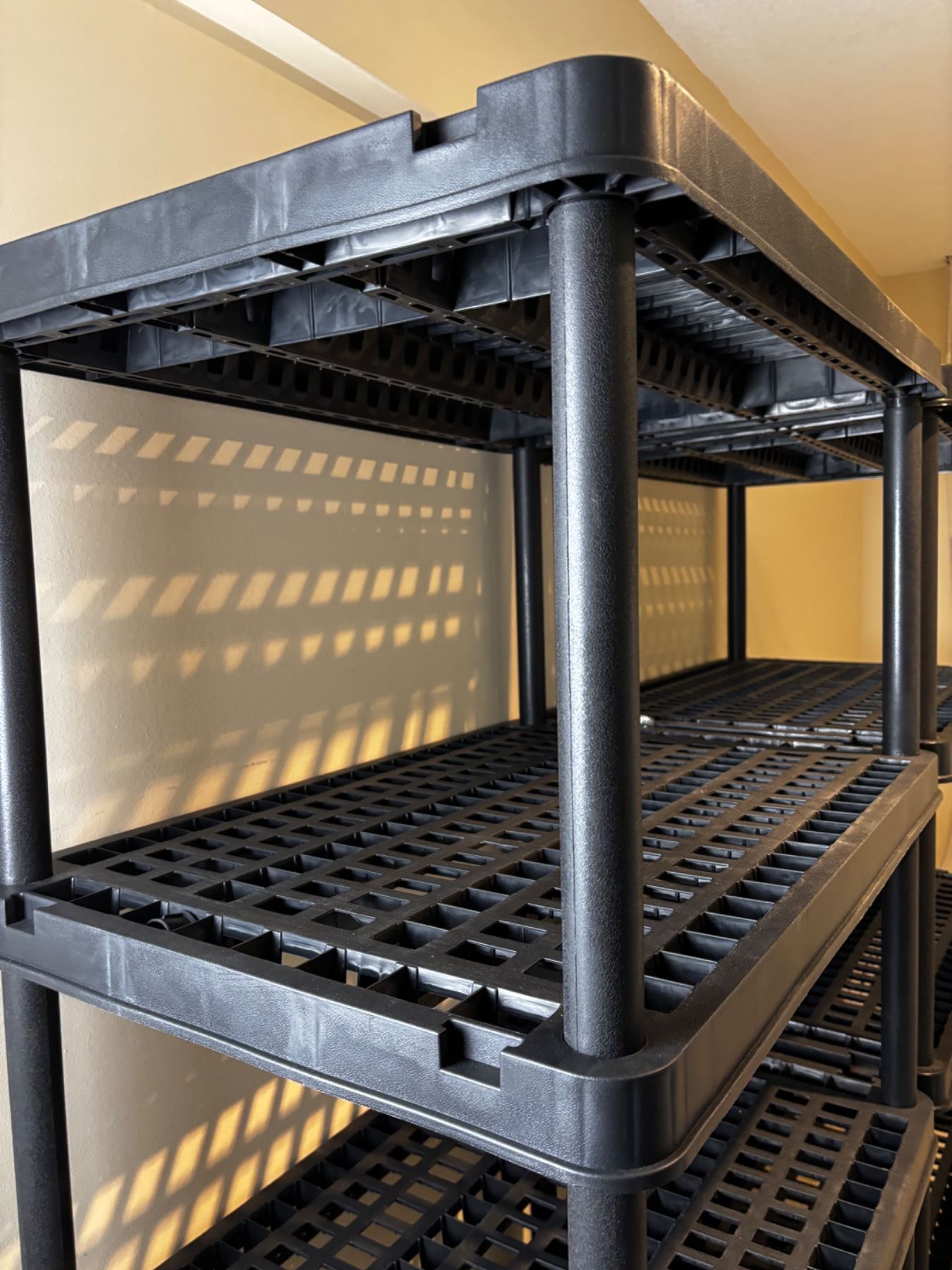 Each one measures 35"L x 24"W x 73"H, includes four wall mounting brackets