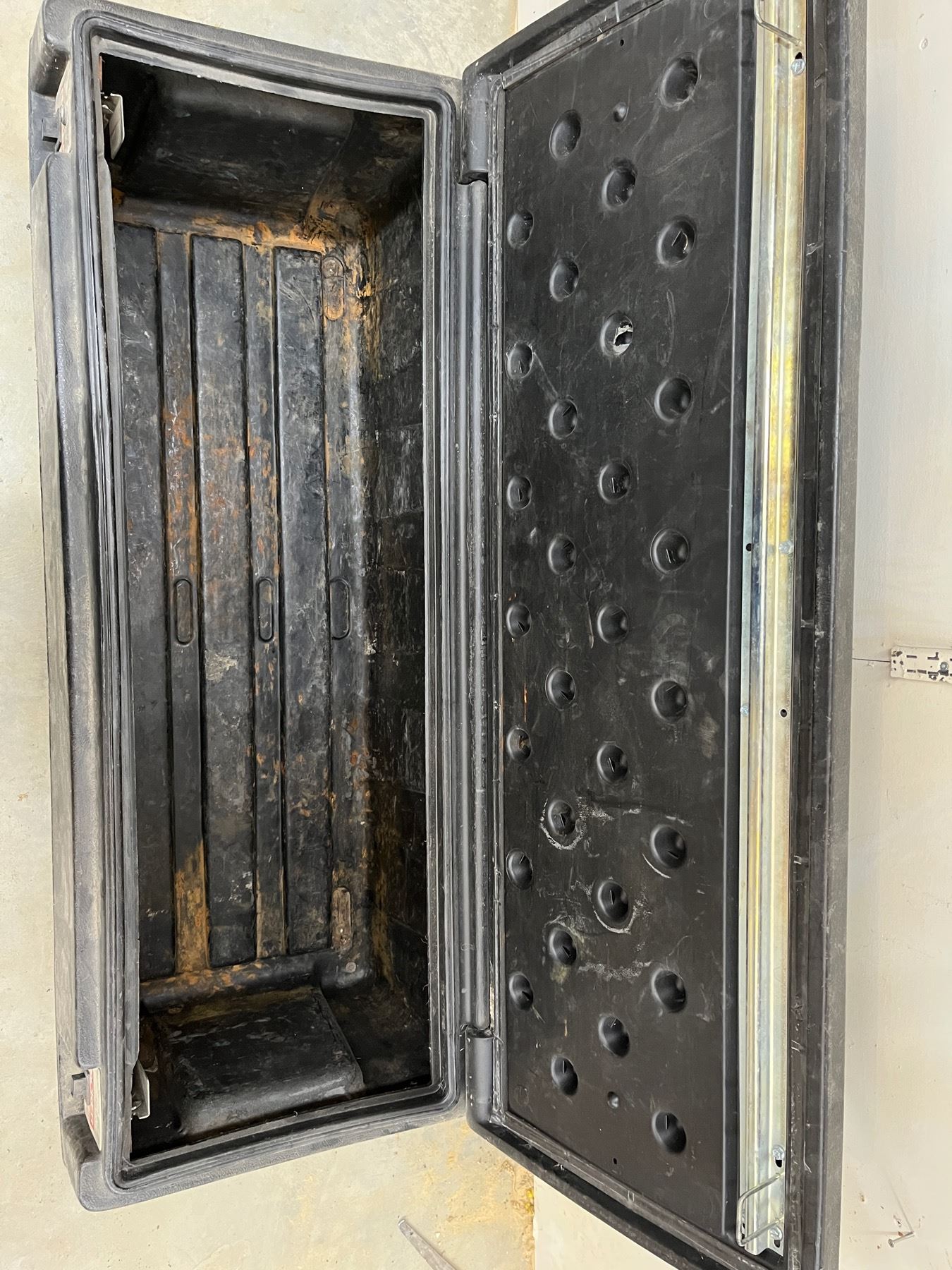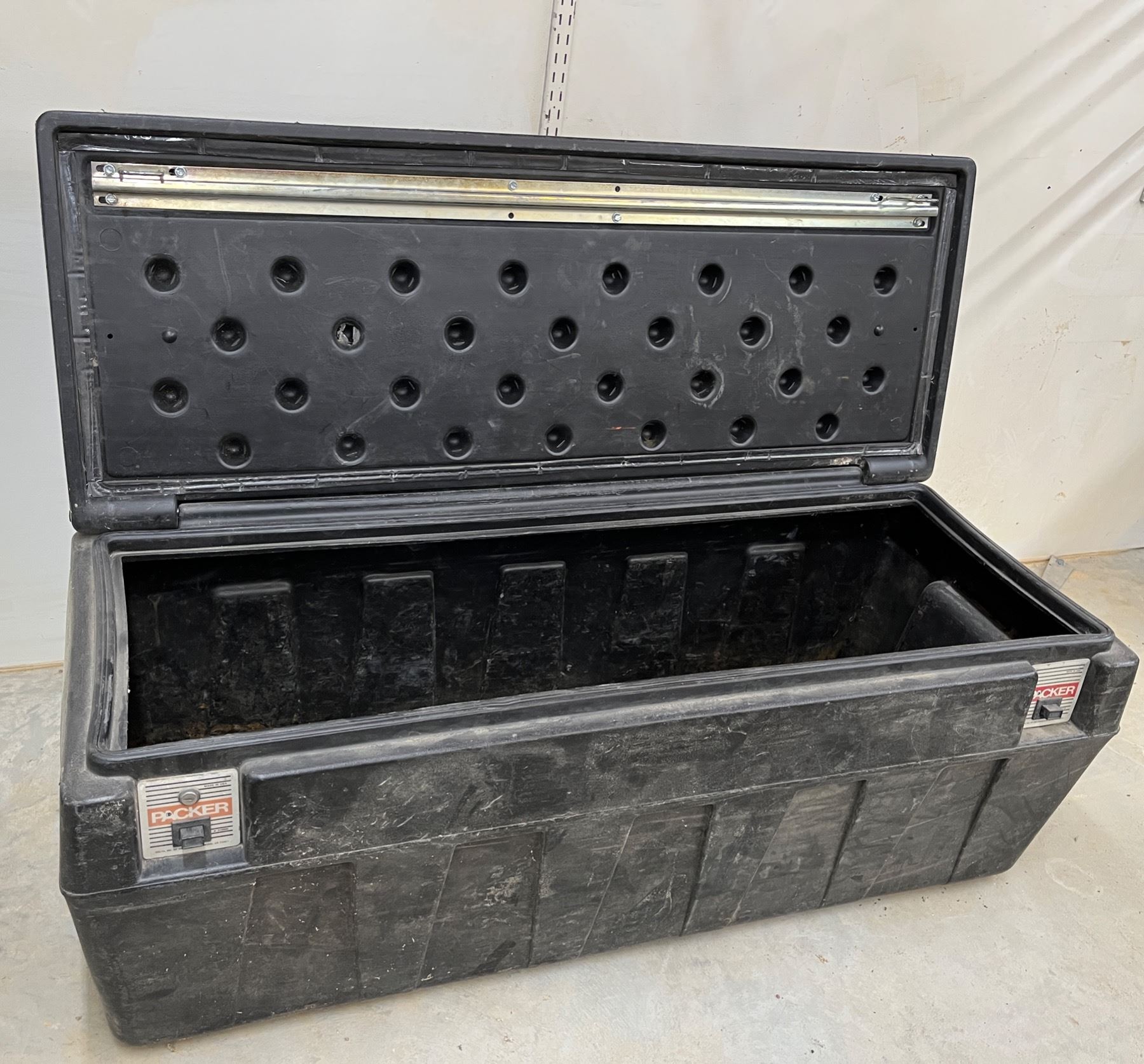 No key - could change lock - 52" long x 20" wide x 19" tall