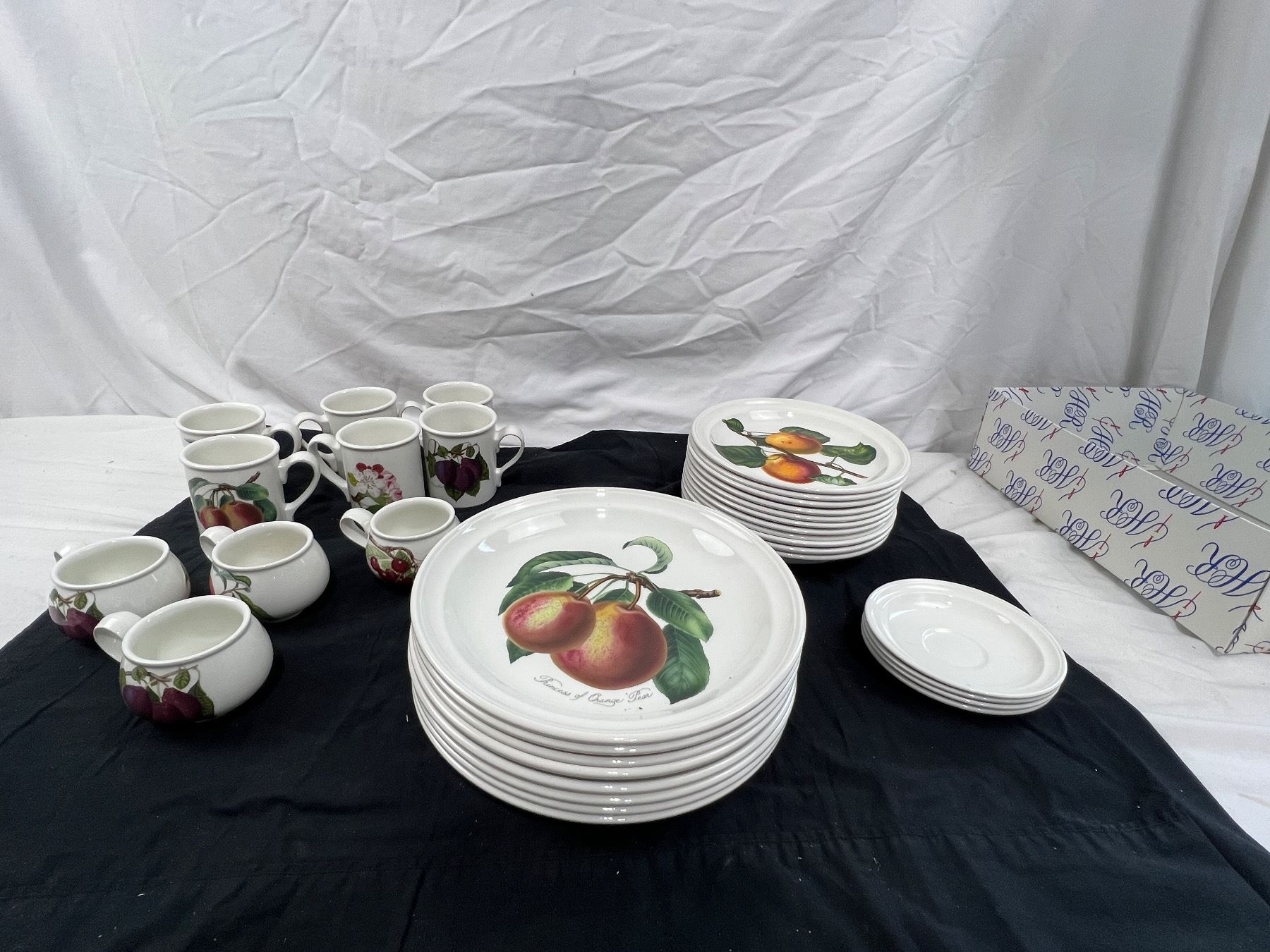 8 large plates, 3 bowls, 4 saucers, 6 coffee cups, 4 cups