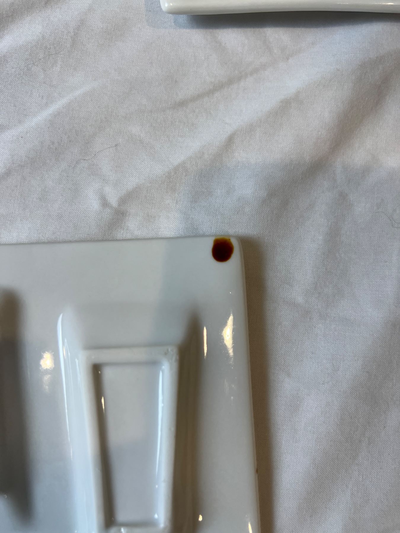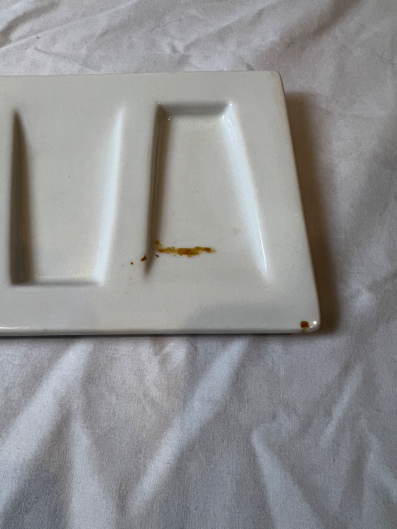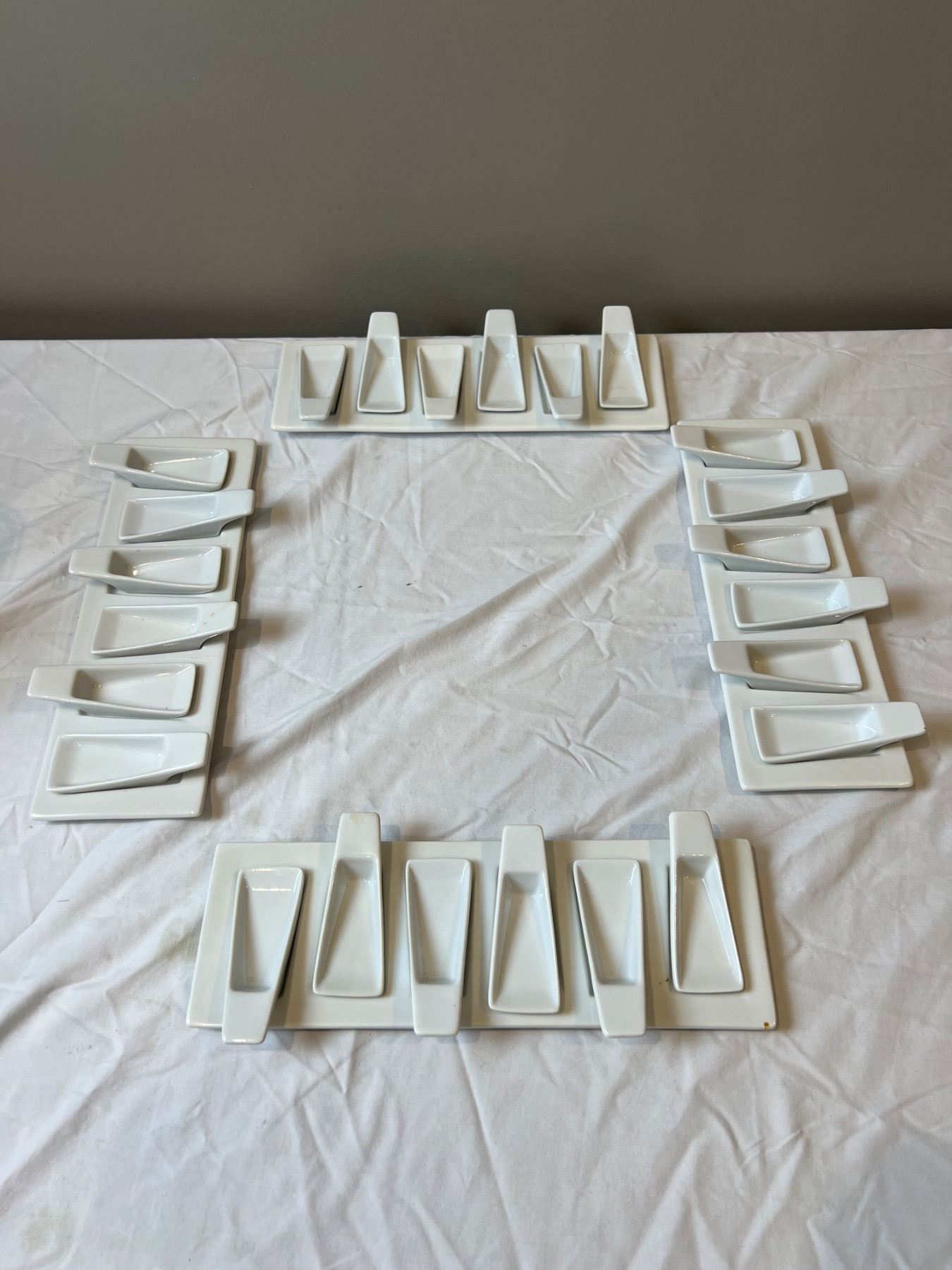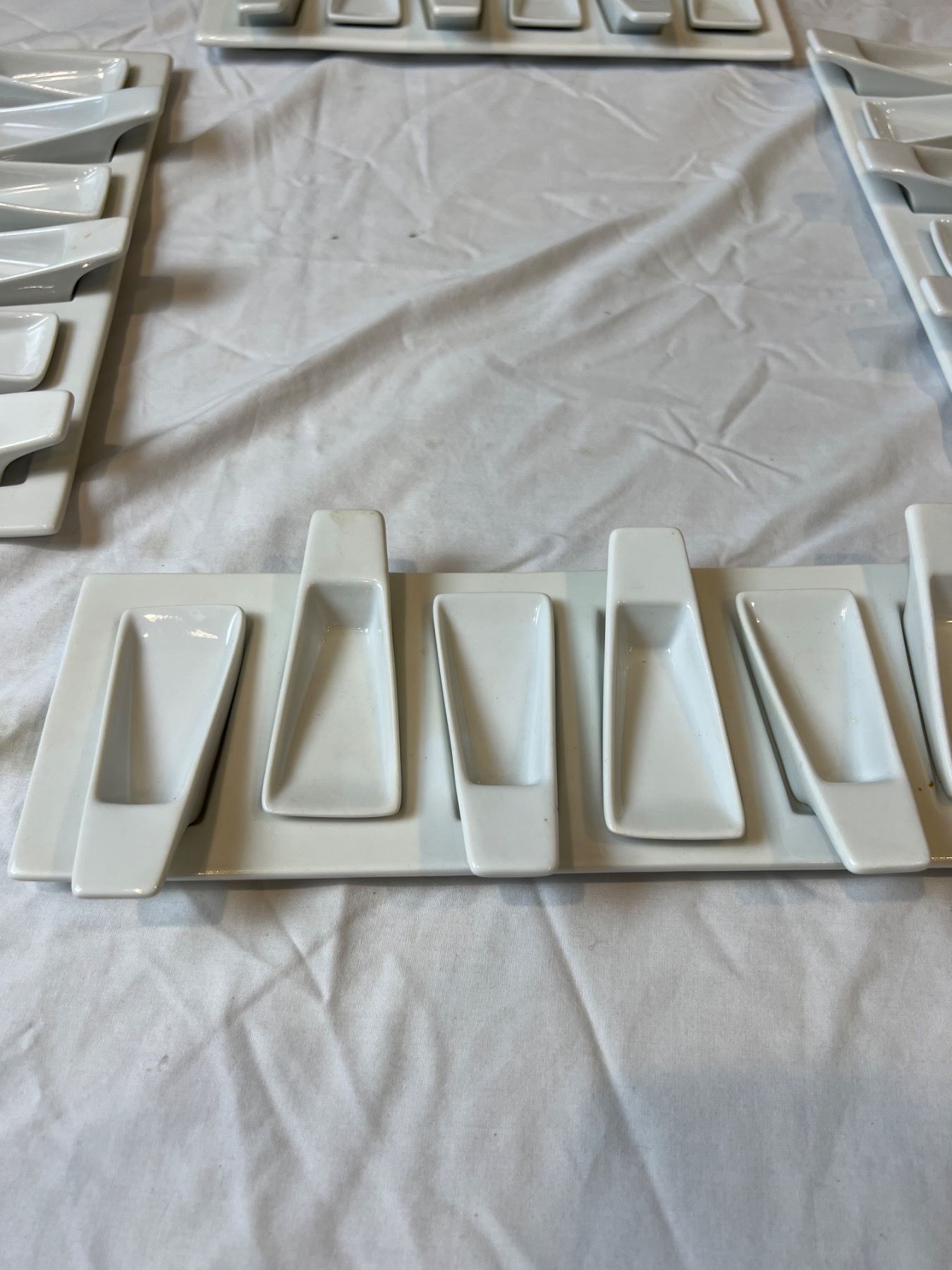 Includes 4 trays and 24 spoons. Some staining to spoons and trays.