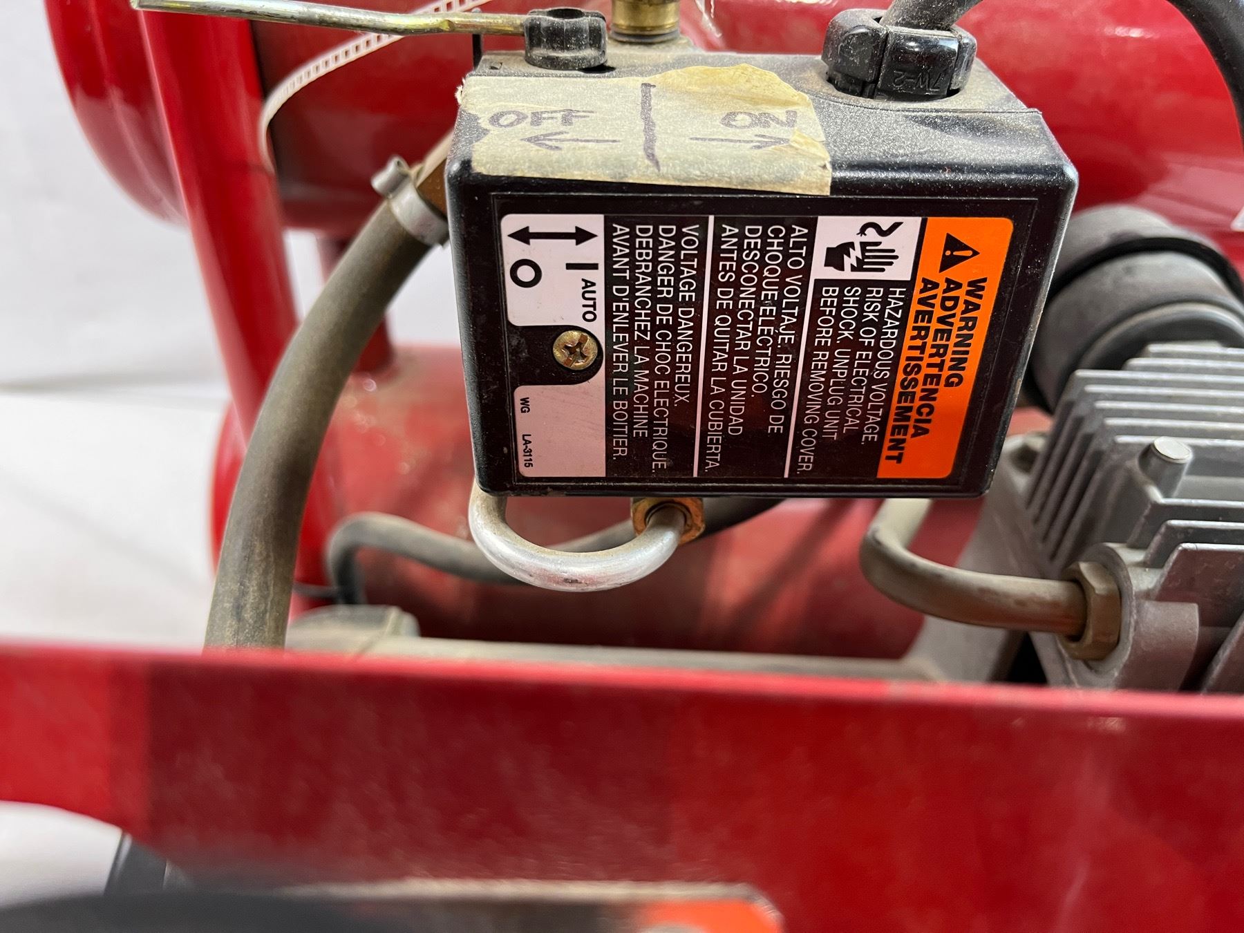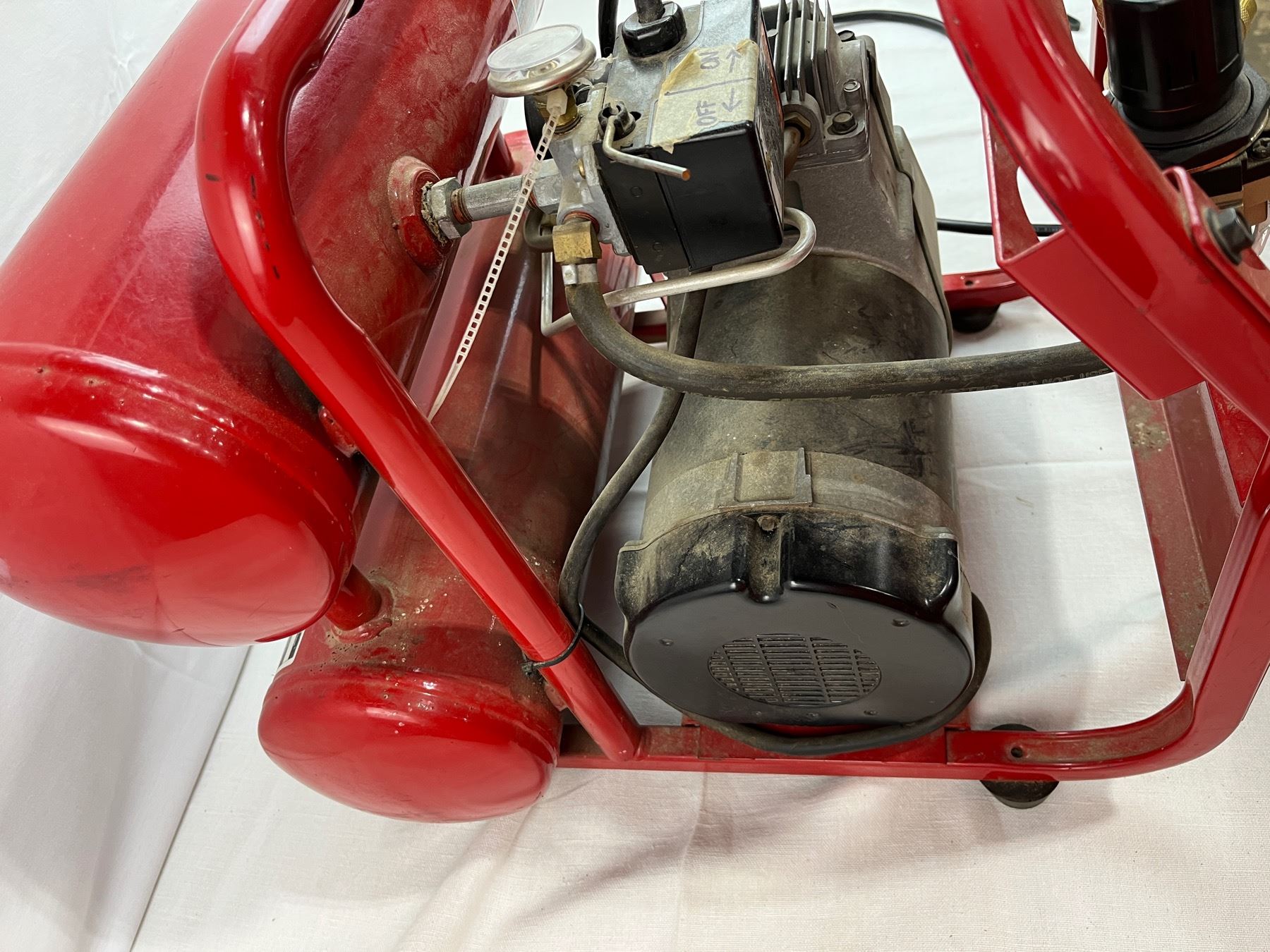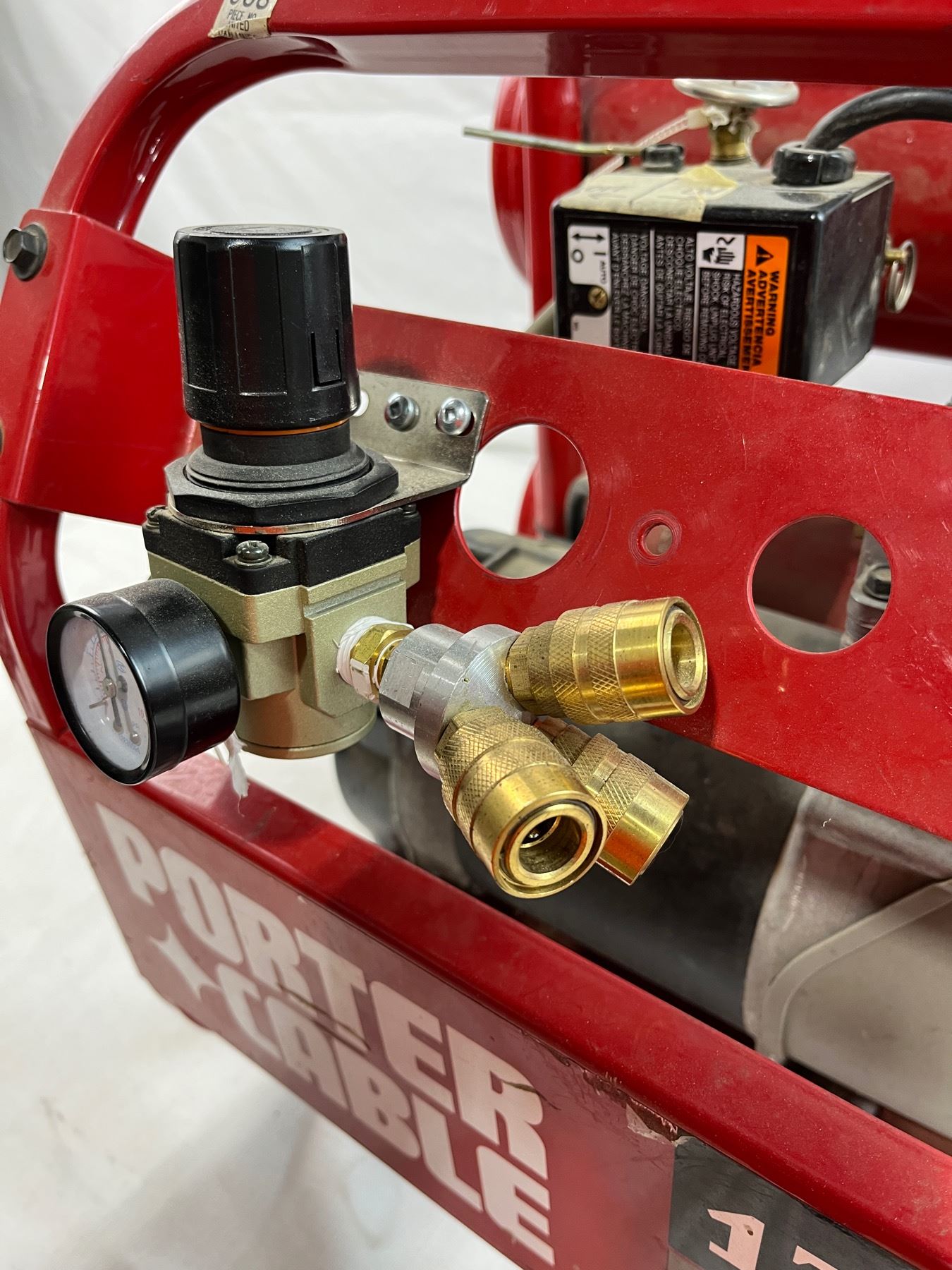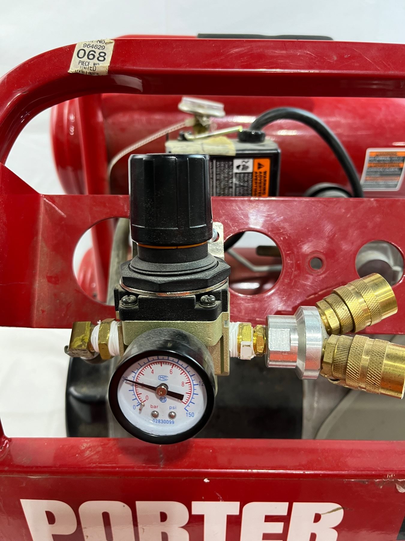 5.3 SCFM @90 PSI 3HP peak 1.6HP running. 4 Gallon Oil Free maintenance free pump.Running condition,some ware and scratches.