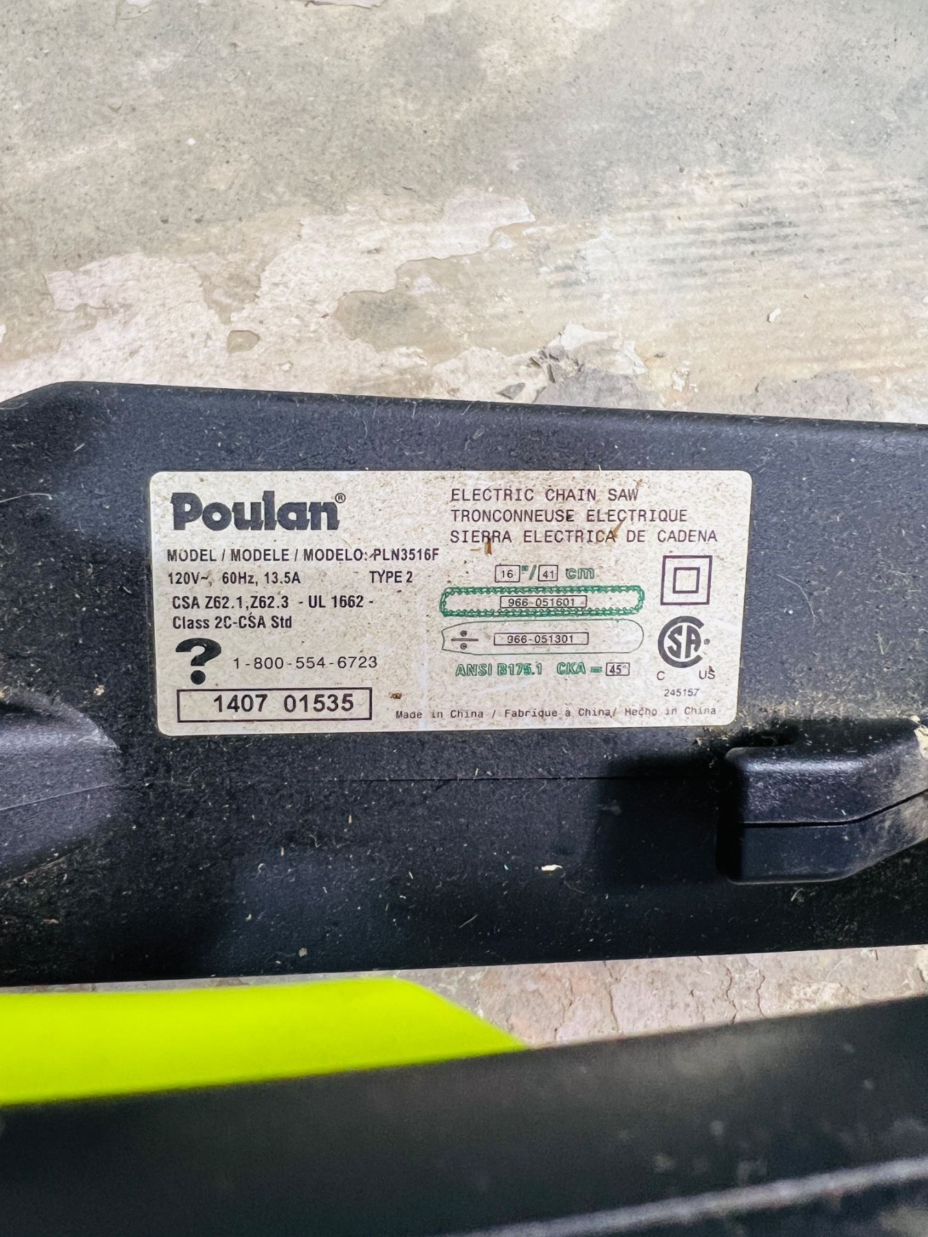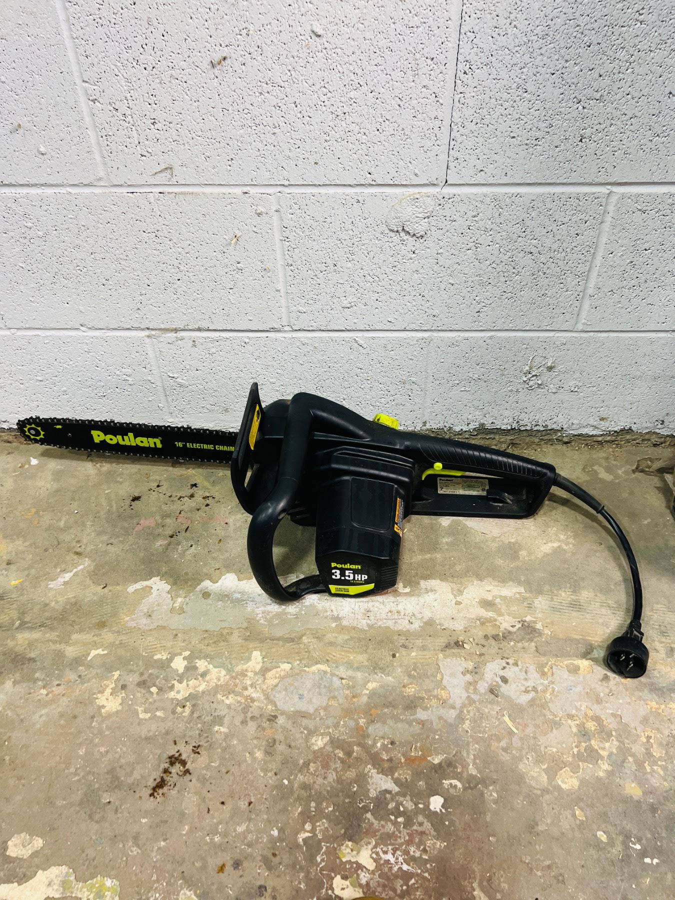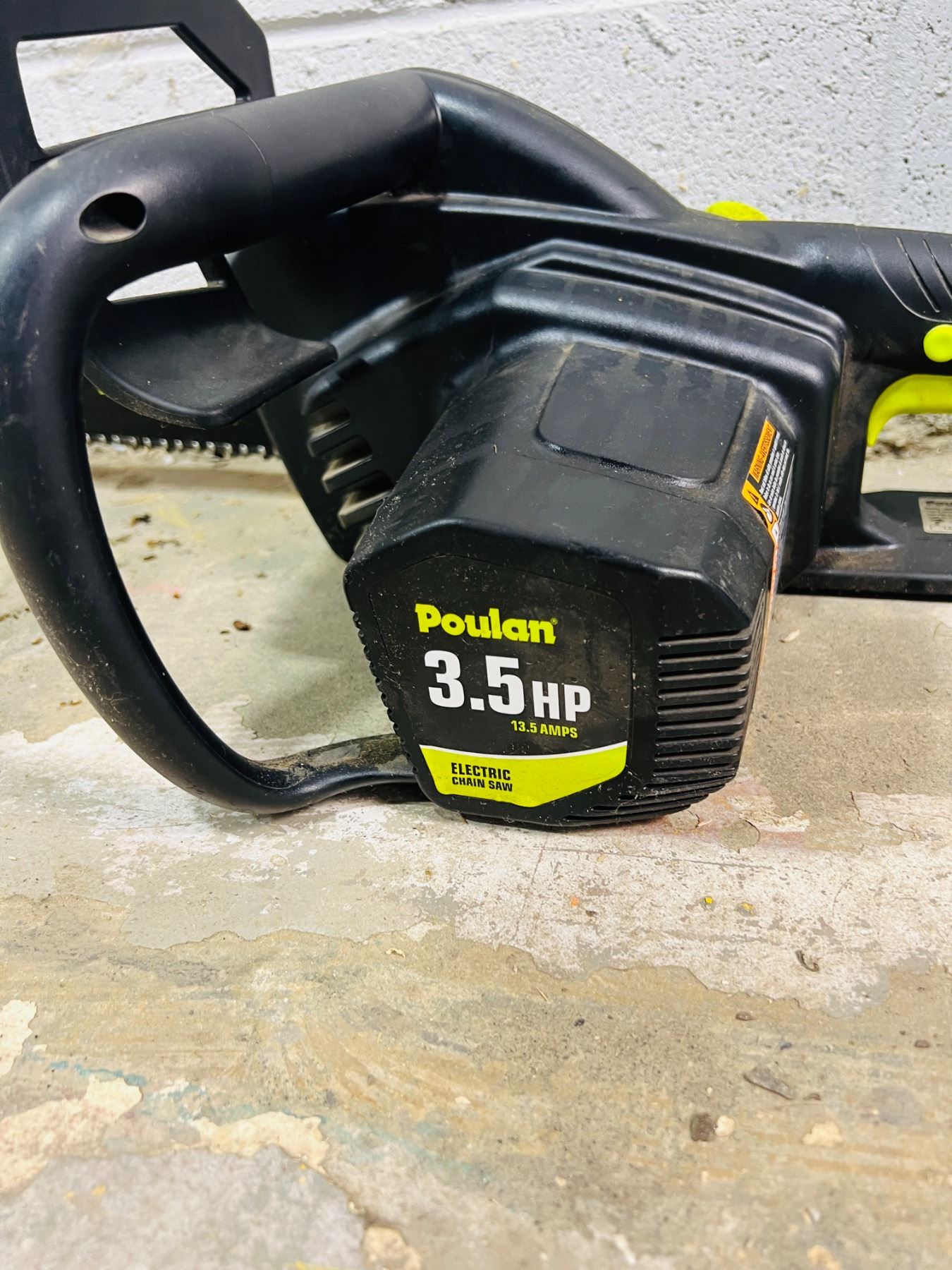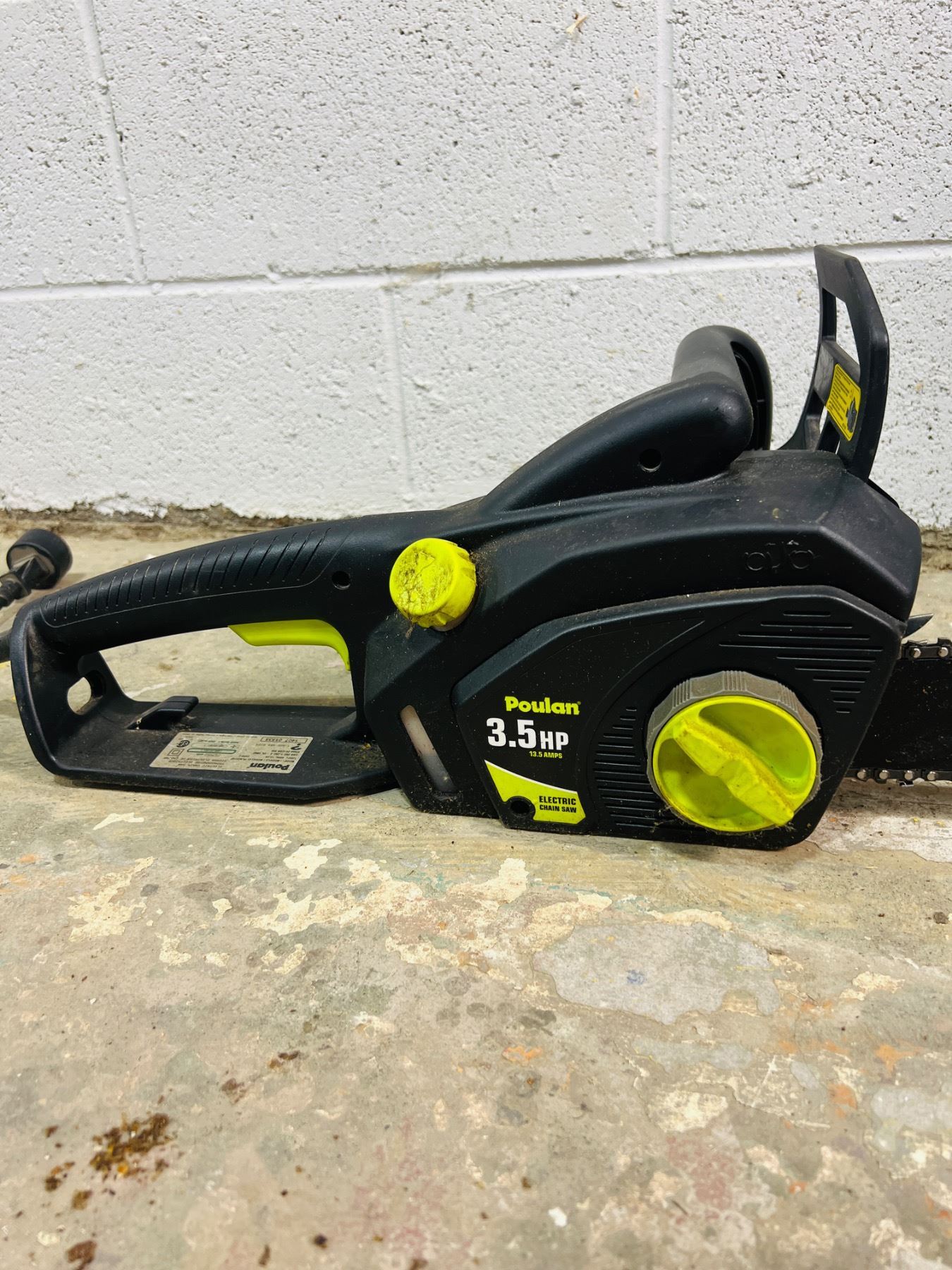 3.5hp, 13.5amps, Model No. PLN3516F, Turns on - needs chain oil