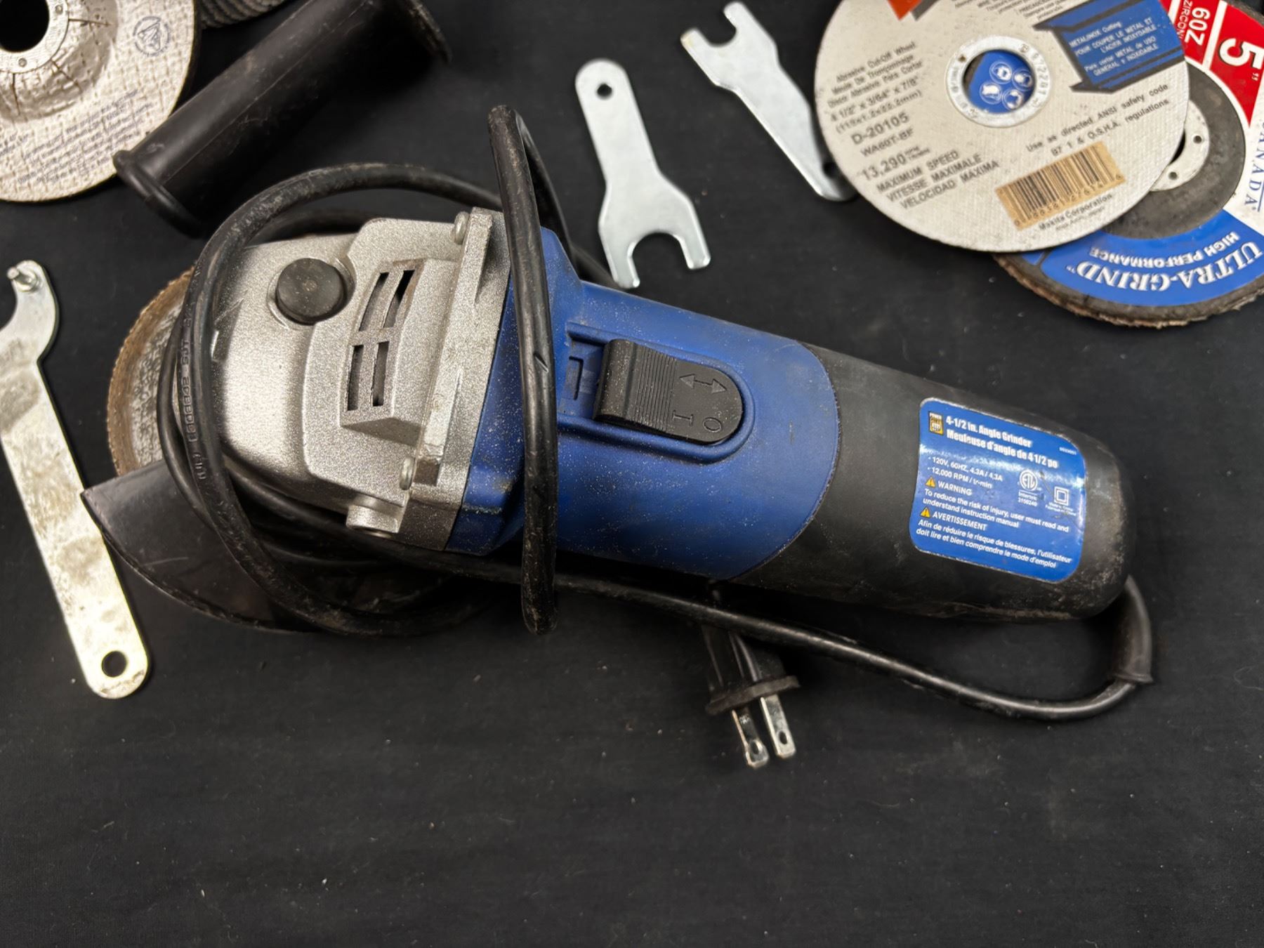 Includes, Power Fist 4-1/2" Angle Grinder No. 8533051 (works), Pro Point, Cubitr 125mm, and more