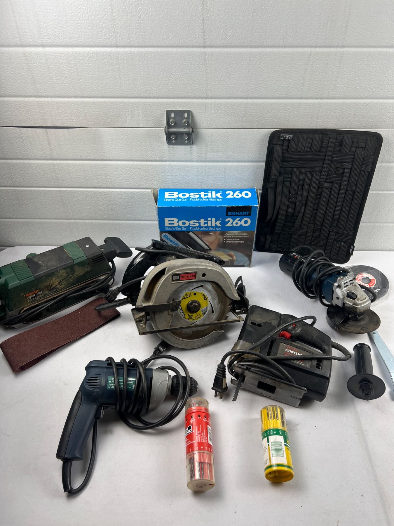 Includes Mastercraft Angle grinder, Craftsman sabre saw, Bostik 260 glue gun, and more, not tested