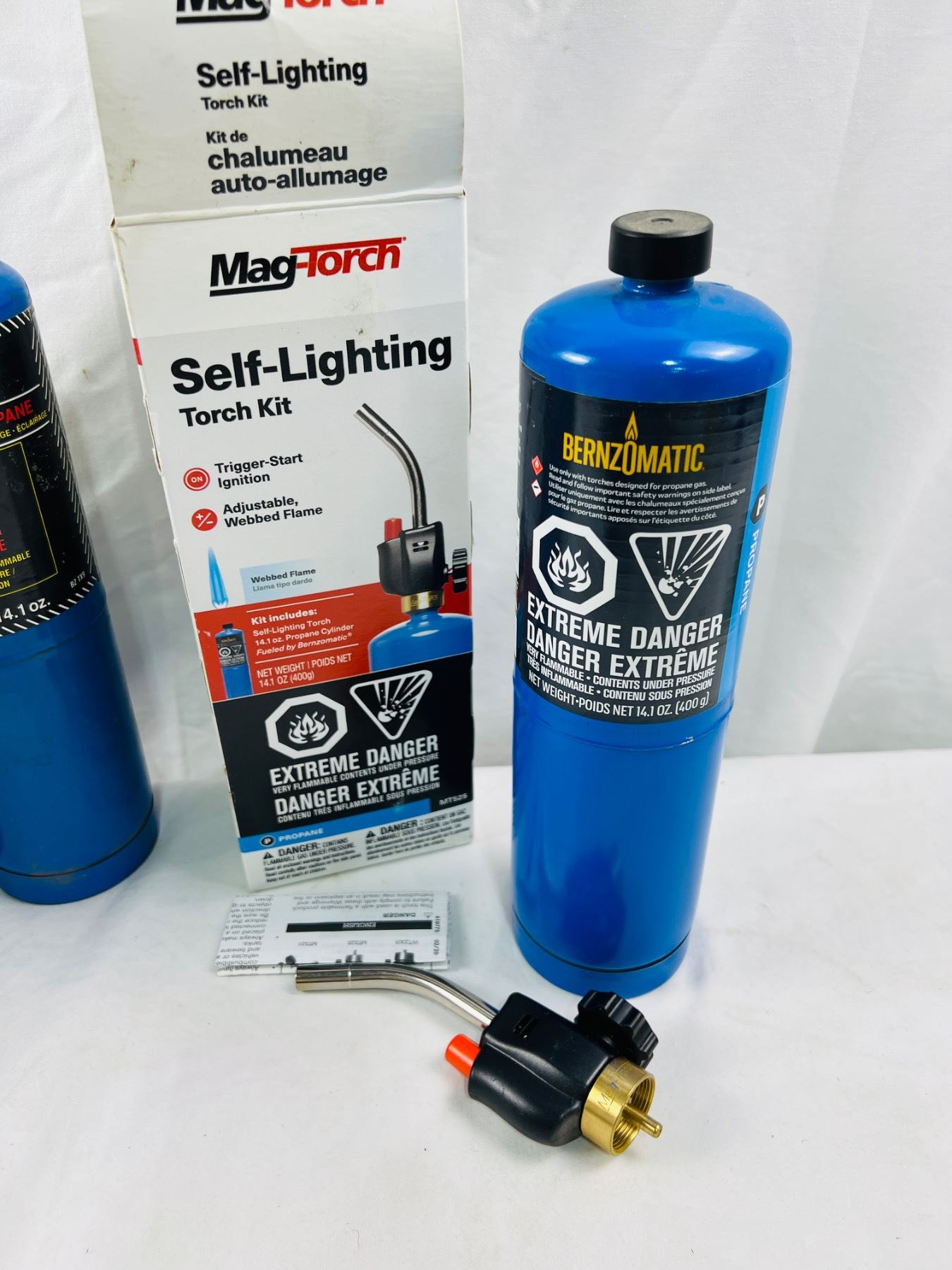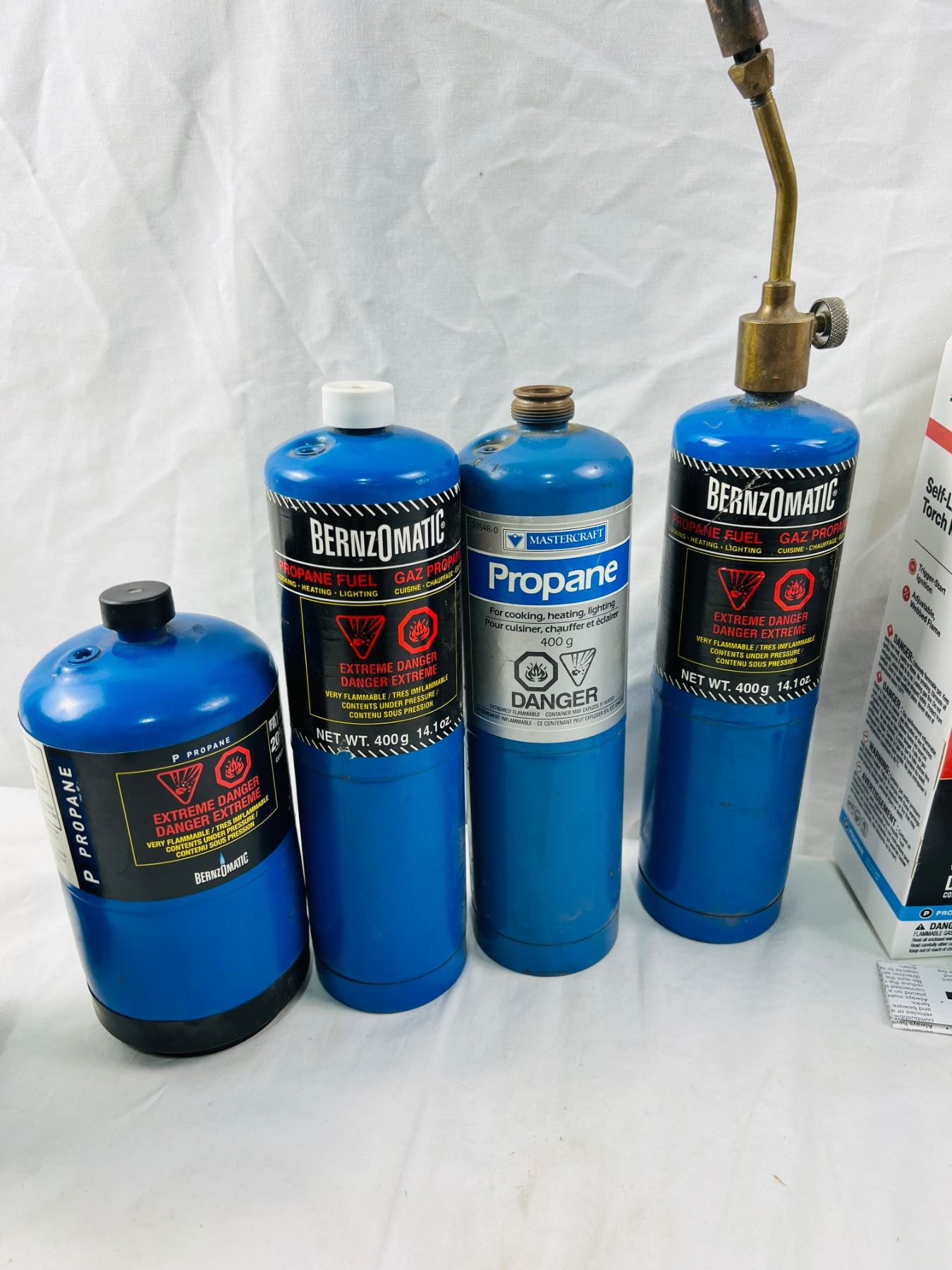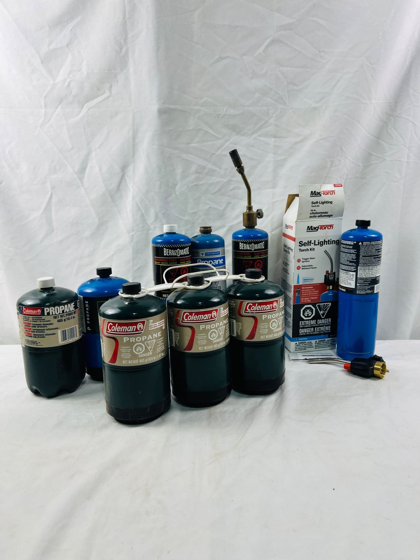Propane canisters are 1/2-full, Includes a Mag Torch Self-Light Torch Kit, Bernzomatic, Coleman Propane, and more