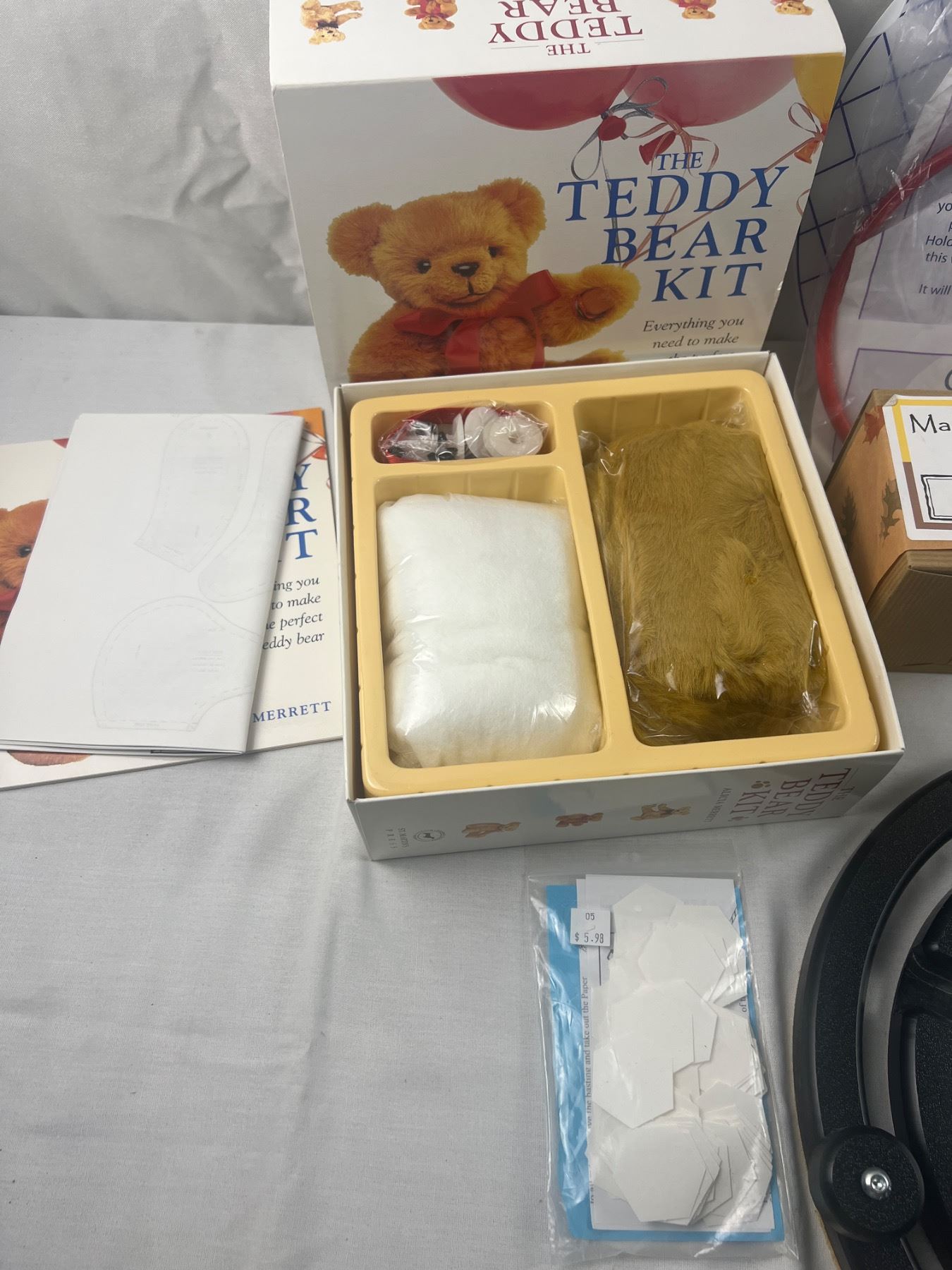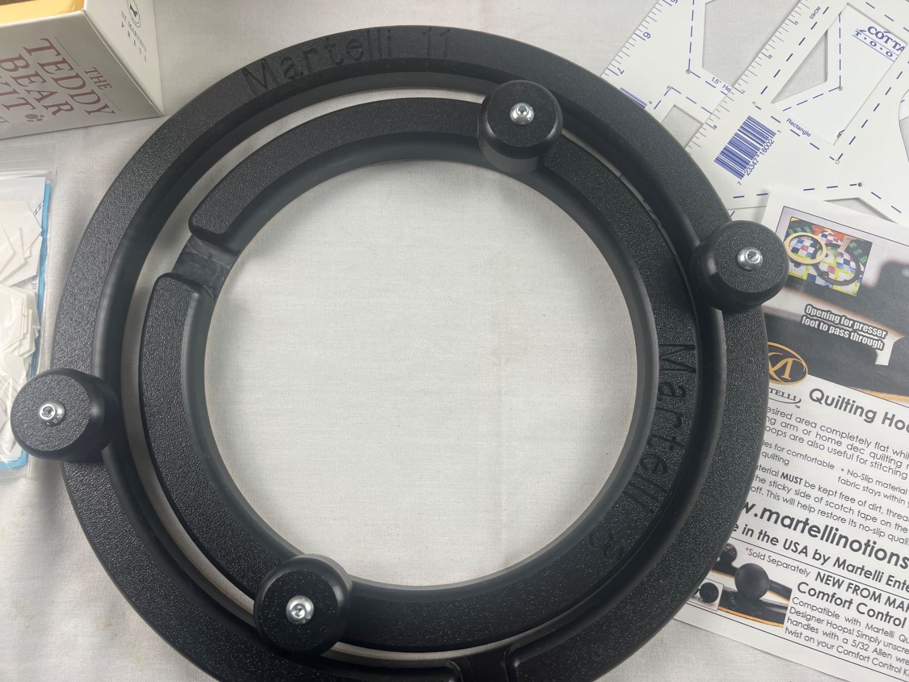 Includes a Martelli Quilting Hoop, Teddy Bear Kit, Quilt in a box, and more, open boxes