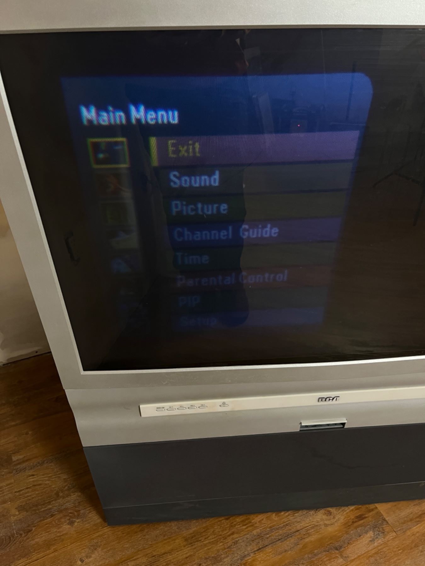 Turns On. Speaker Mesh on Front Has Stains. Includes 2 Remotes. Model #D40W20. Total Measurements 38" Wide x 23" Deep x 44" High