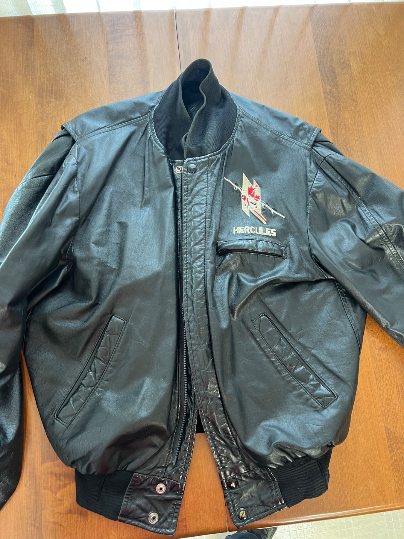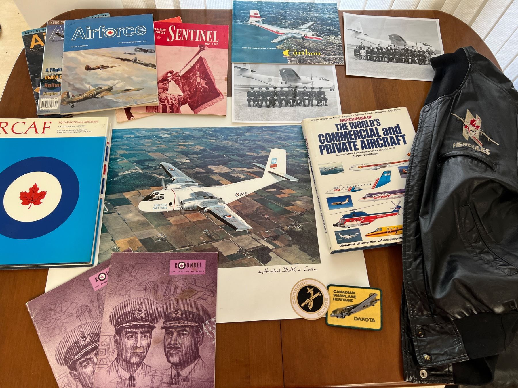 Includes RCAF books, photos and "Hercules" men's leather bomber style jacket