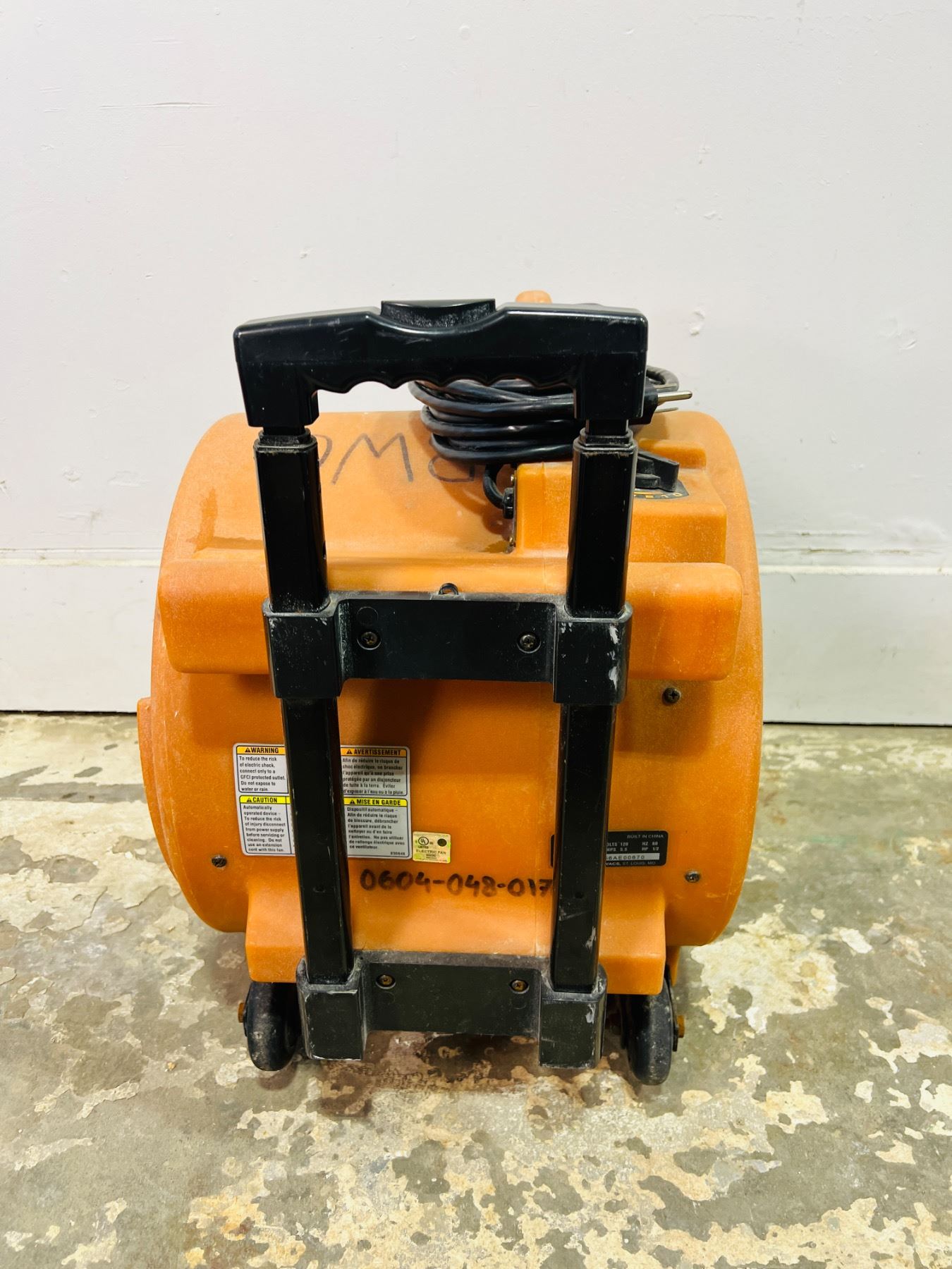 Turns on and works, Includes three speed options , Model No. Am25500, has some sharpie writings