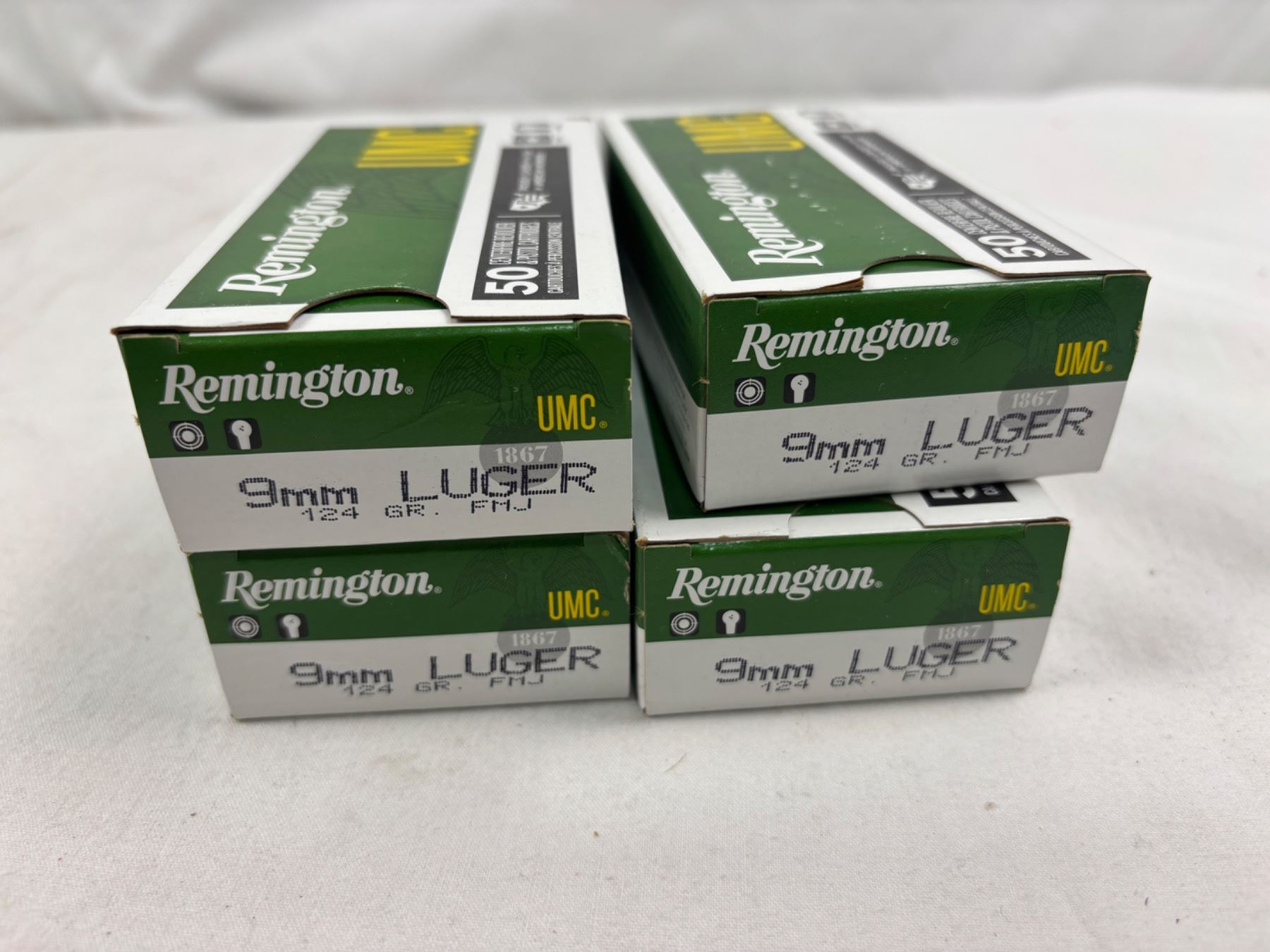 9mm Luger 124 Gr. FMJ, Includes four full boxes of 50 cartridges