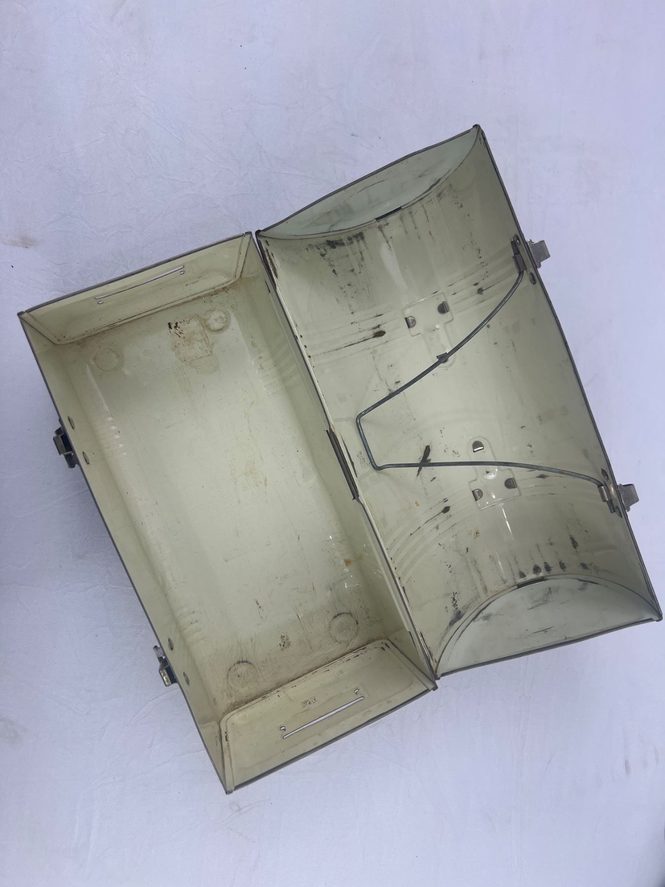 Some wear and tear, the lunch box is 10"L x 5"W x 8"H